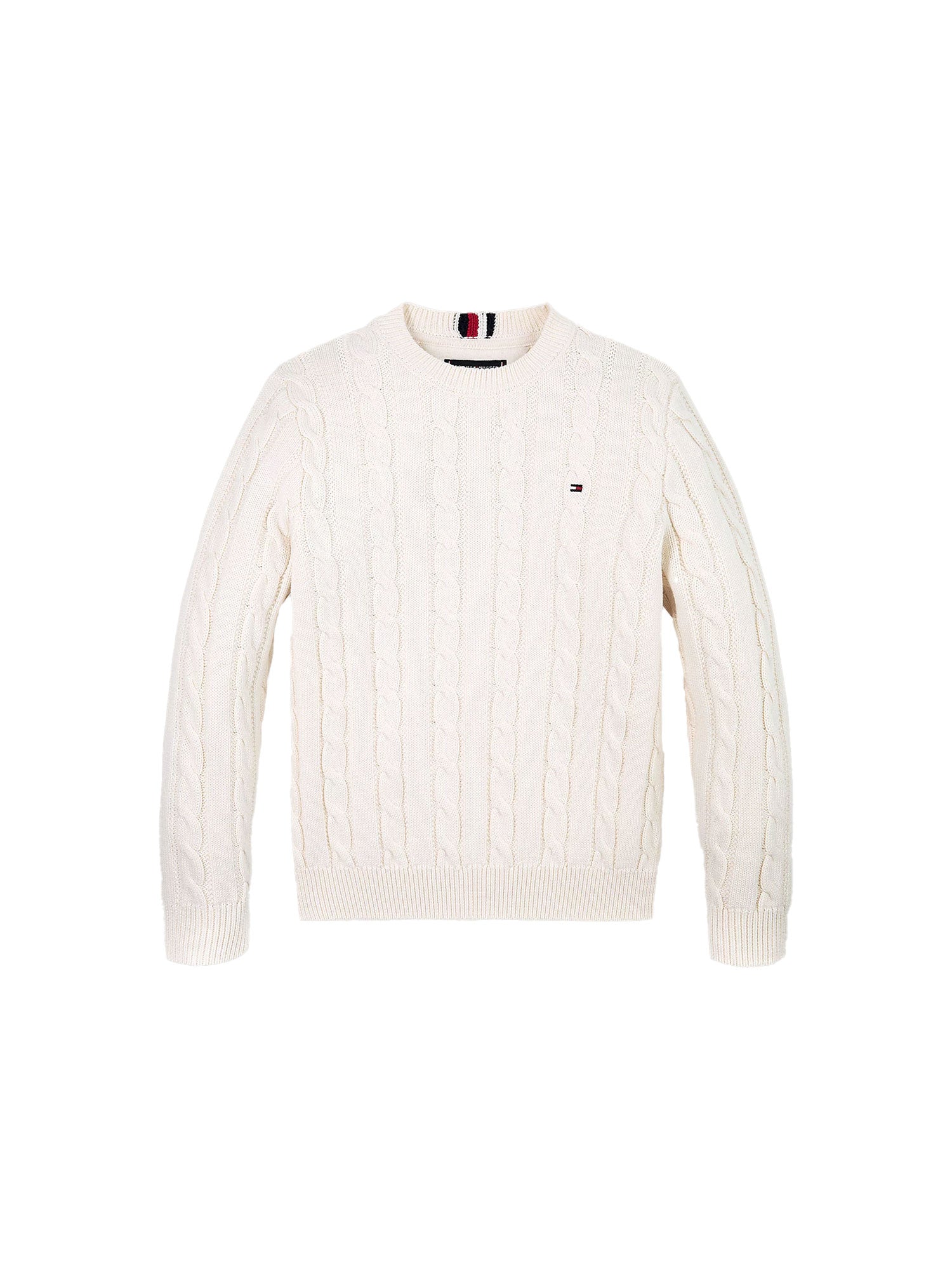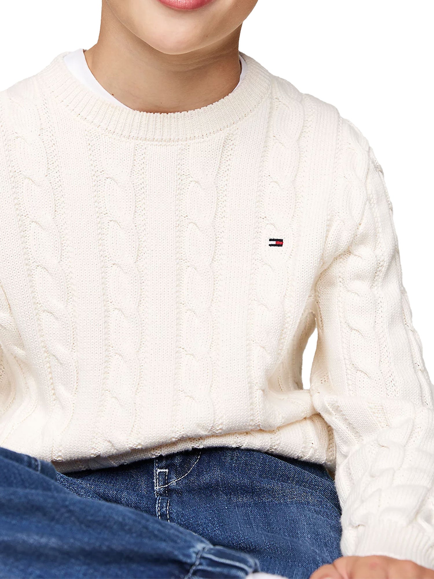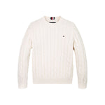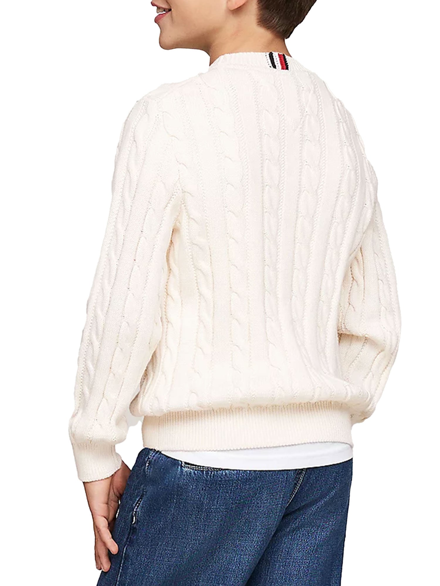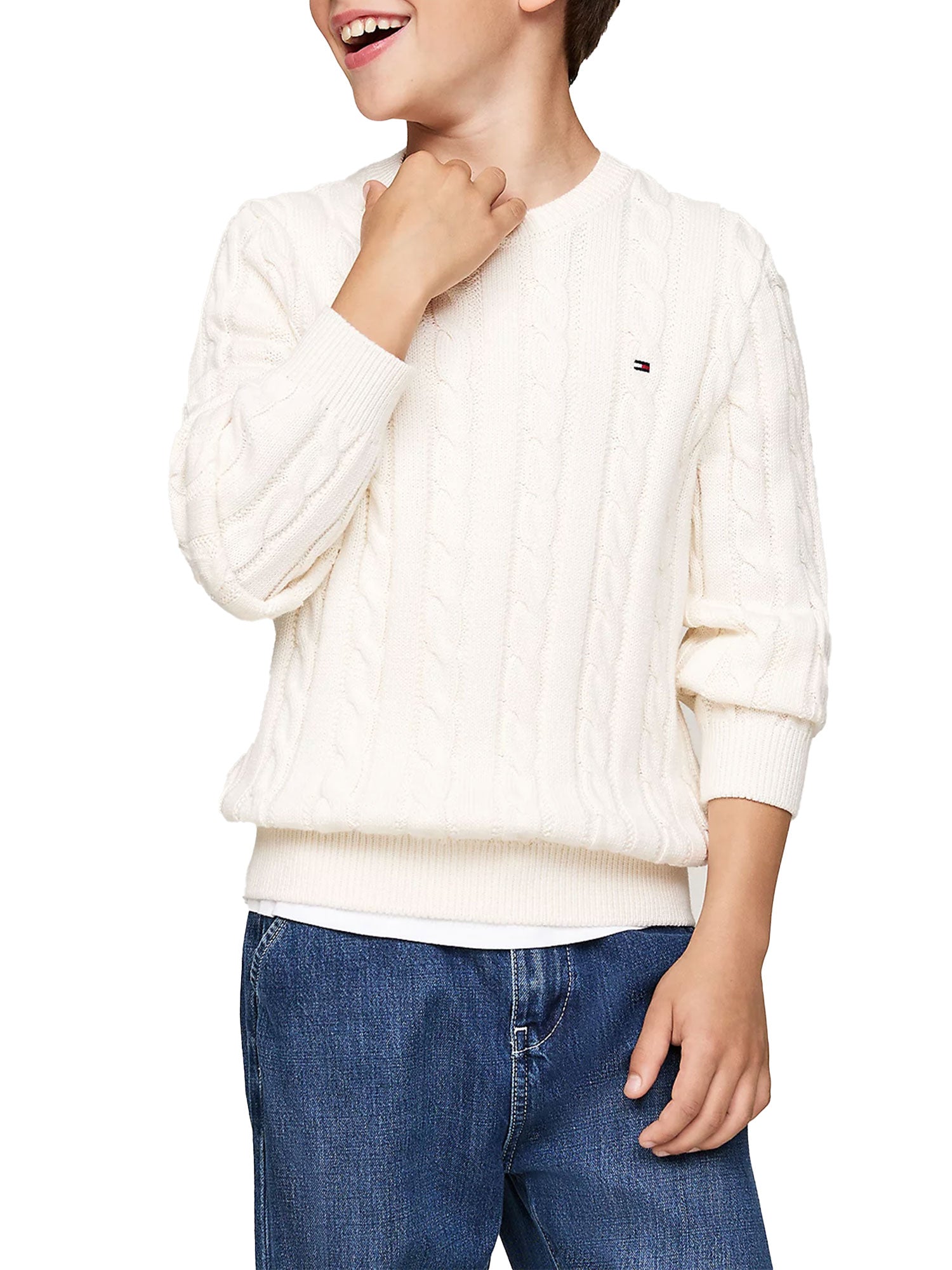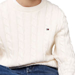 Girocollo da bambino Tommy Hilfigher con lavorazione a maglia intrecciata, che dona un tocco classico al pullover in puro cotone, catturando subito l'attenzione.