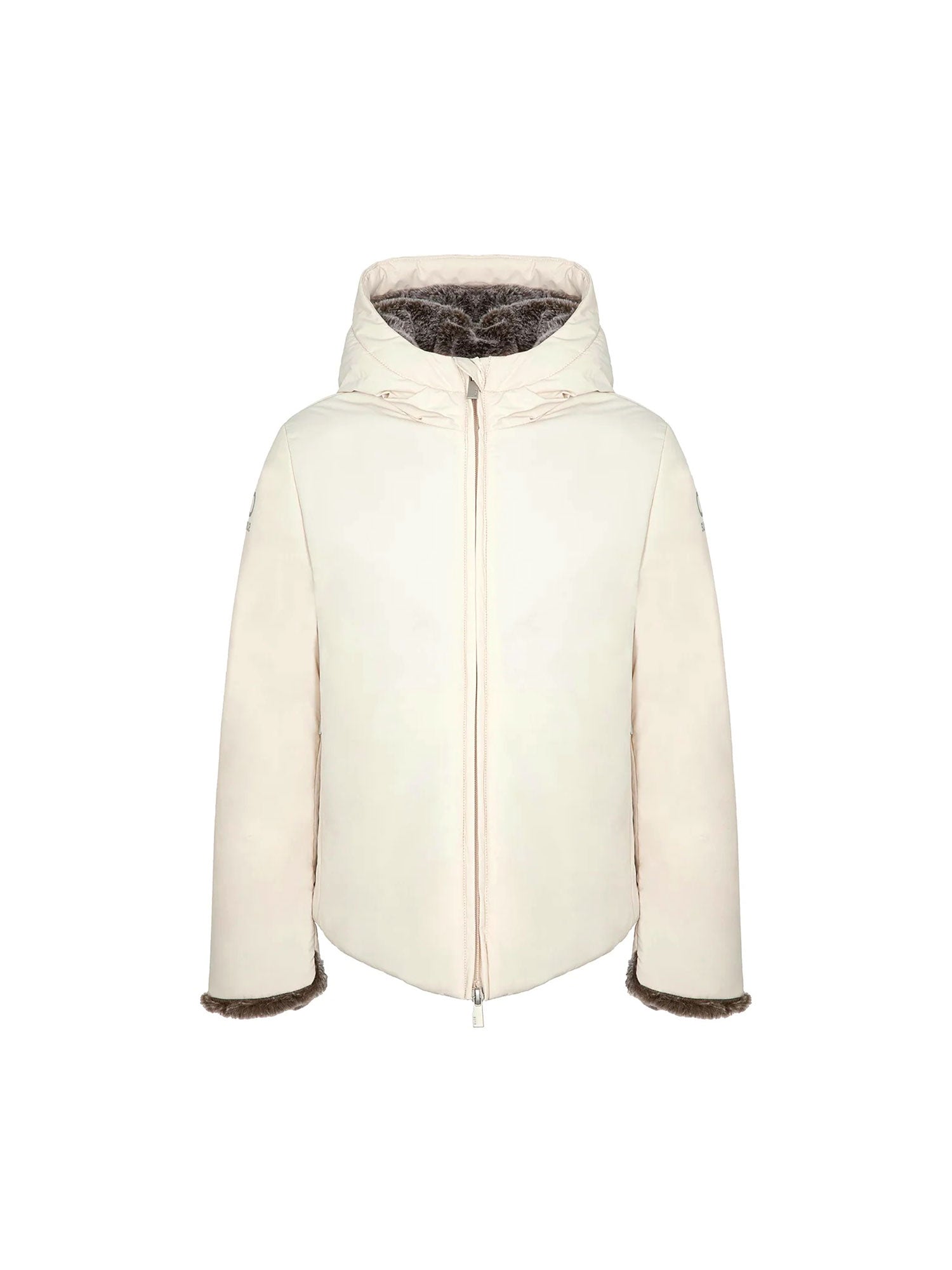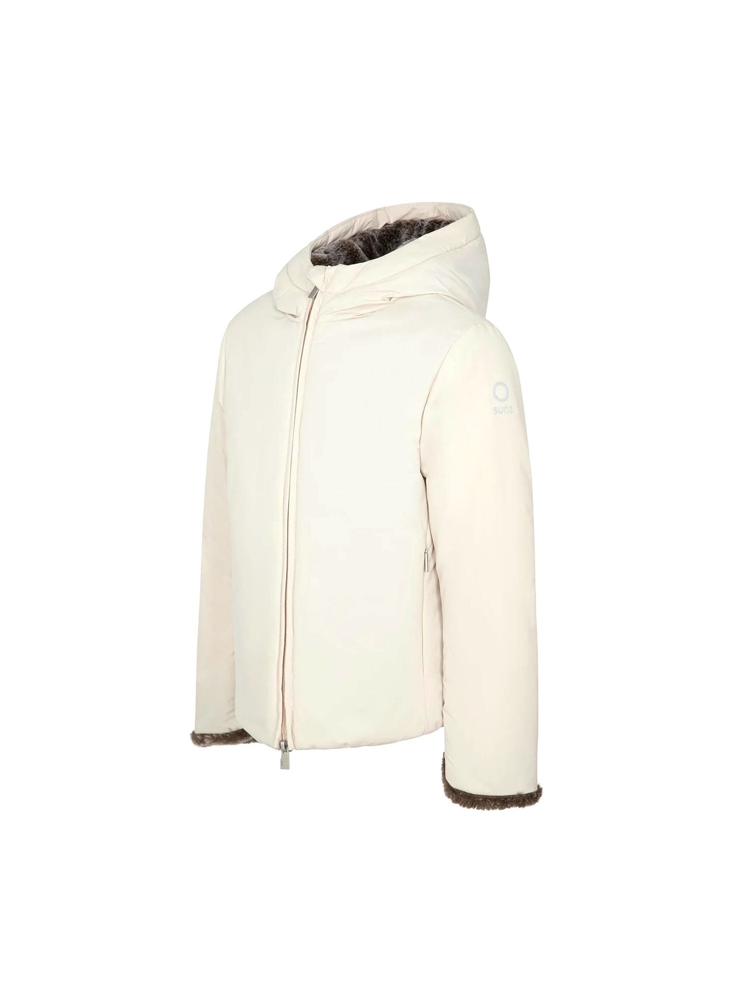 Giubbotto Suns neonata con cappuccio K-Roberta fur interno ecopelliccia sabbia