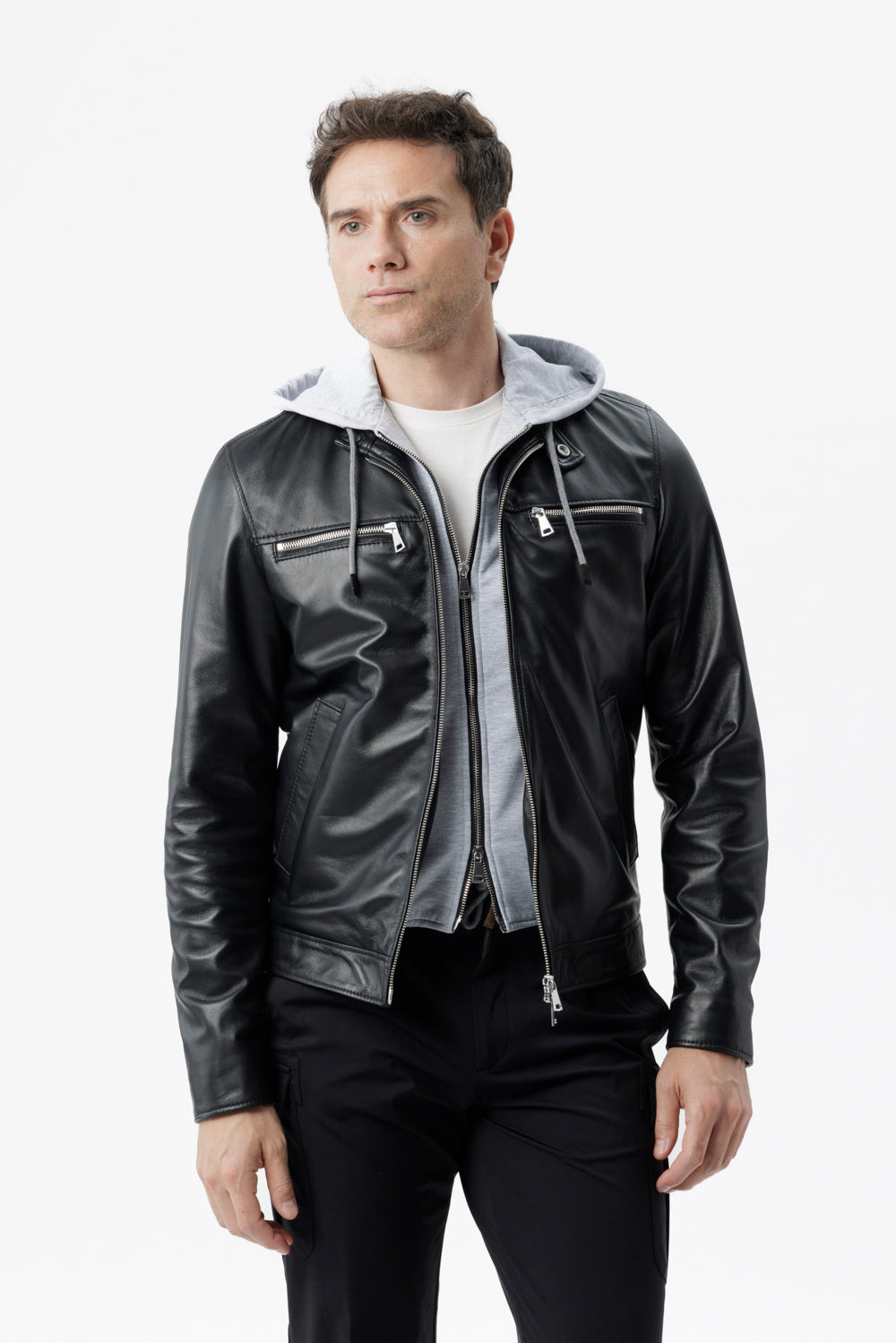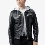 Giacca Biker in pelle con cappuccio Integrato nero