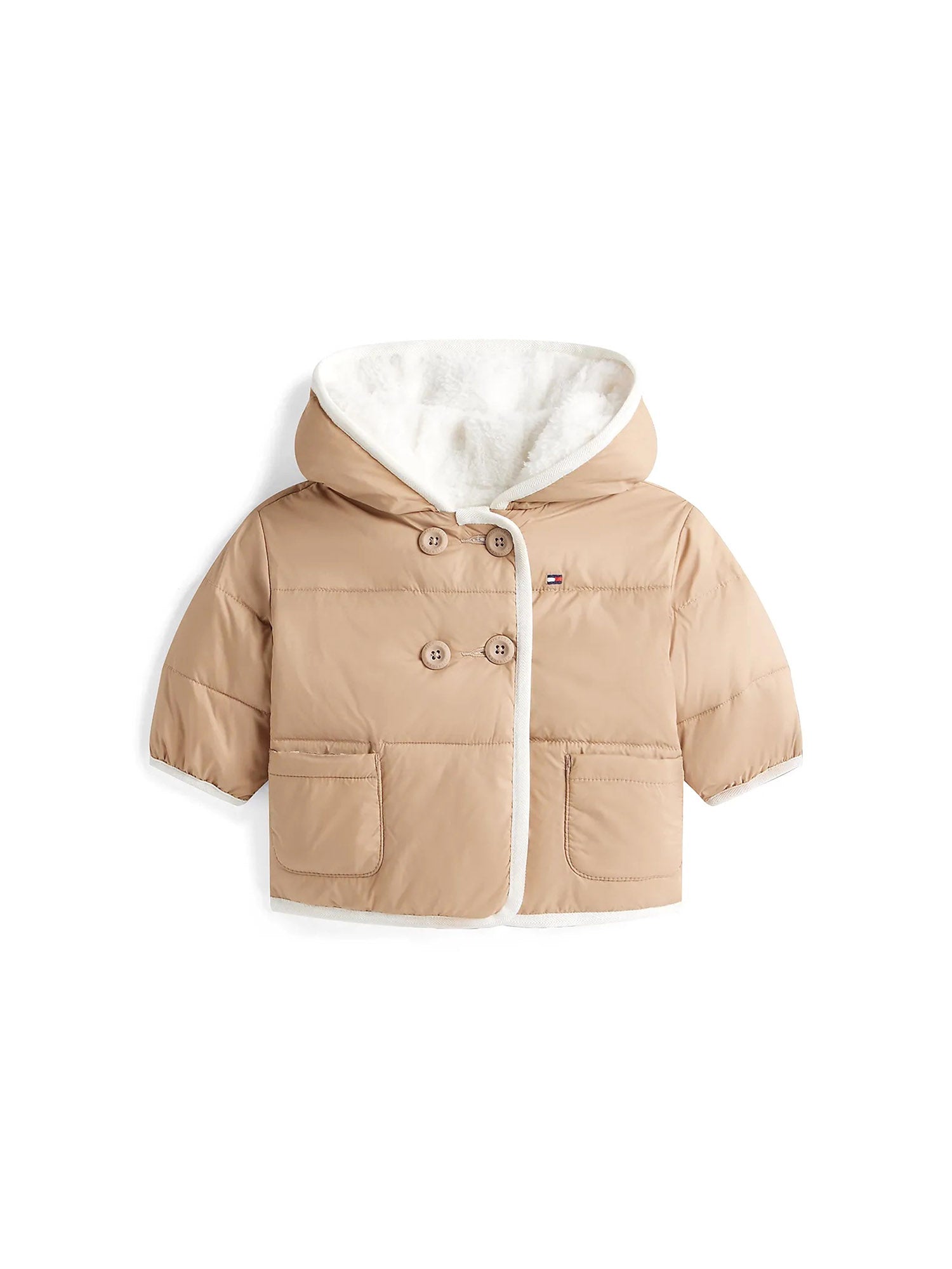 Giubbotto con cappuccio e bottoni Tommy Hilfiger neonato reversibile teddy latte