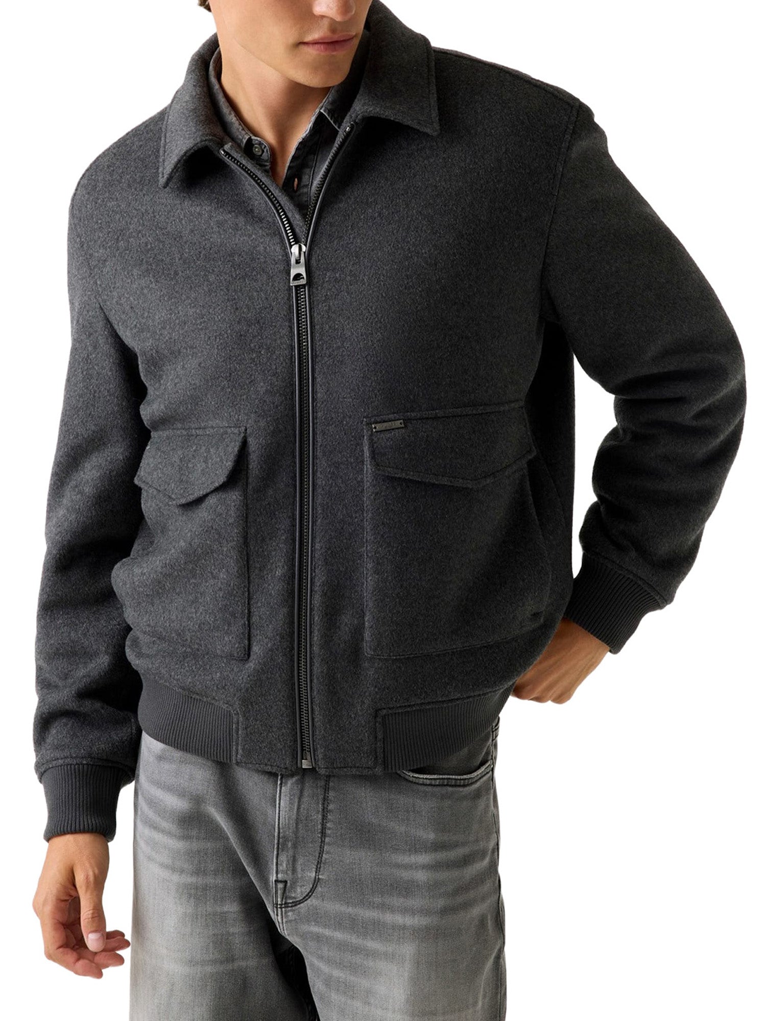 Giubbino con zip Guess uomo warm wooled grigio scuro