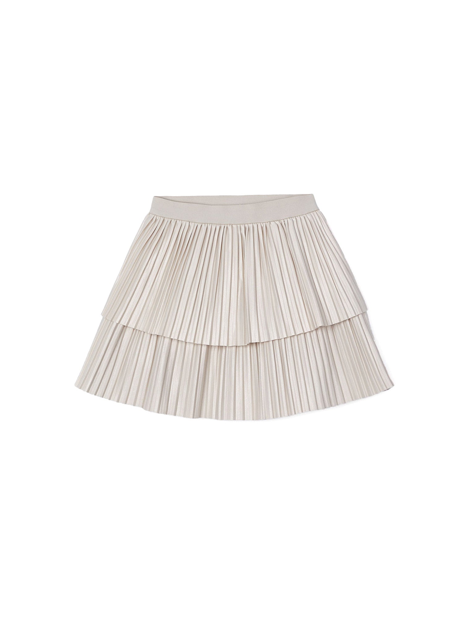 Gonna plissettata in ecopelle Mayoral offre un look grintoso e di tendenza, perfetto per le bambine che amano distinguersi con stile. Il design a doppio strato plissettato aggiunge volume e movimento, donando un tocco sofisticato e moderno.