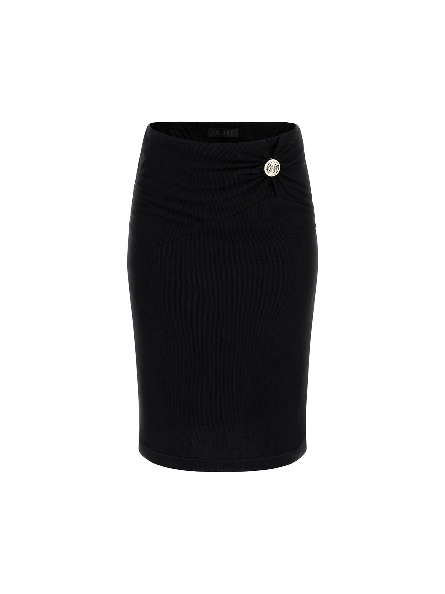 Gonna midi a costine Guess donna. Modello in misto modal con bottone decorativo e pince sul girovita.