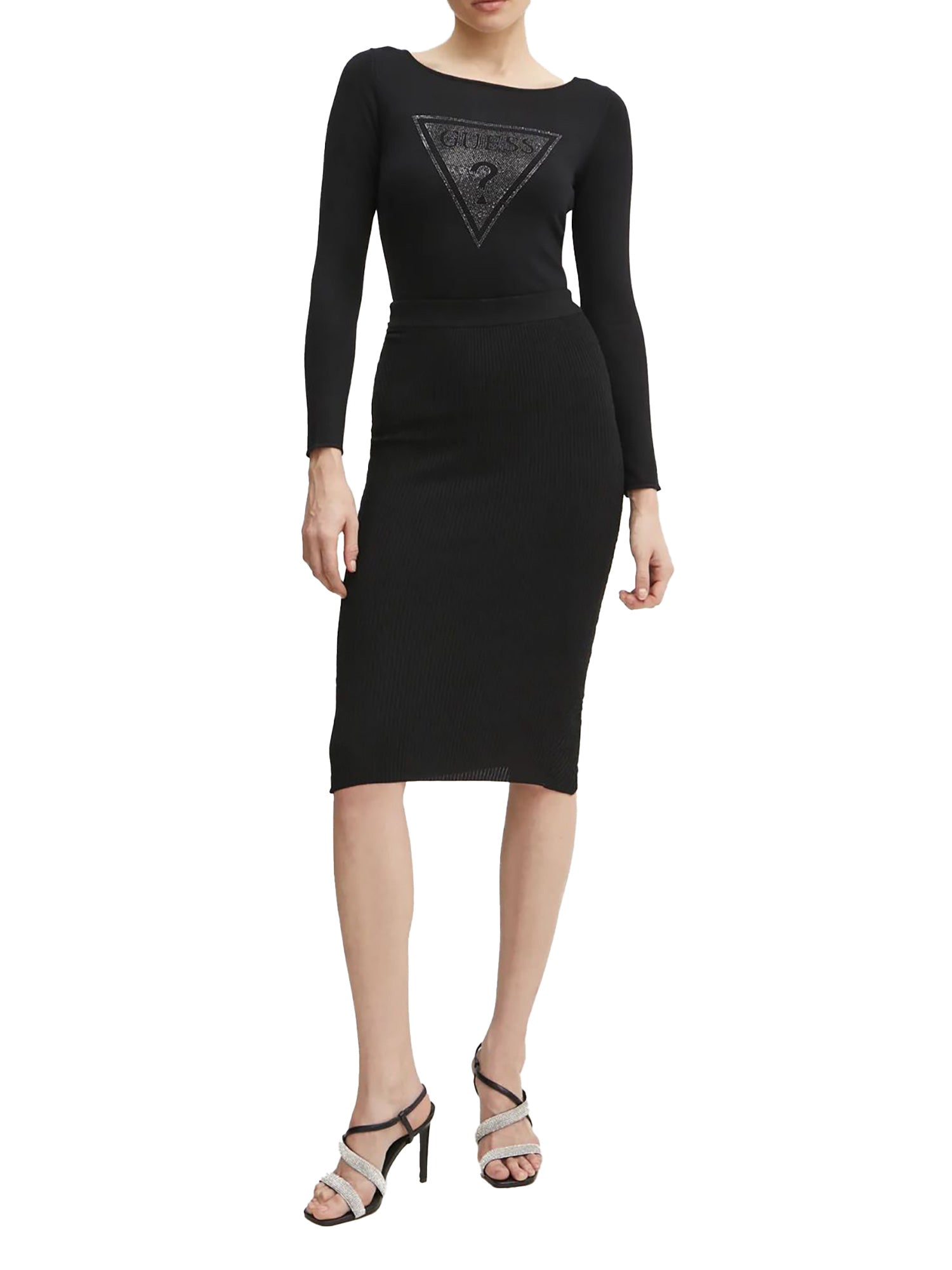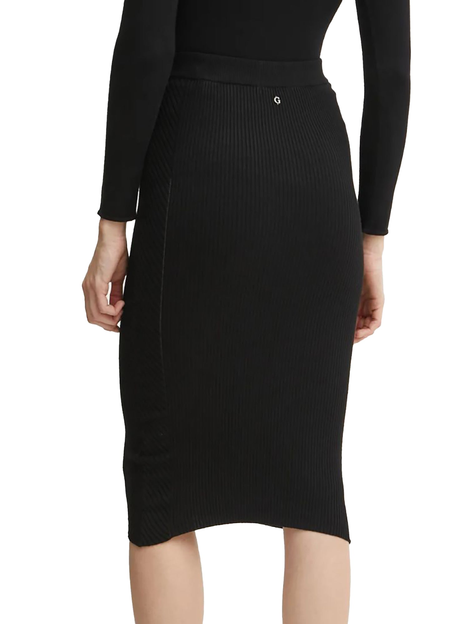 Gonna midi a costine Guess gonna. Realizzata in maglia elastica a tinta unita.
