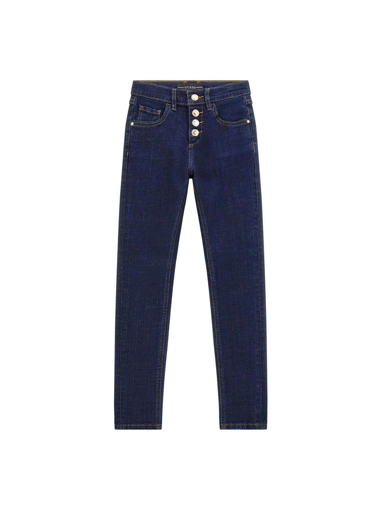 Jeans Guess, modello a 5 tasche , caratterizzato da elegante dettaglio a 4 bottoni color oro, vestibilità slim , pensato per occasioni in cui si vuol essere comodi ma chic.