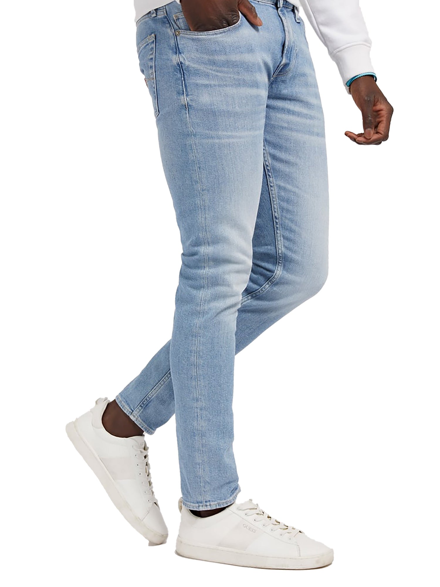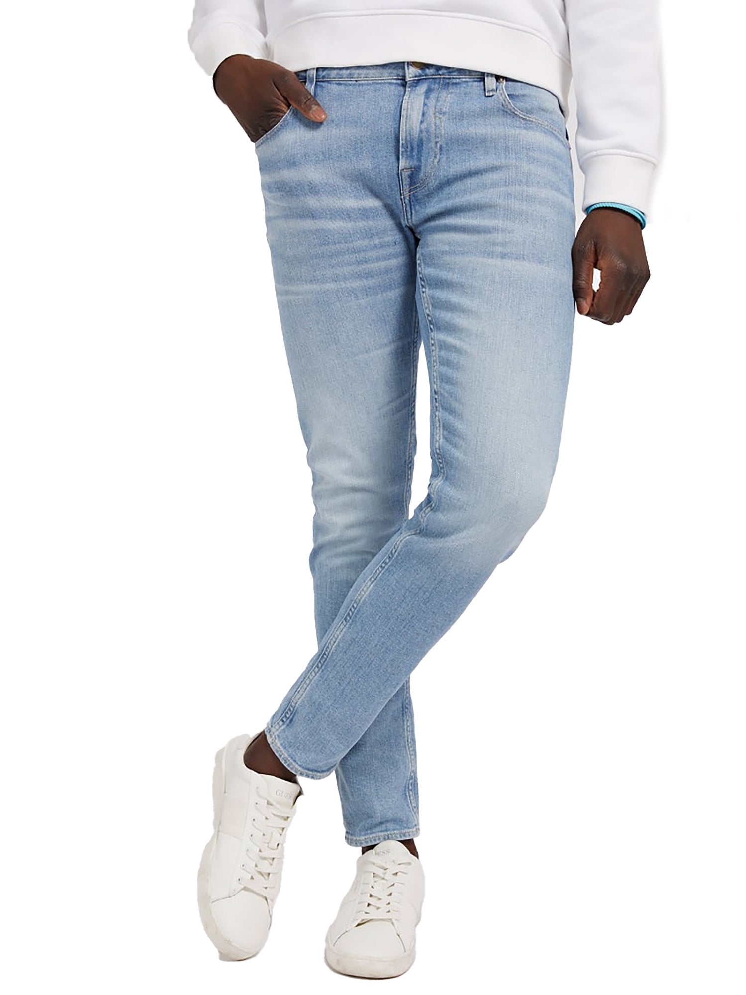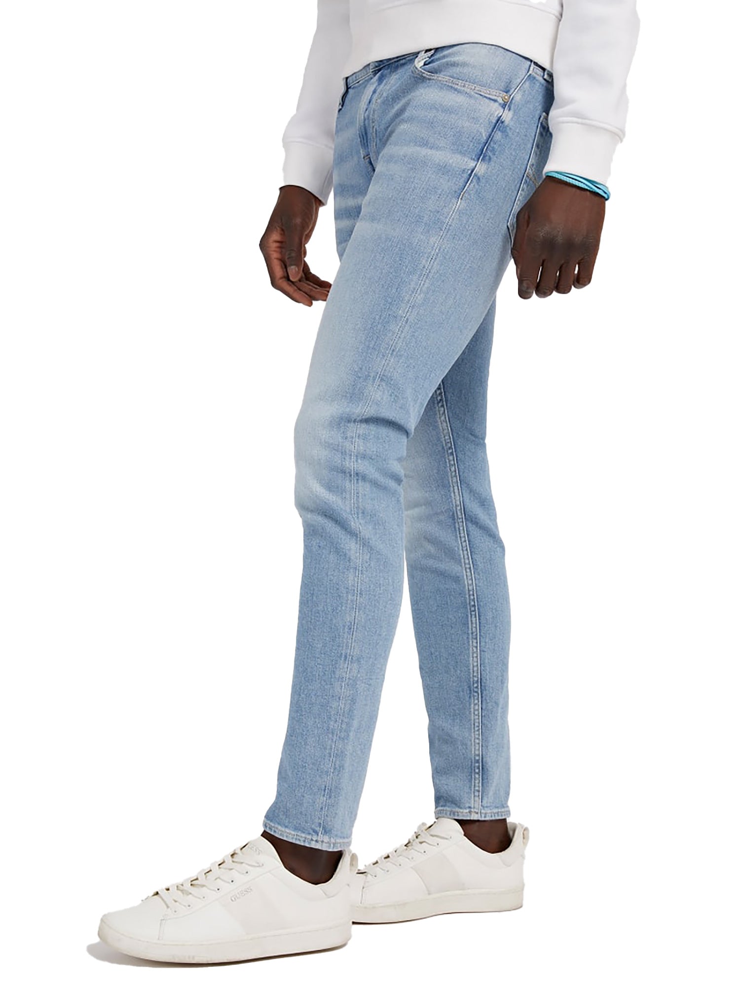 Jeans Guess Uomo, modello Chris. Realizzati in misto cotone, hanno una vestibilità skinny e e un tessuto denim lavaggio medio.