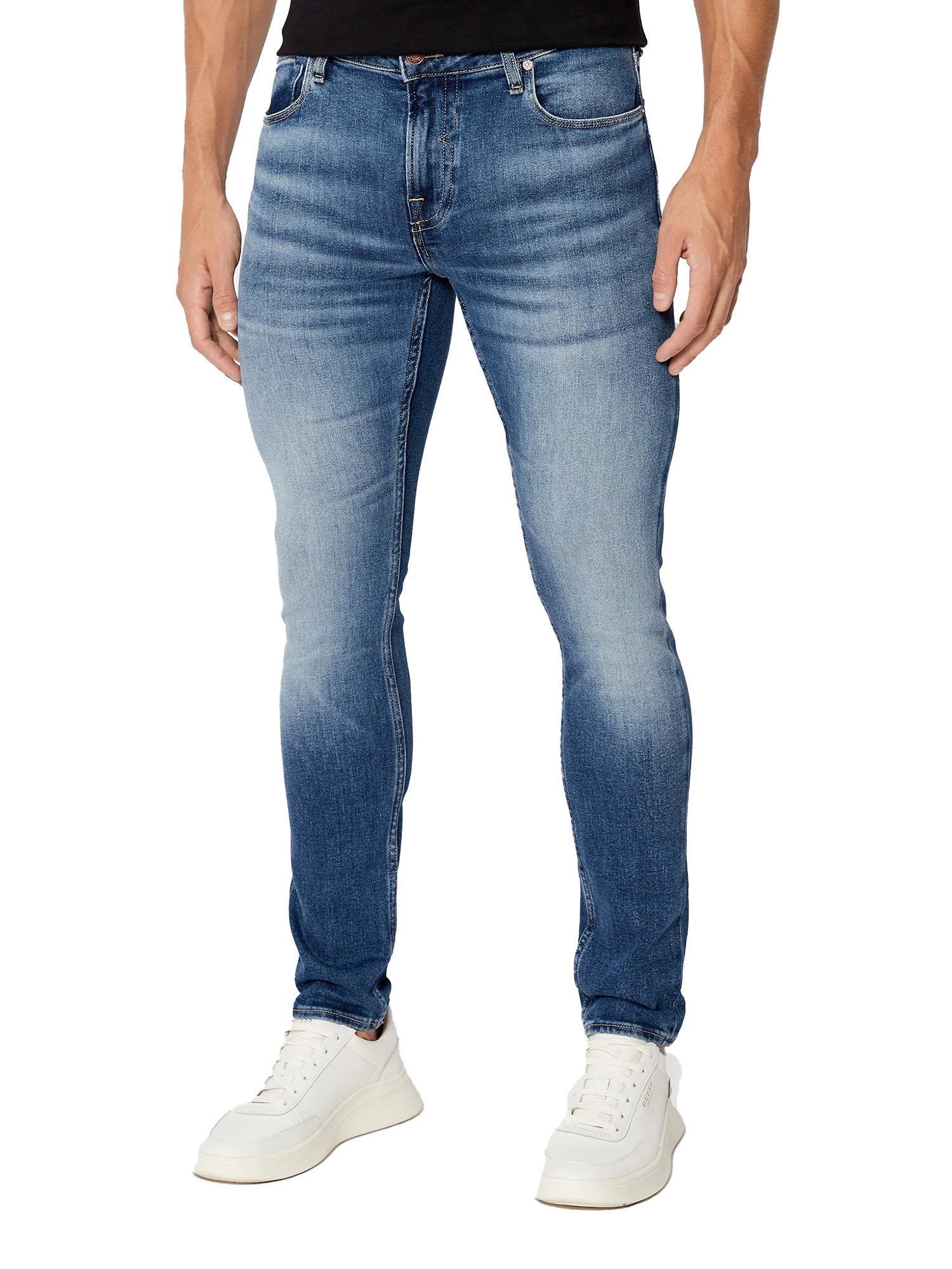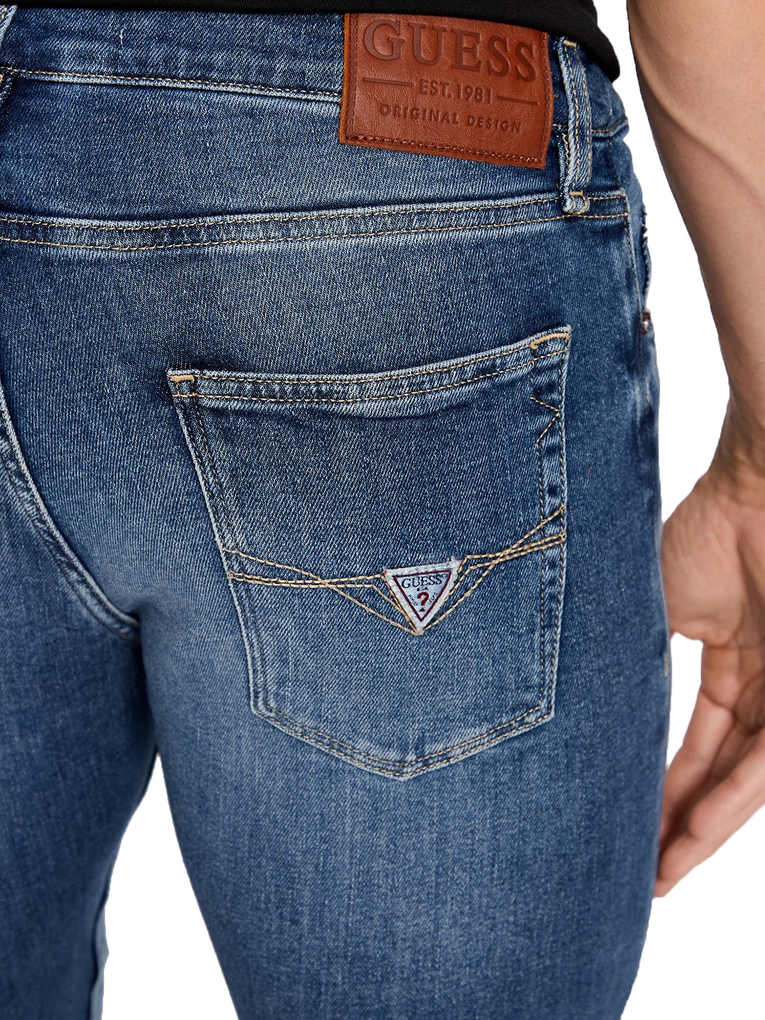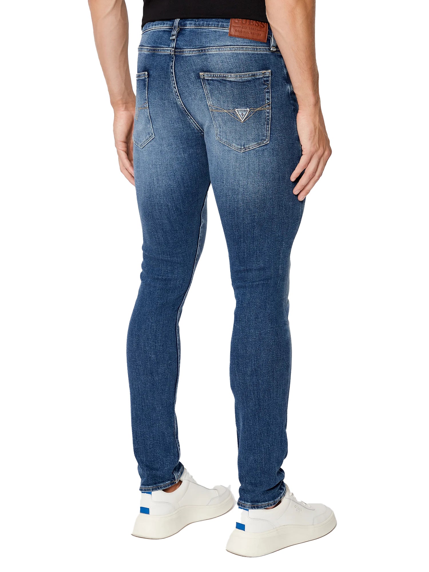 Jeans Guess Uomo, modello Chris. Realizzati in misto cotone, hanno una vestibilità skinny e e un tessuto denim lavaggio medio.