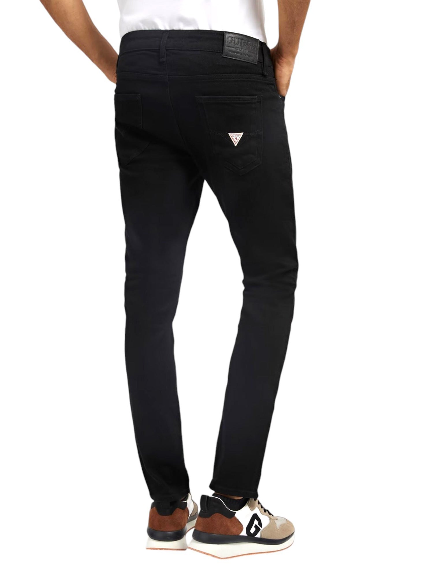 Jeans Guess Uomo, modello Miami. Pantaloni in misto cotone con vestibilità skinny e tessuto in denim lavaggio medio.