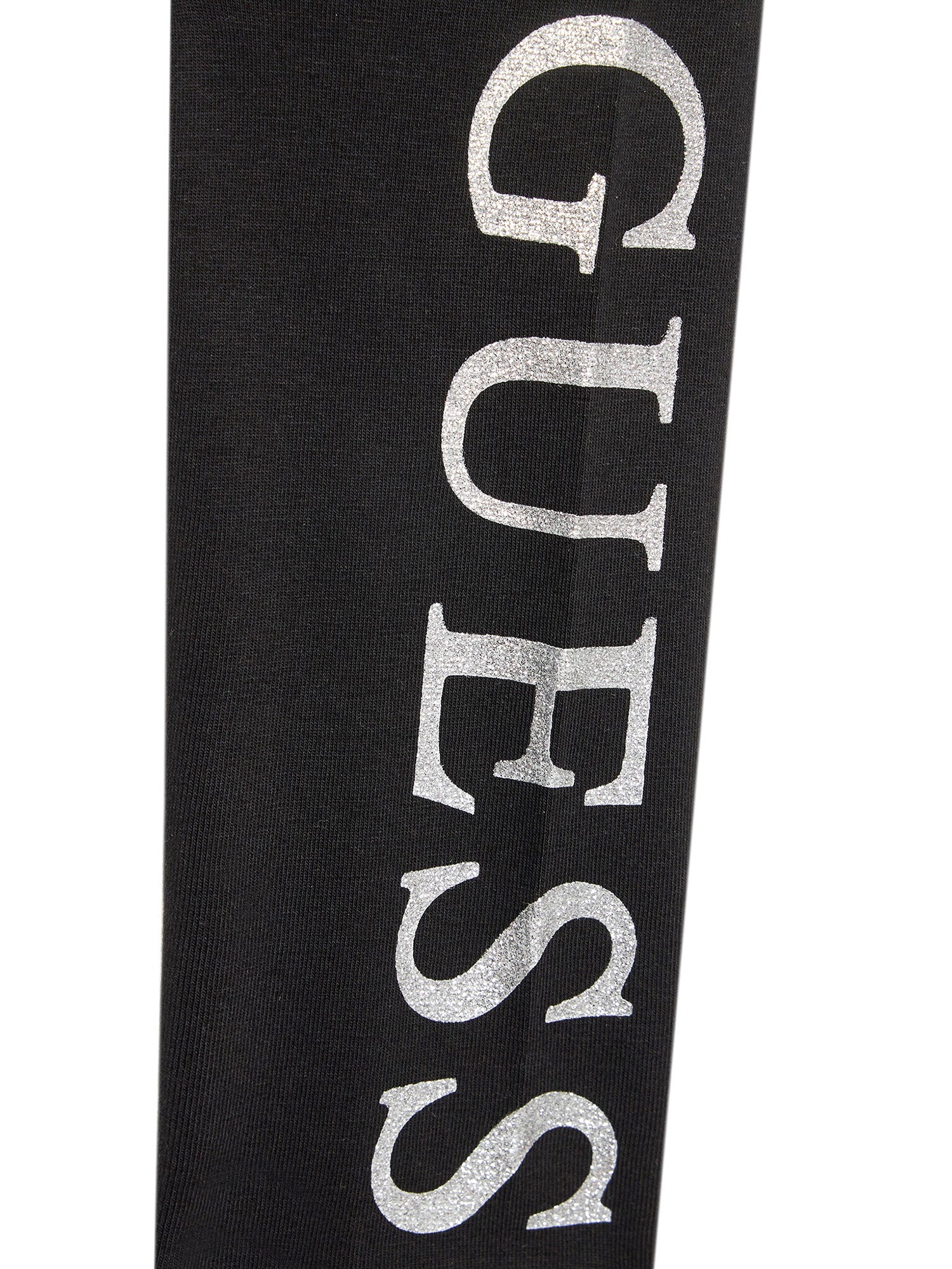 Leggings in cotone jersey Guess per bambina. Modello con elastico in vita e logo laterale a contrasto con glitter.
