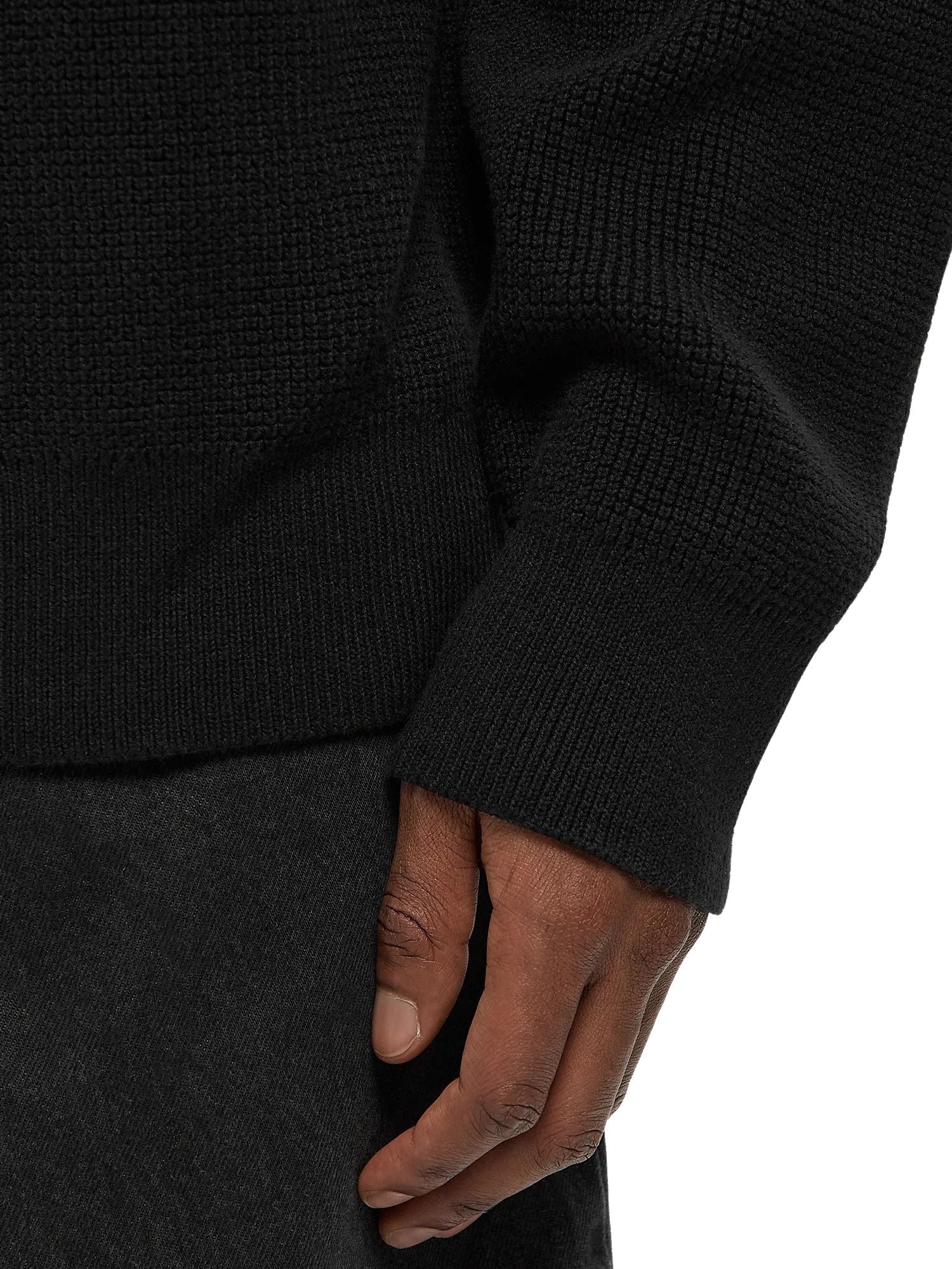 Maglia a lupetto con mezza zip modello cotton waffle nero