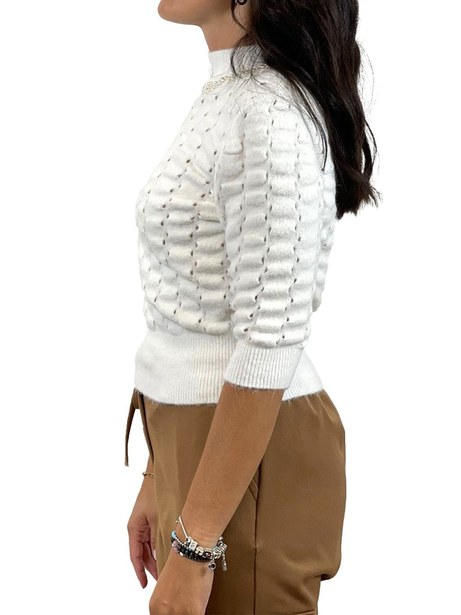 Maglione Mark Up, modello traforato in misto lana, con collo alto impreziosito da dettagli per un look sofisticato, un maglione che unisce comfort e stile, ideale per diverse occasioni.