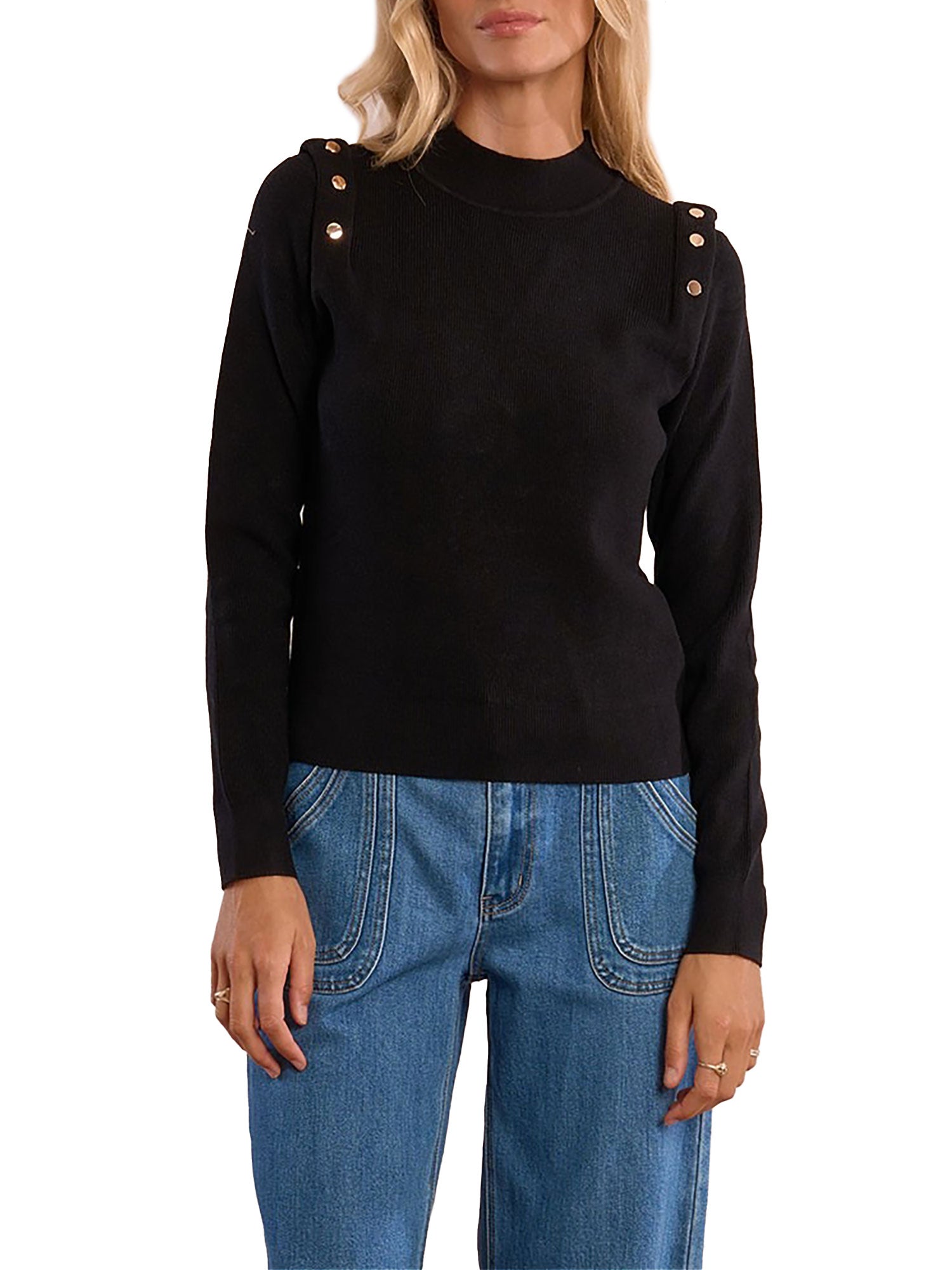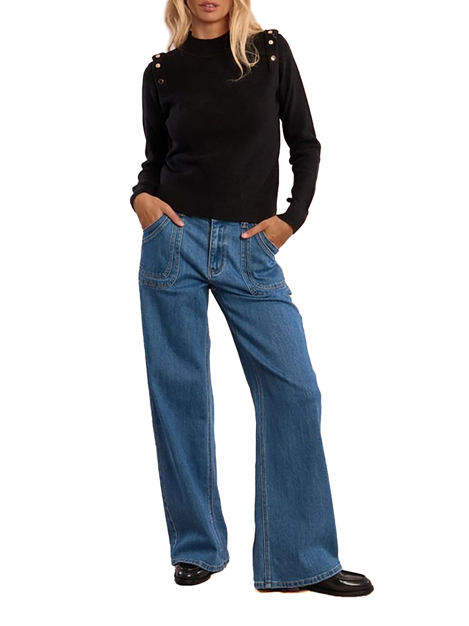 Lupetto Molly Bracken donna manica lunga con bottoni su spalla nero