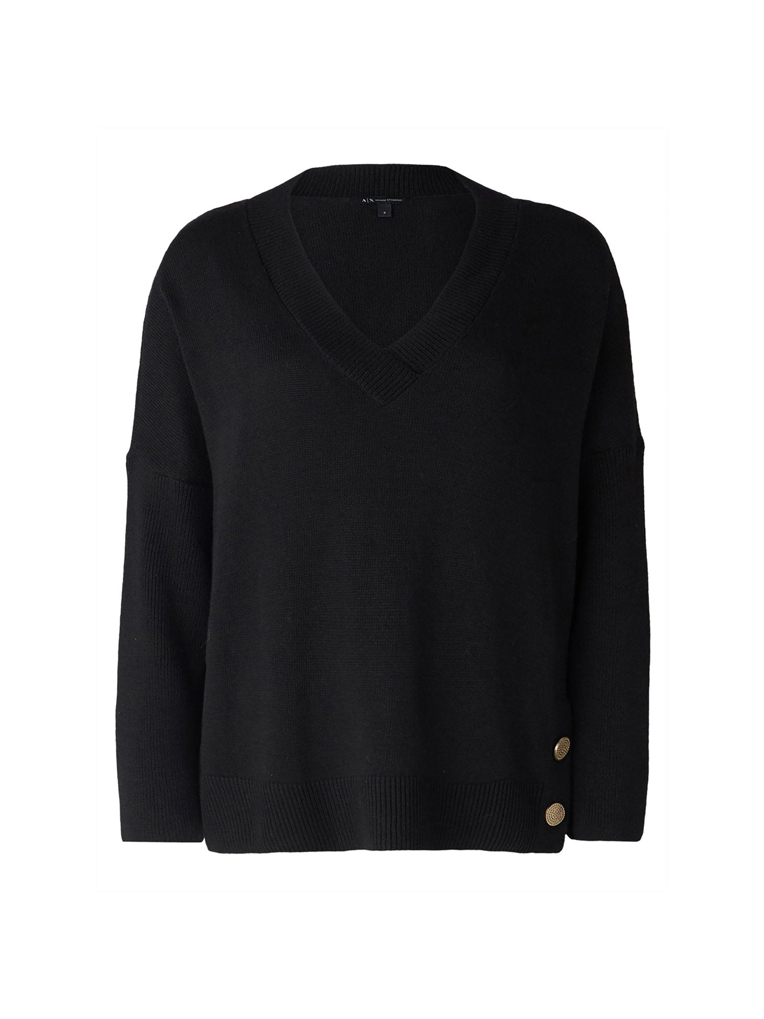 Maglione Armani Exchange, modello oversize con scollo a V, dalla maglia morbida e calda. Un capo perfetto per outfit casual-chic durante la stagione fredda. Ideale da abbinare a pantaloni skinny e stivaletti per il giorno, oppure a una gonna midi e scarpe décolleté per un look serale elegante ma rilassato.