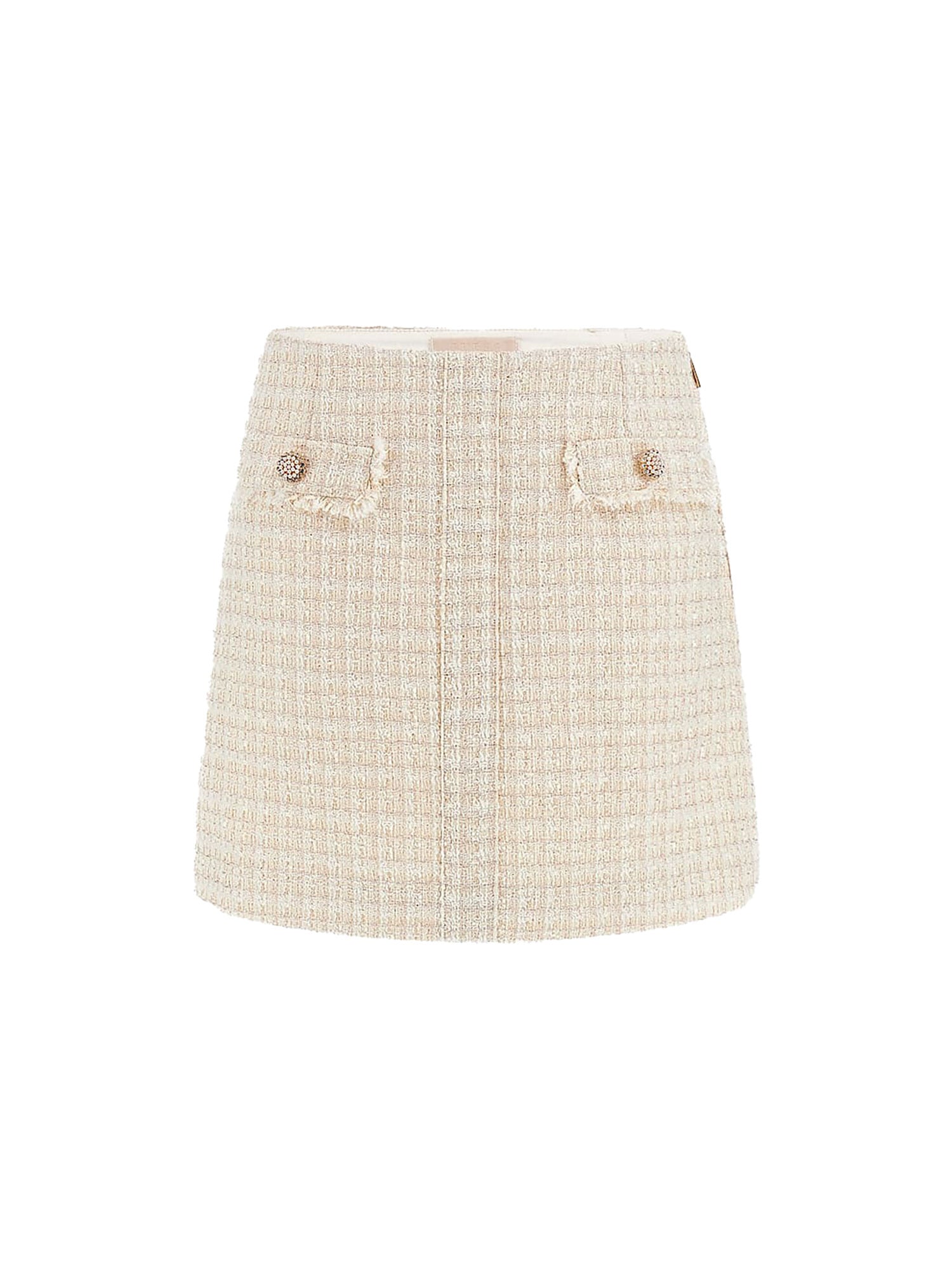 Minigonna Guess, modello ad alta vita , con fibre metallizzate per un tocco moderno. Ha un morbido tessuto in tweed che si presta ad occasioni chic e formali.
