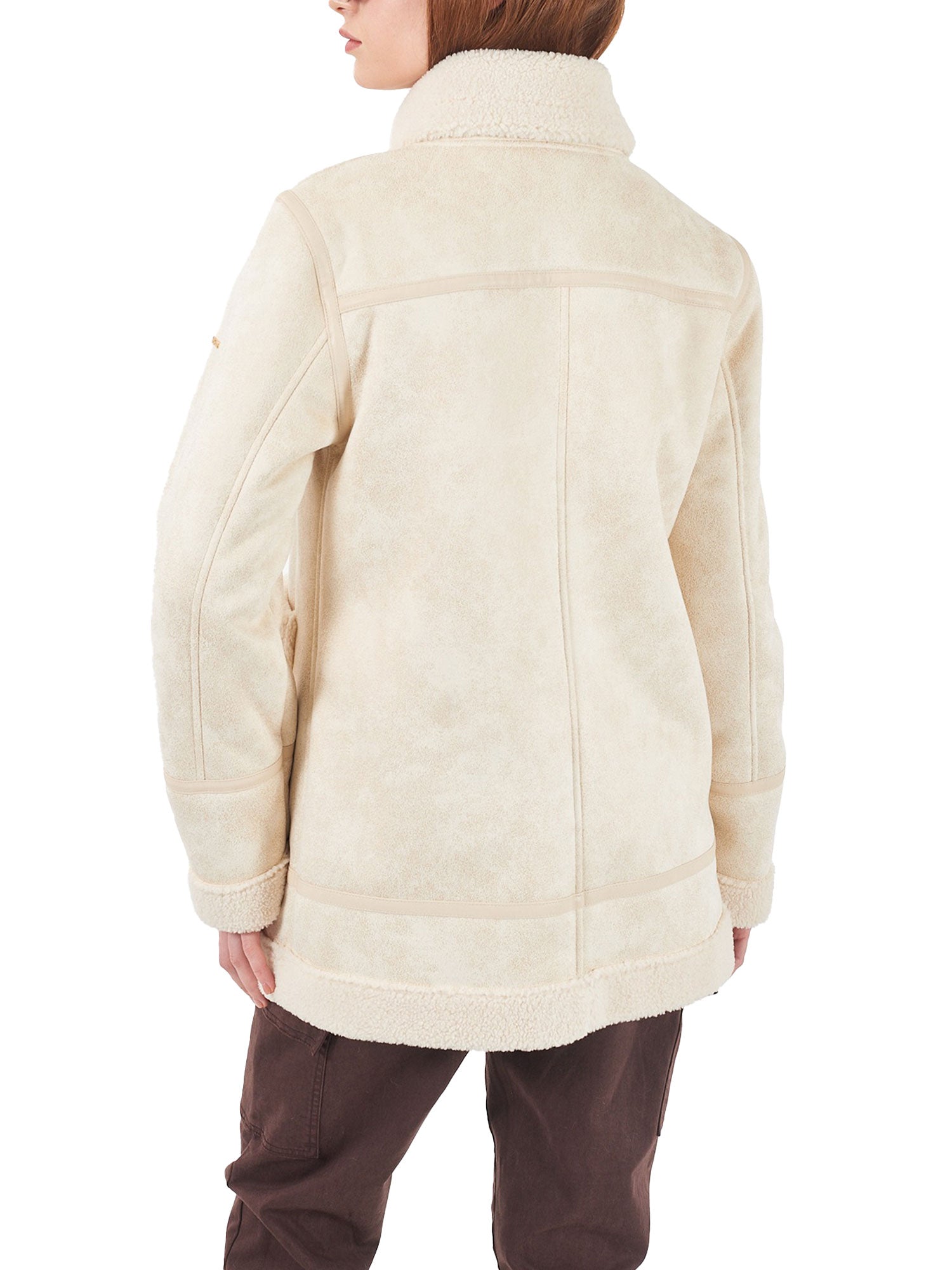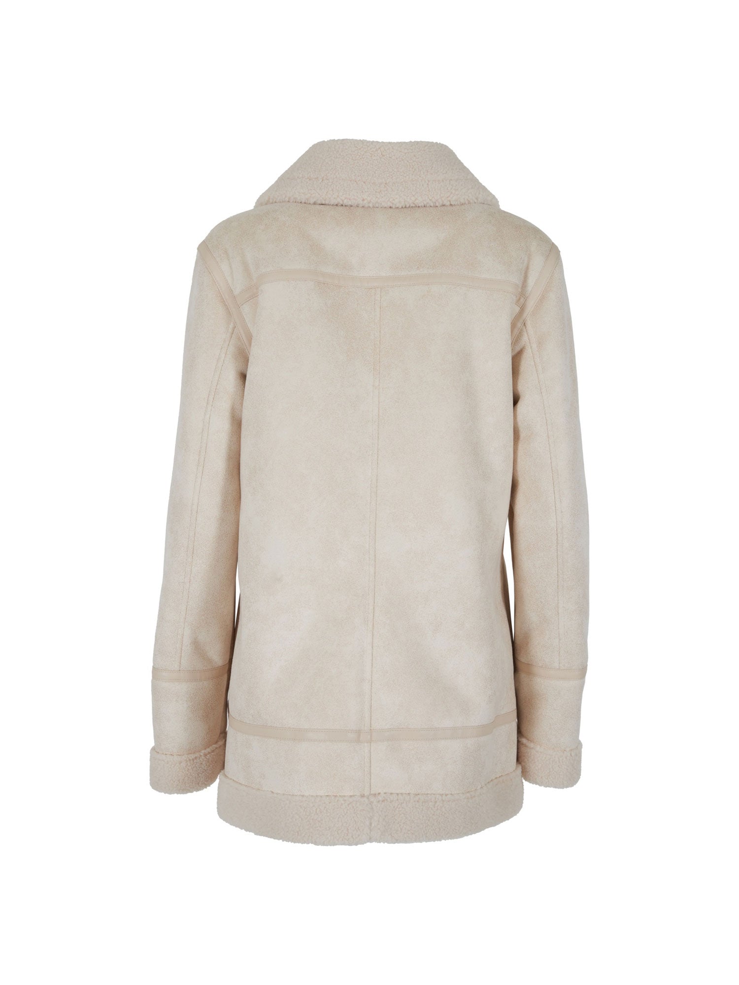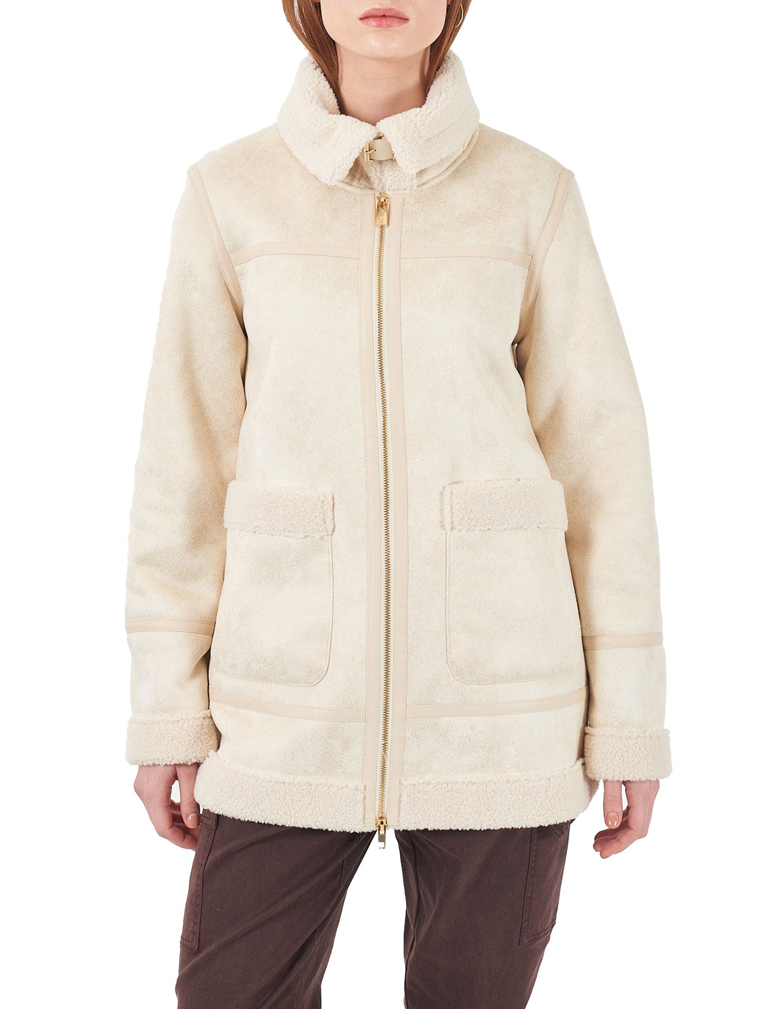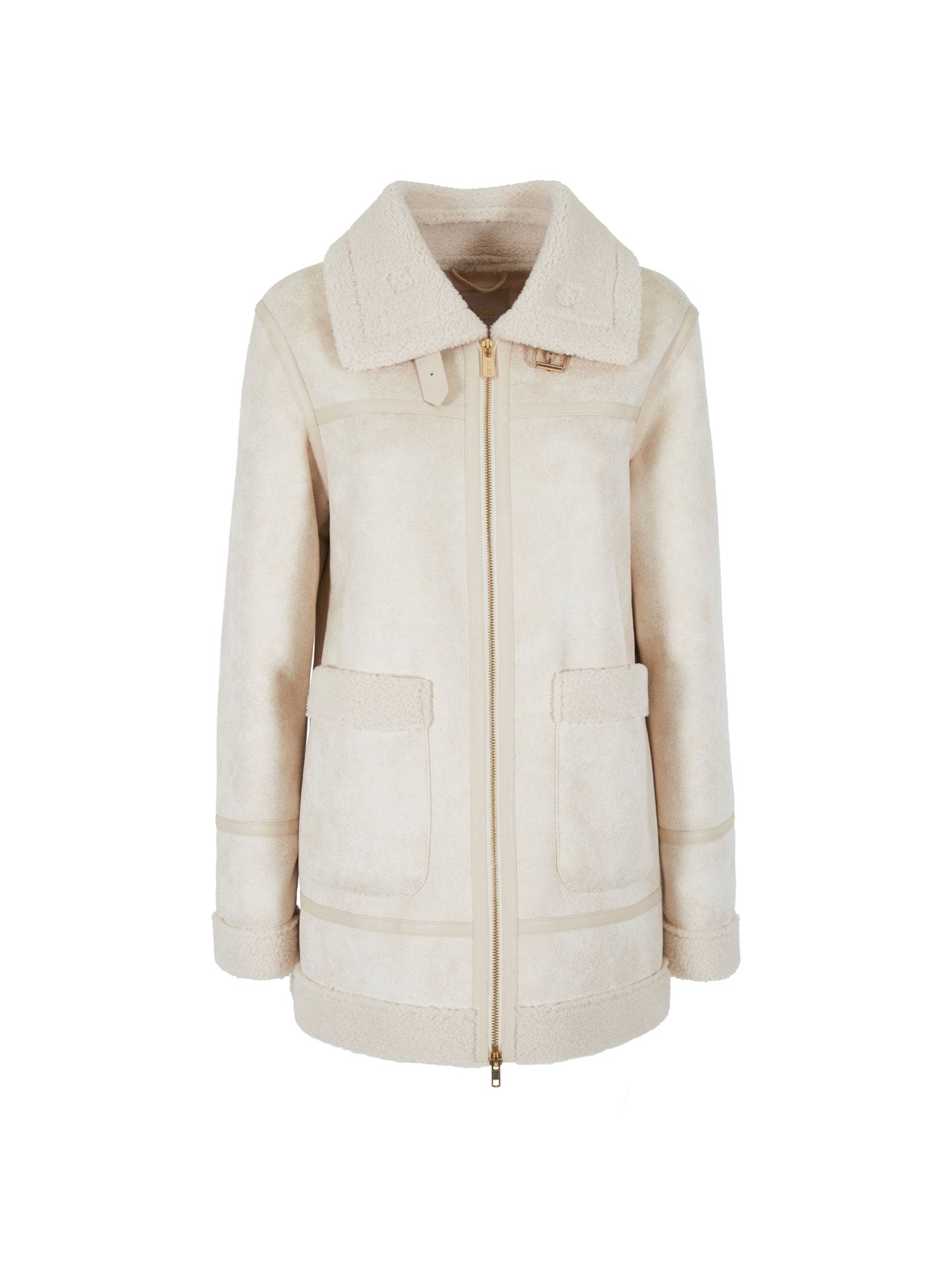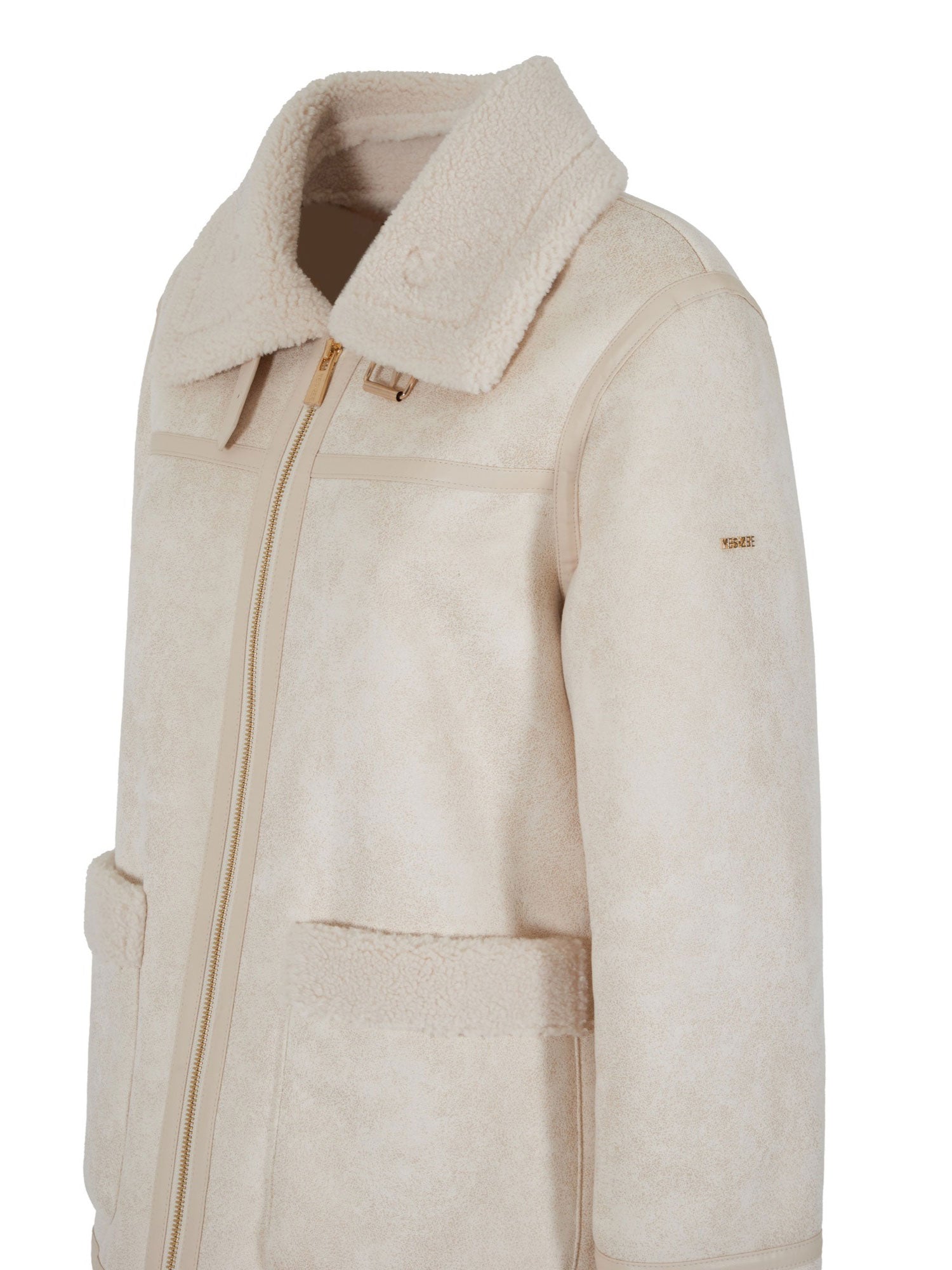 Montone lungo Yes Zee donna Synt inserti in ecopelle e interno pelliccia avorio