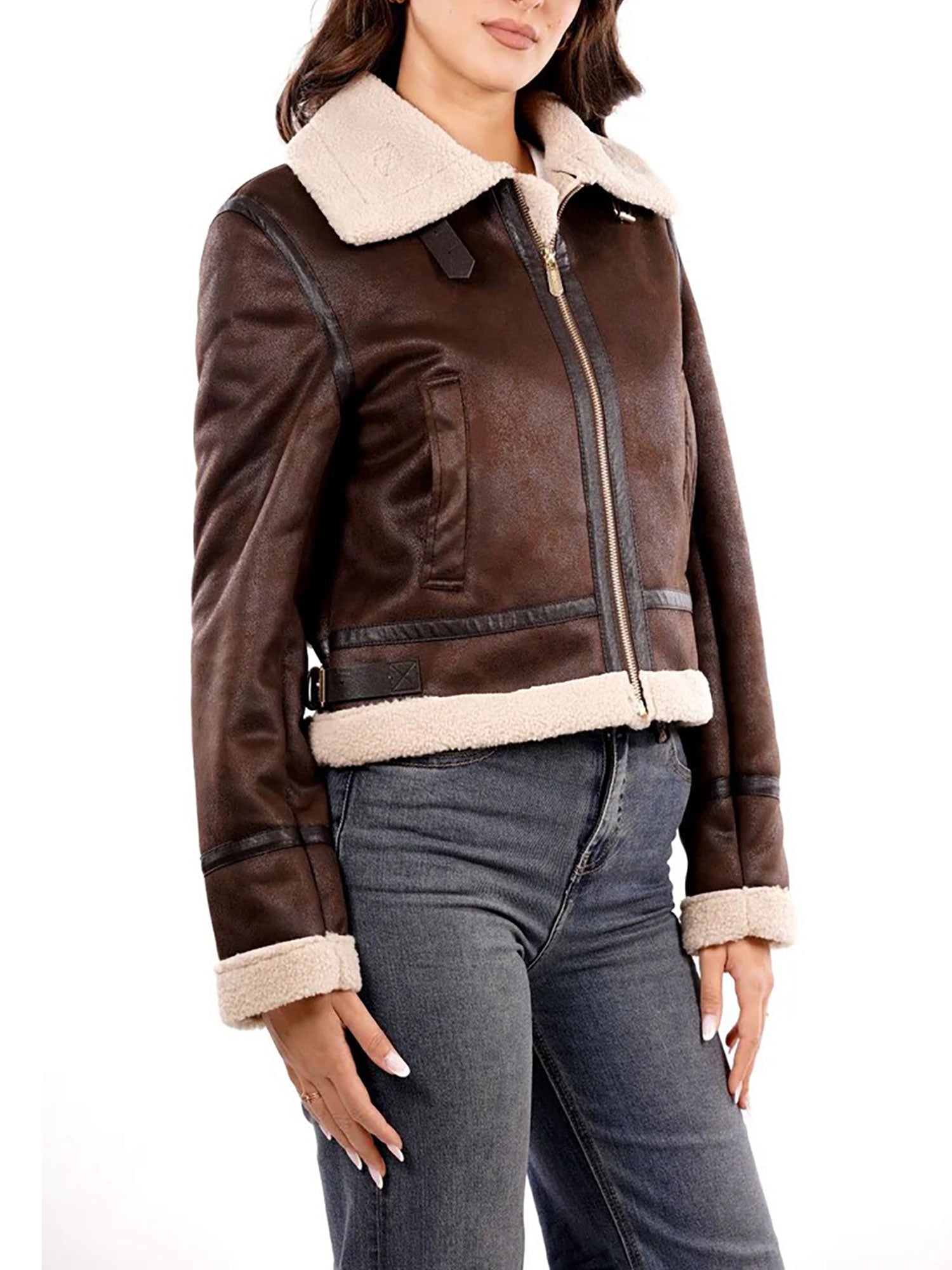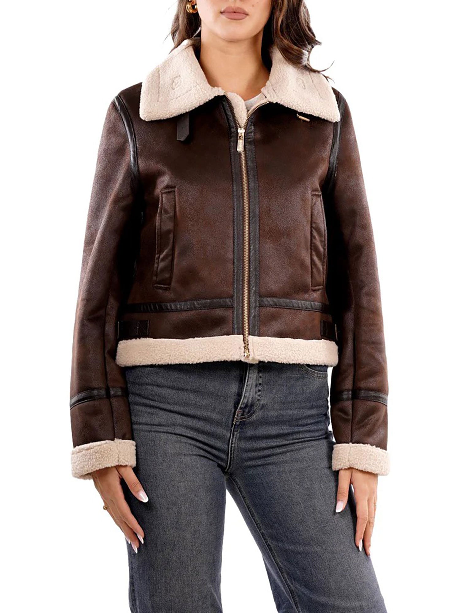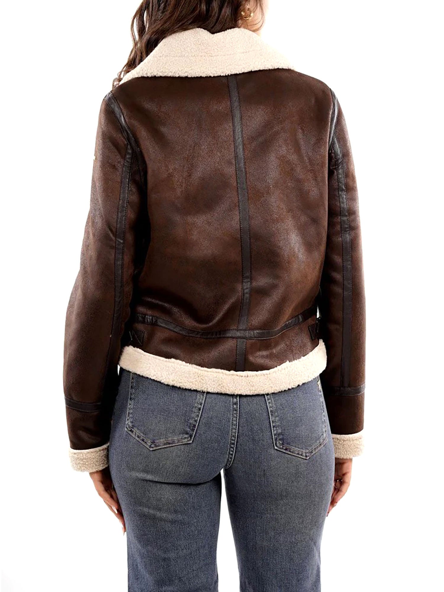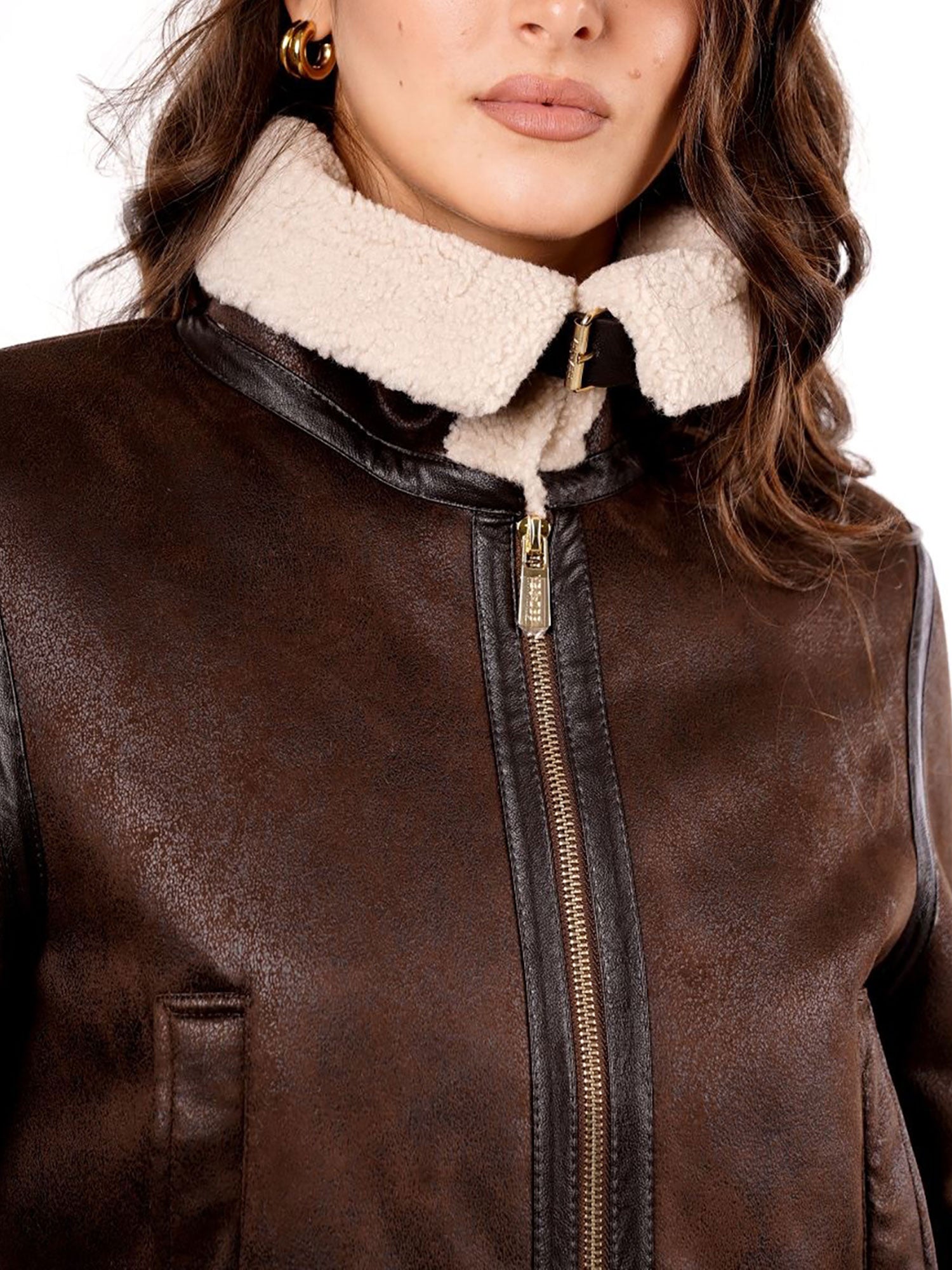 - Dettagli in morbido tessuto shearling su colletto e orlo