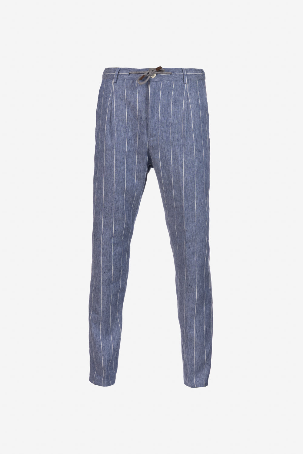 Pantalone Amalfi in lino e cotone con coulisse gessato azzurro