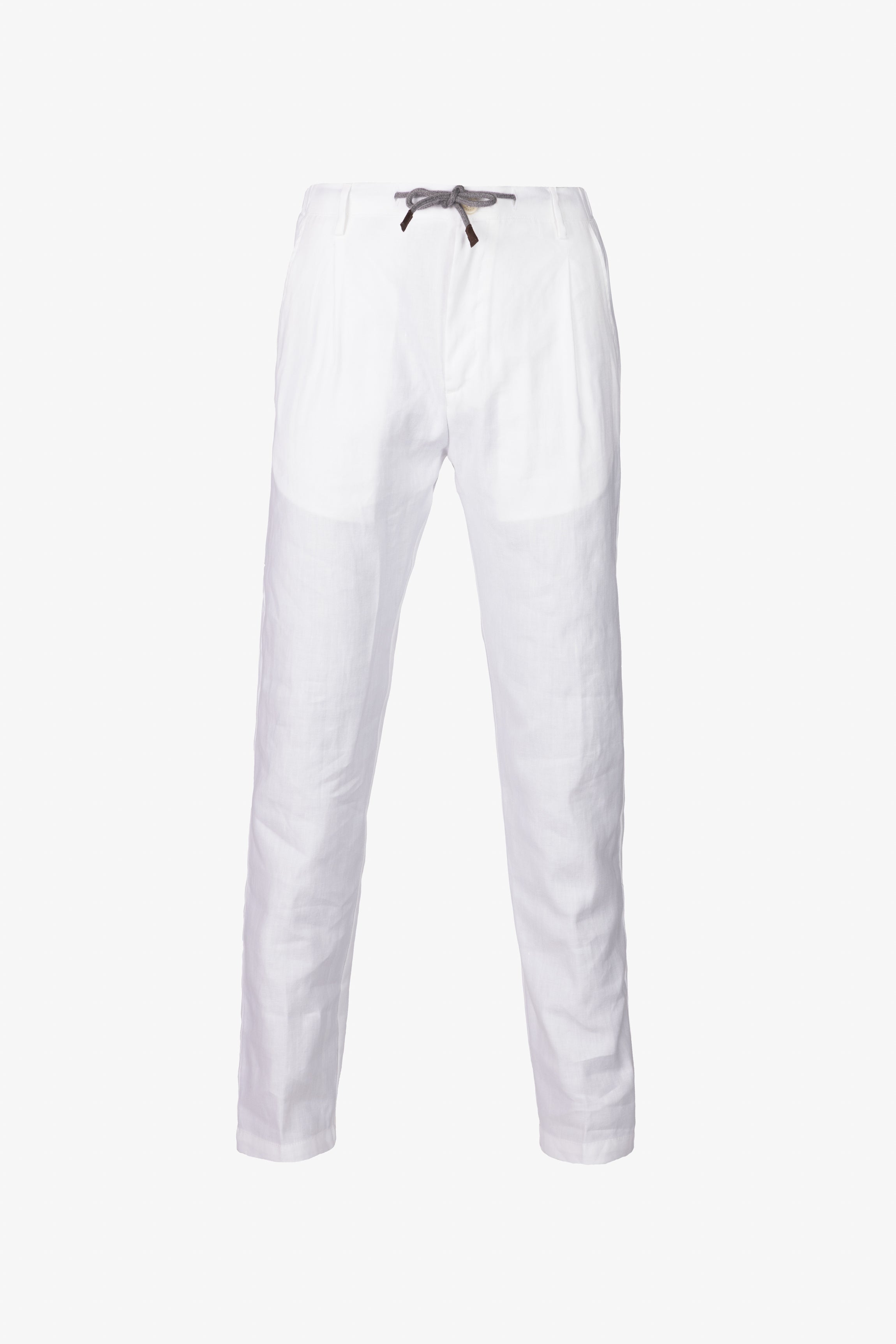 Pantaloni realizzati in un pregiato blend di cotone e lino, ideali per la stagione primavera-estate grazie alla leggerezza e alla naturale traspirabilità del tessuto.