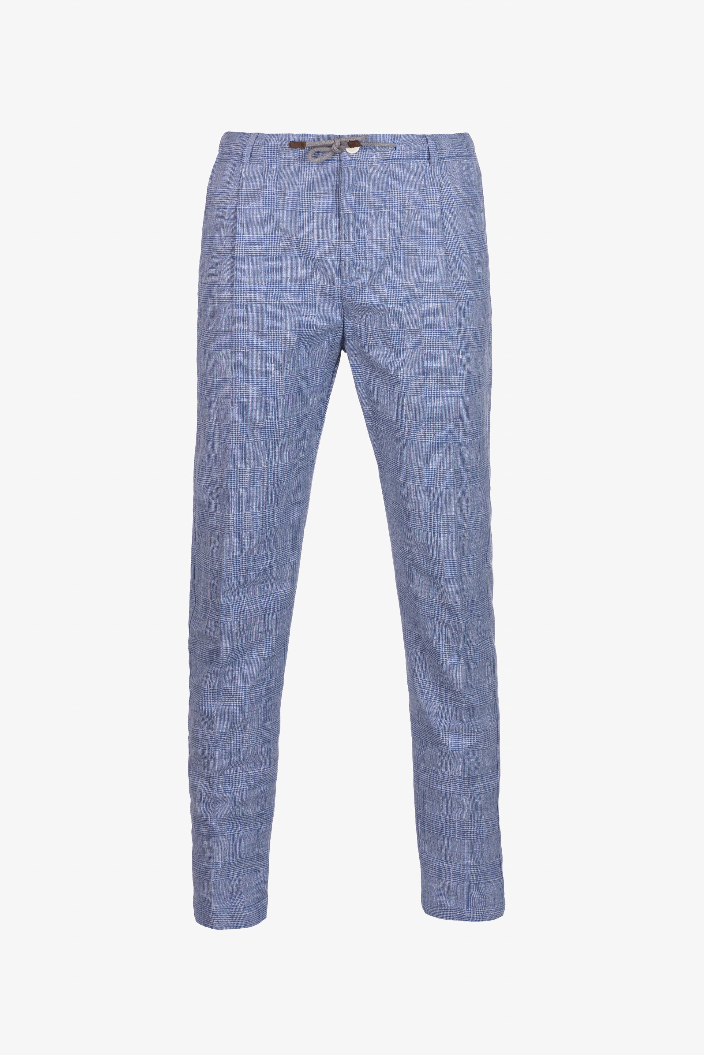 Pantaloni Amalfi in cotone Principe di Galles bluette