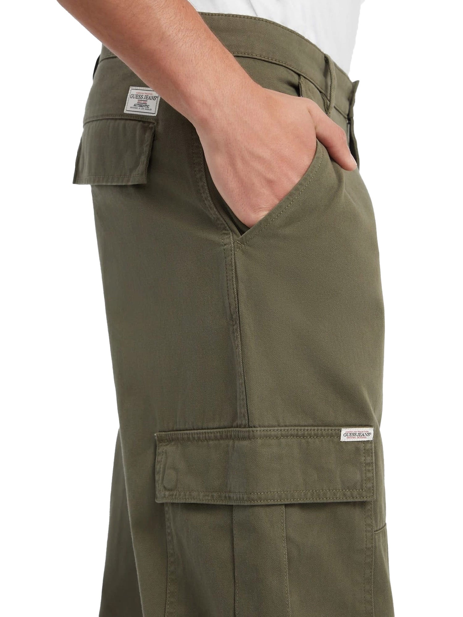 Pantalone cargo Guess dalla vestibilità classic con gamba relaxed. Presenta una struttura a quattro tasche con tasche cargo laterali. Articolo realizzato in misto cotone organico.