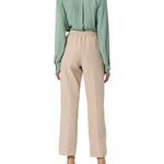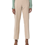 Raffinato ed essenziale, questo pantalone a vita alta Fracomina è il capo ideale per valorizzare la silhouette con eleganza. Realizzato in tessuto fluido dalla linea dritta, presenta pinces frontali cucite per un effetto slanciante e una cintura coordinata con dettaglio metallico dorato a doppio anello, che aggiunge un tocco sofisticato.