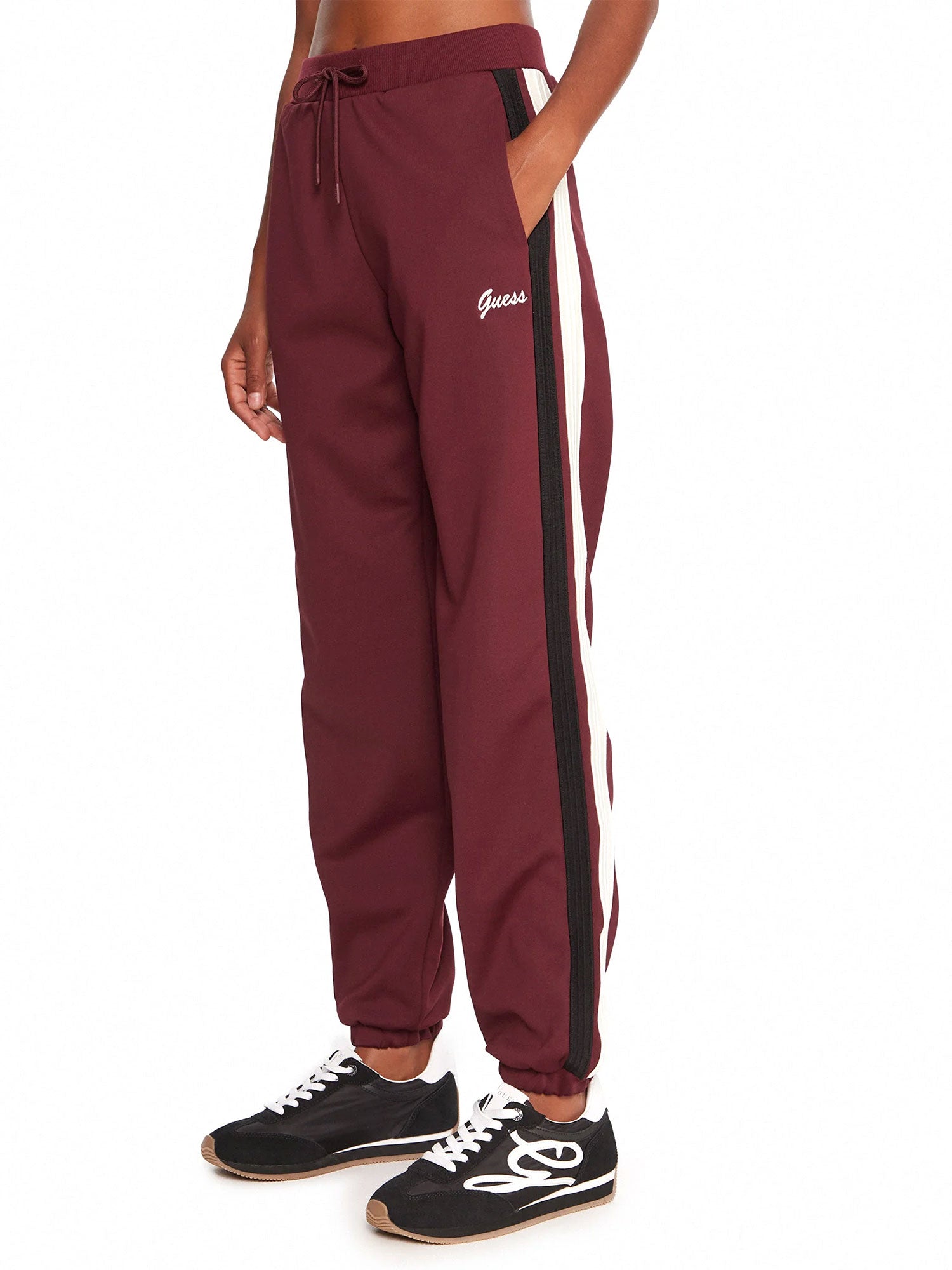 Pantalone jogger Guess donna Fabia con bande laterali a contrasto bordeaux