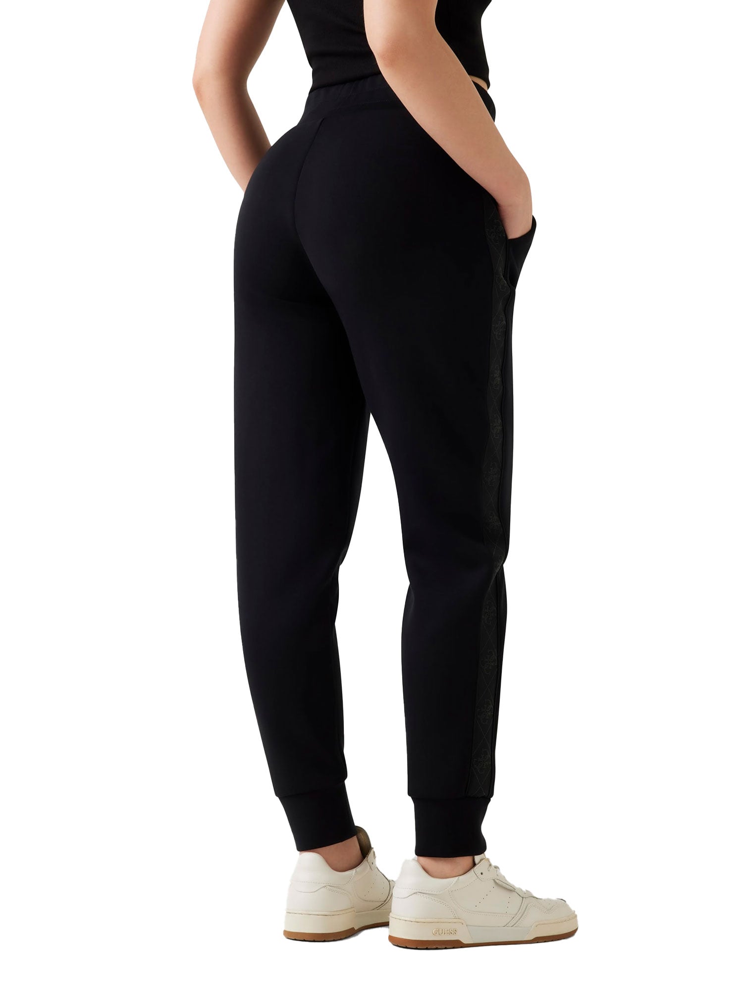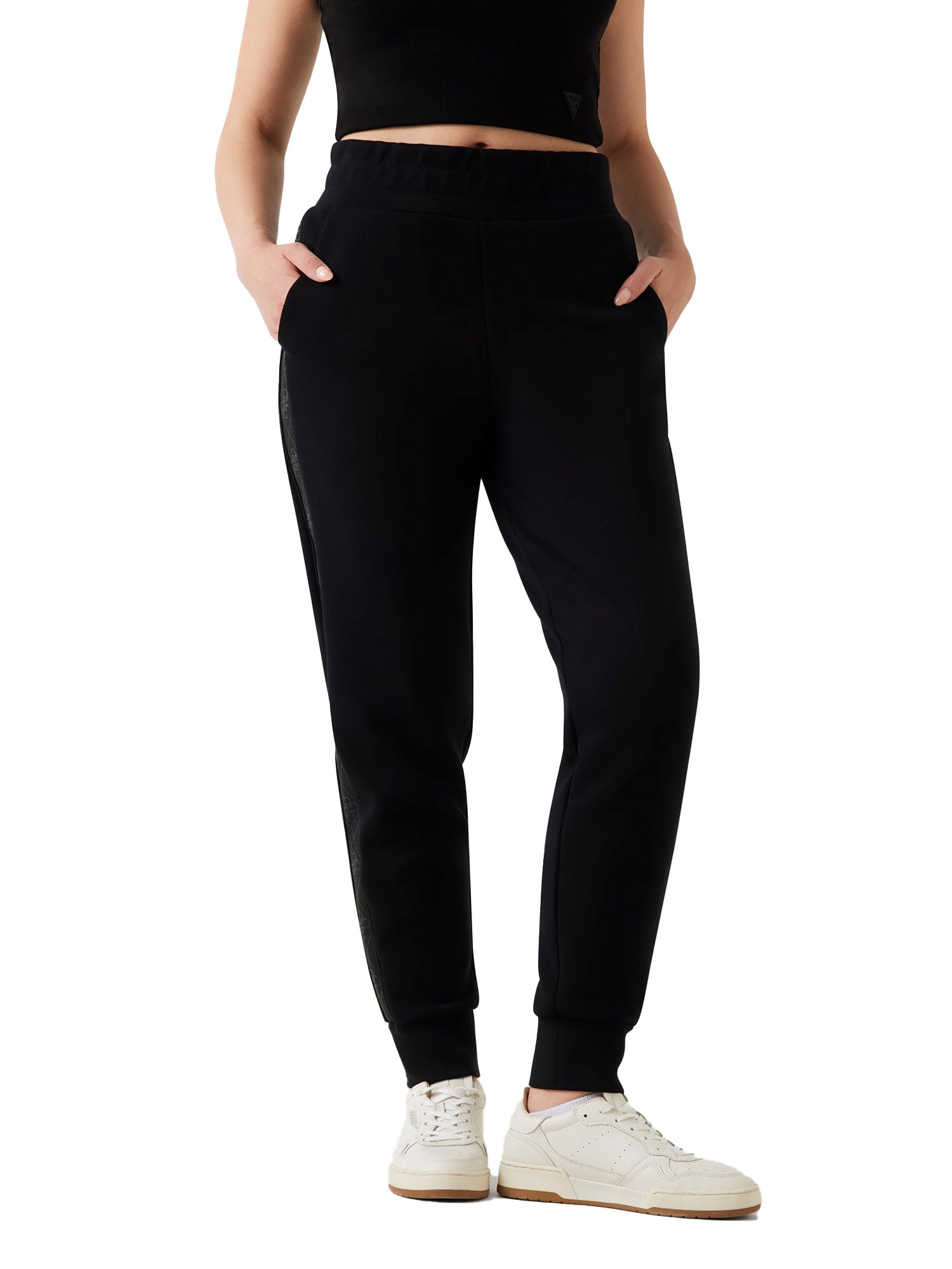 Pantalone jogger Guess donna Scuba con fasce logate nero