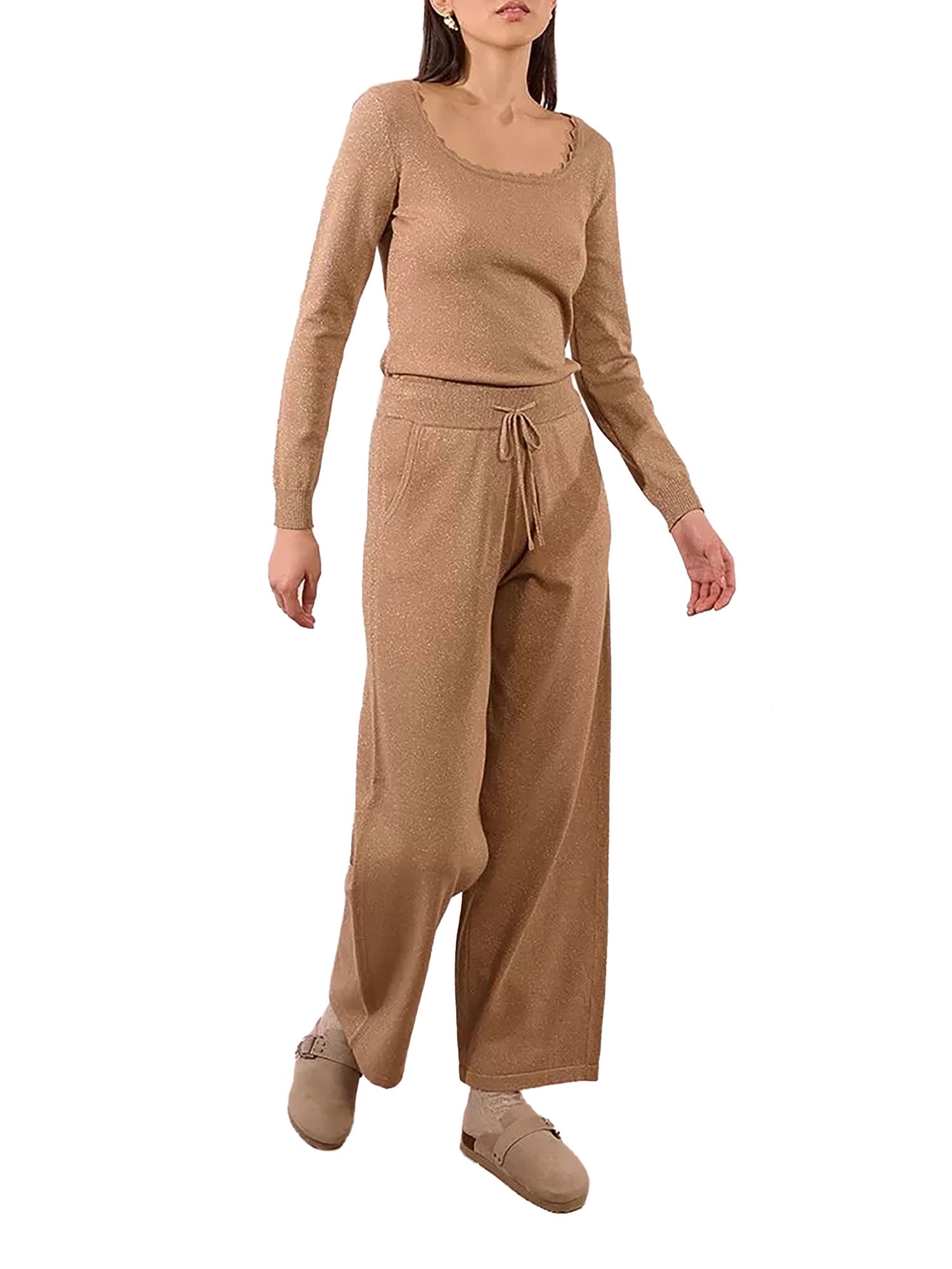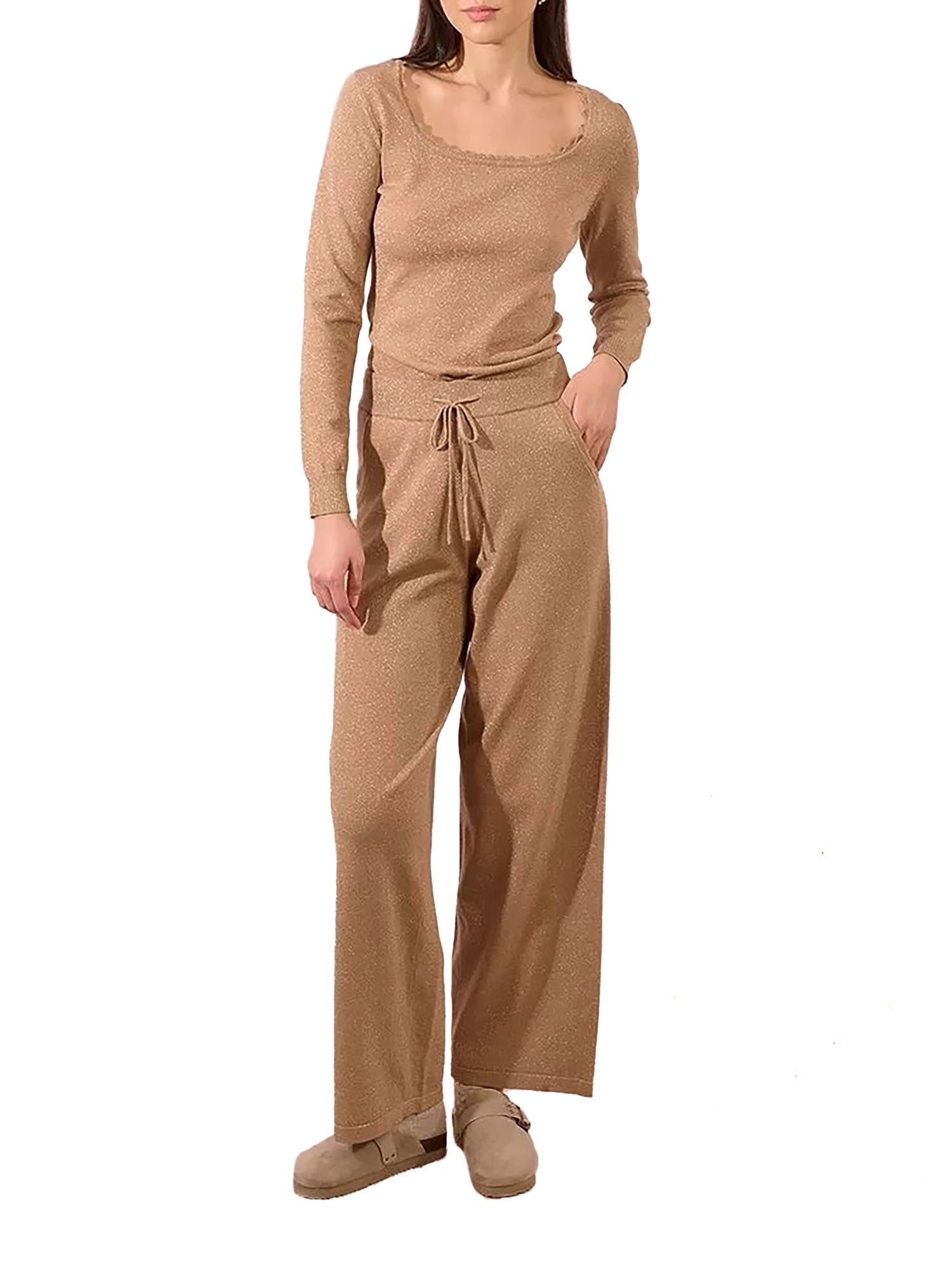 Pantalone palazzo Molly Bracken donna coulisse beige oro