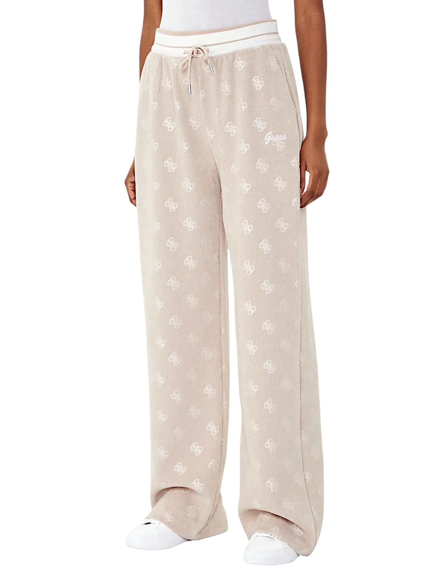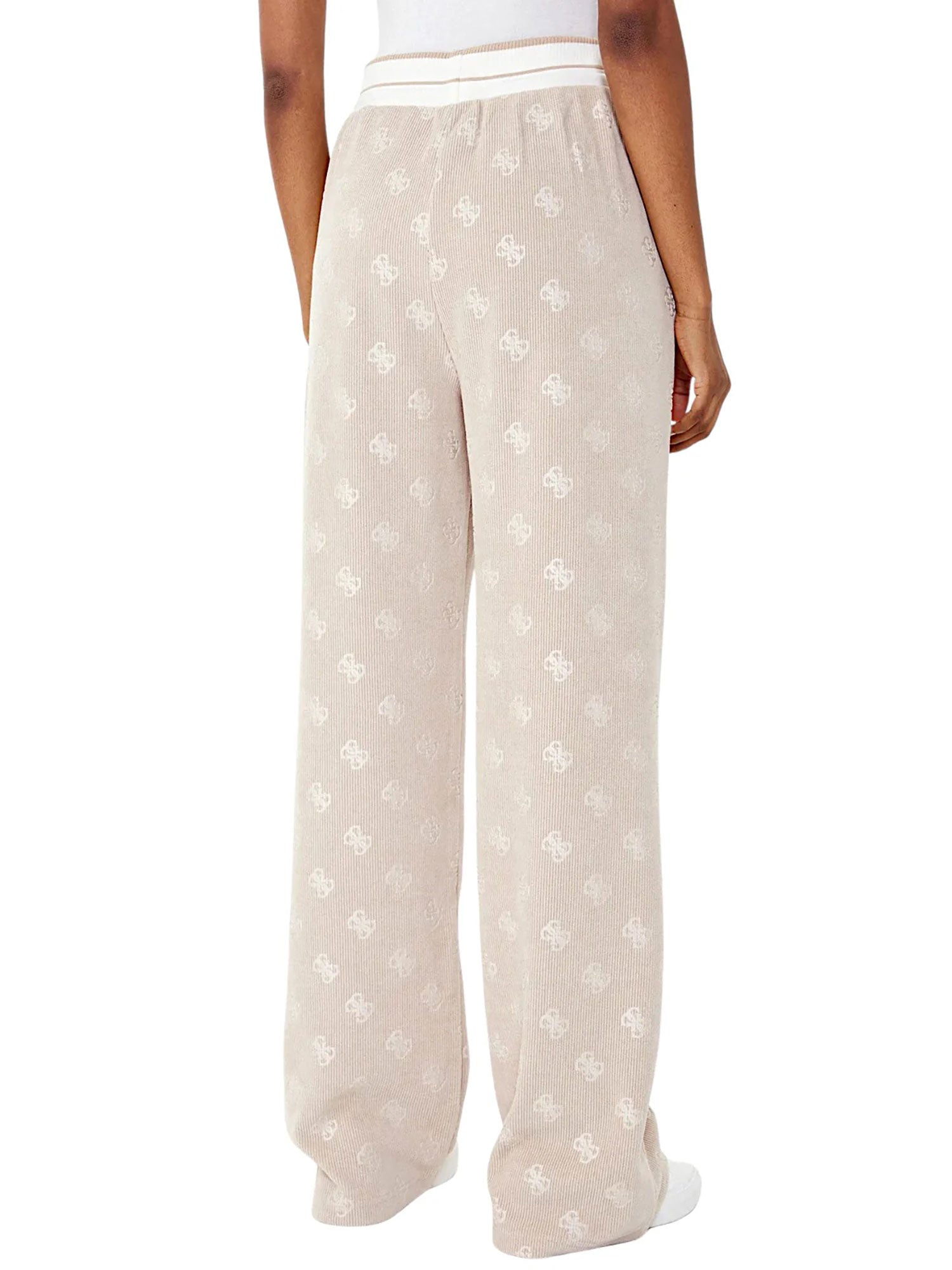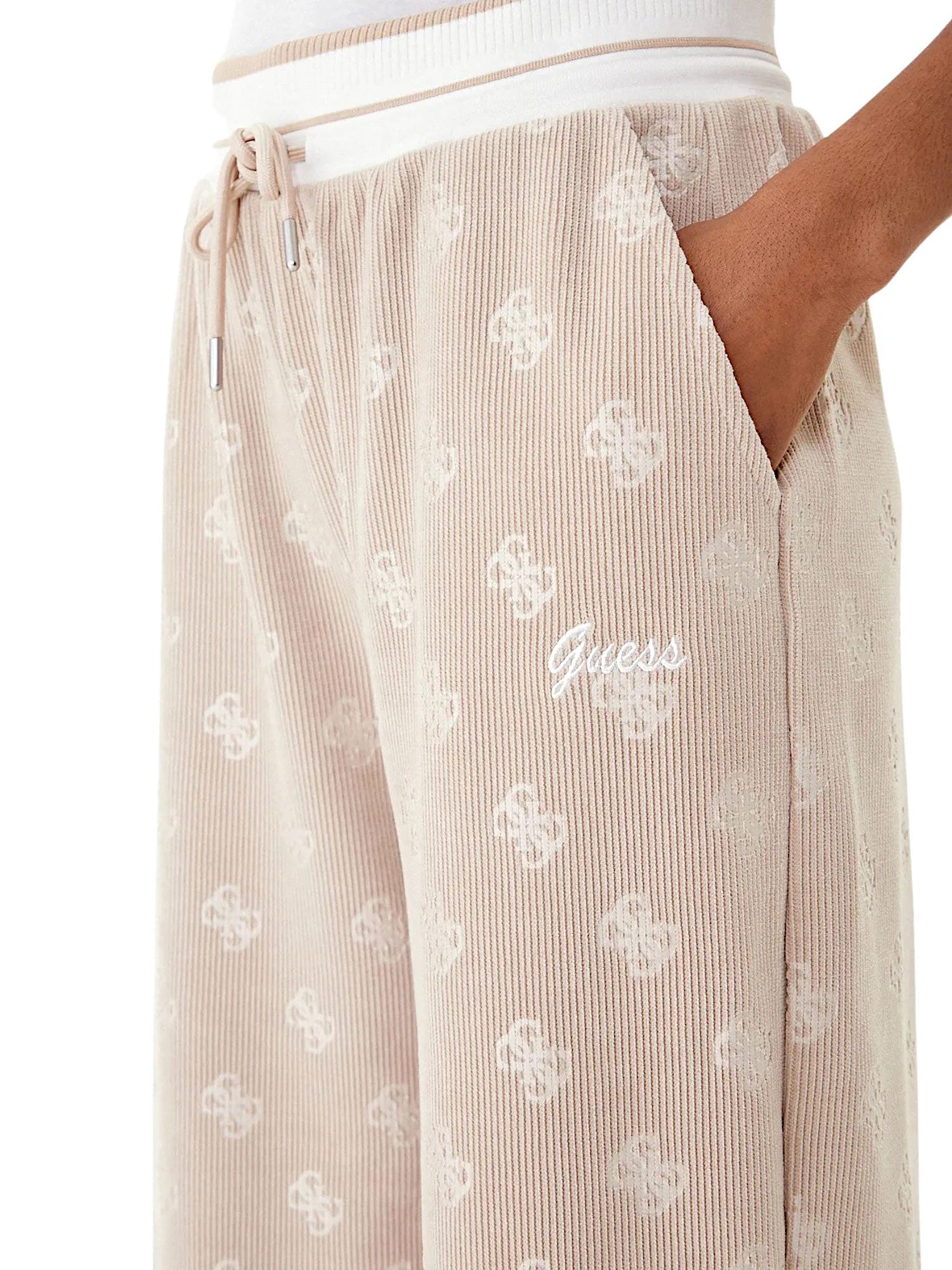 Pantalone wide leg Guess donna Paulina logo allover burro