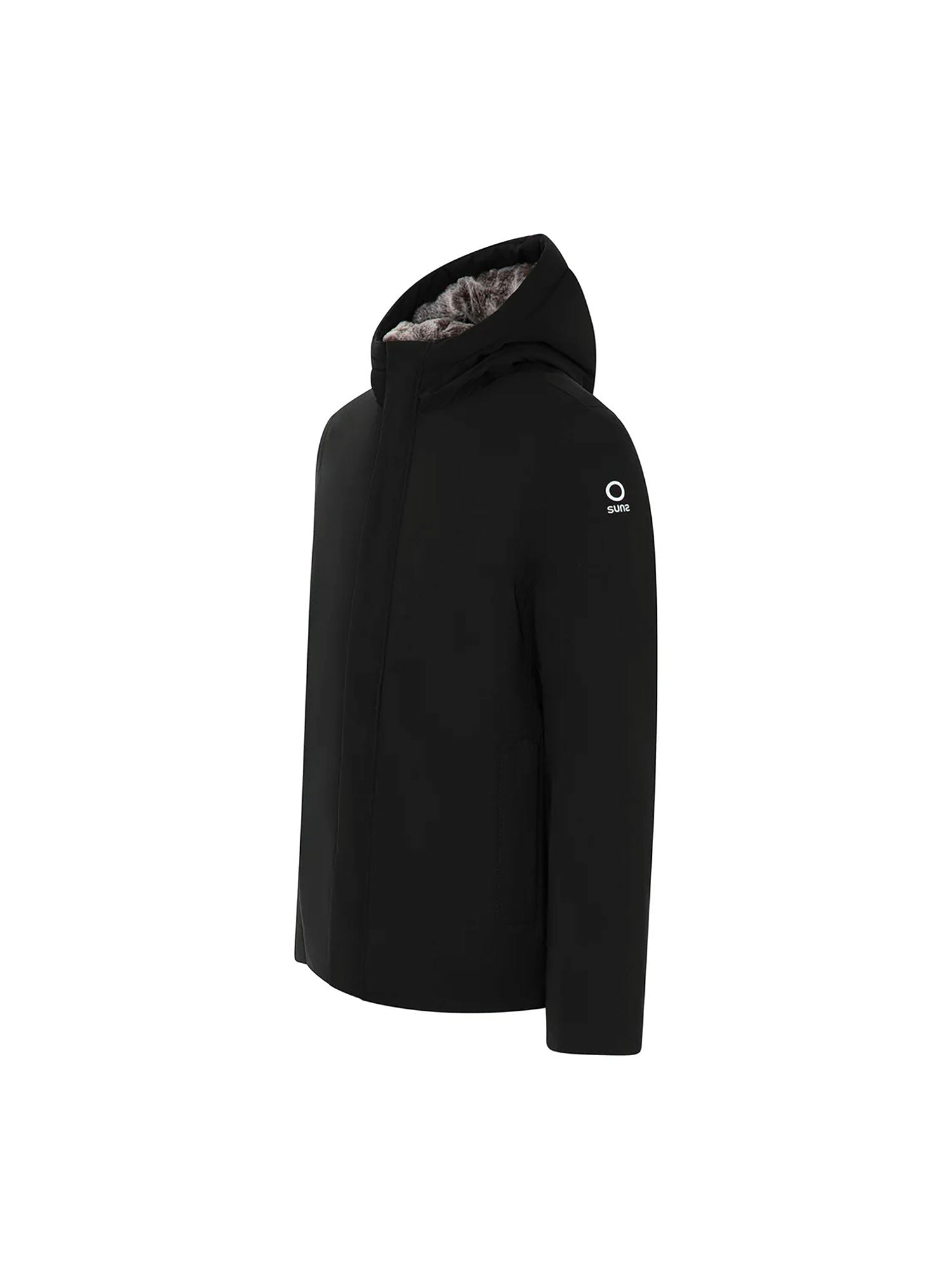 Parka corto Suns uomo Montebianco fur con cappuccio nero