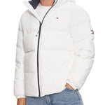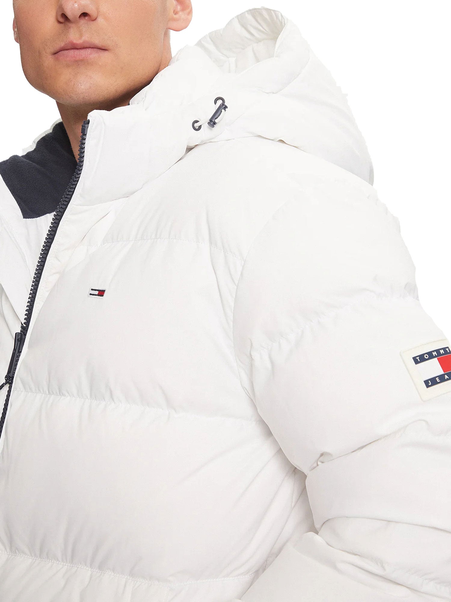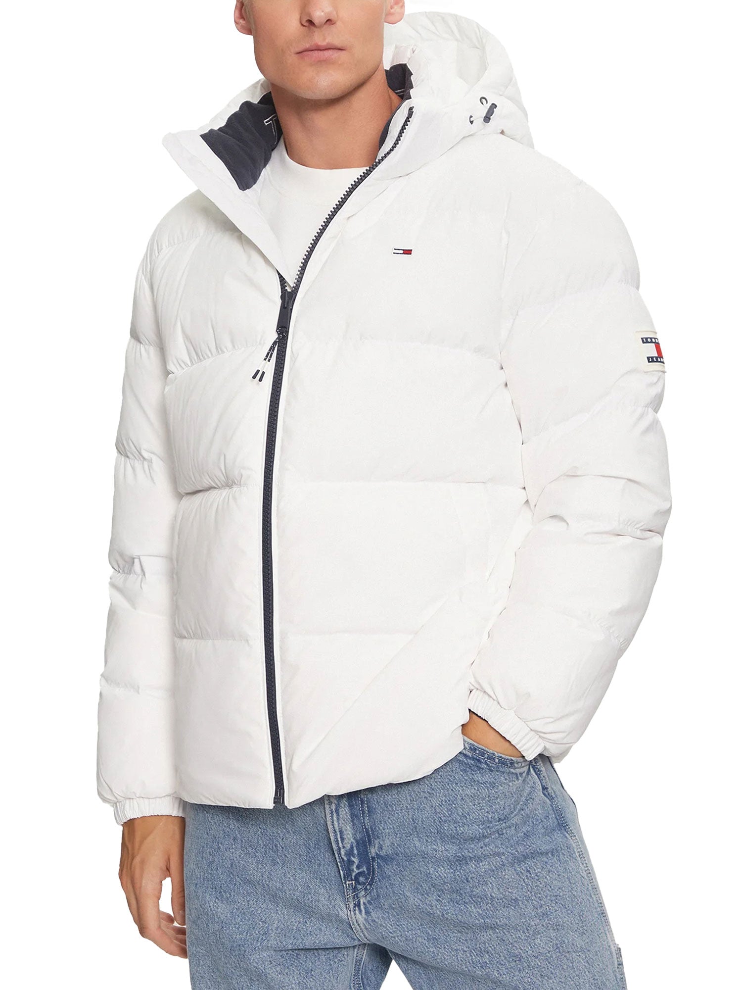 Piumino Tommy Jeans, modello corto con zip, cappuccio rimovibile, due tasche a filetto in vita, logo all'interno del collo e patch bandierina sul petto. Progettato per garantire comfort quotidiano, adatto a ogni momento della giornata.