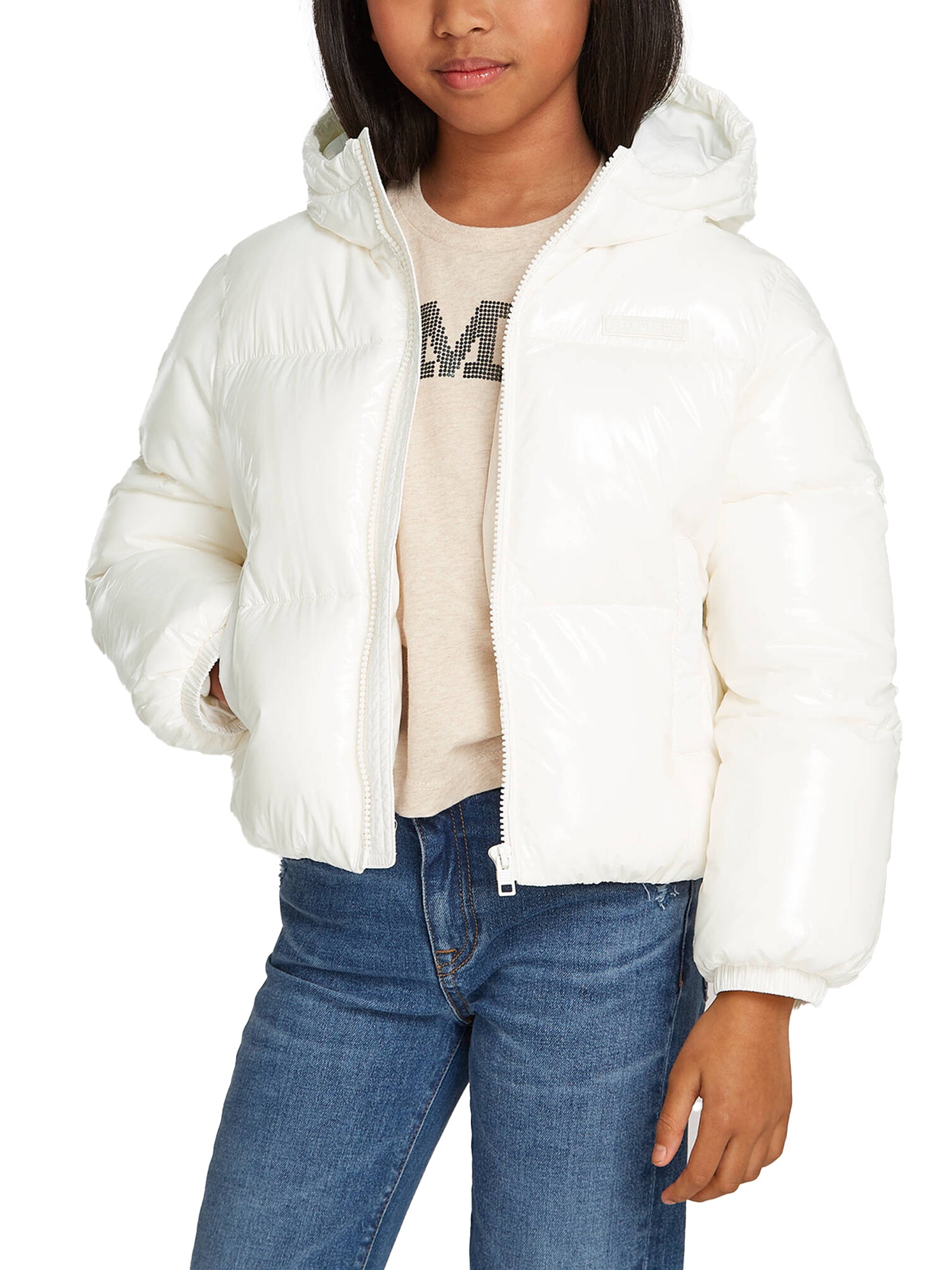 Piumino Teen New York glossy con cappuccio bianco