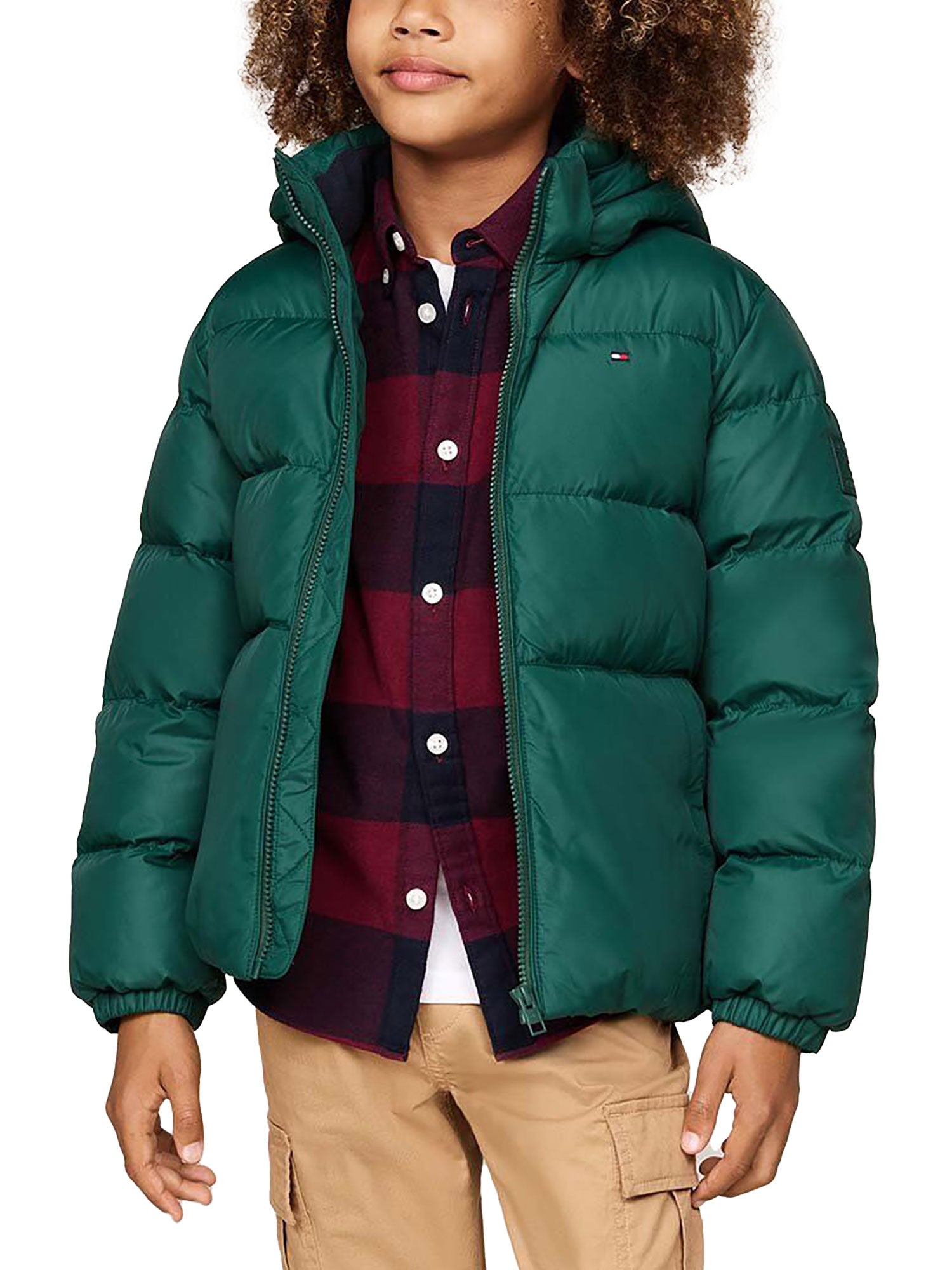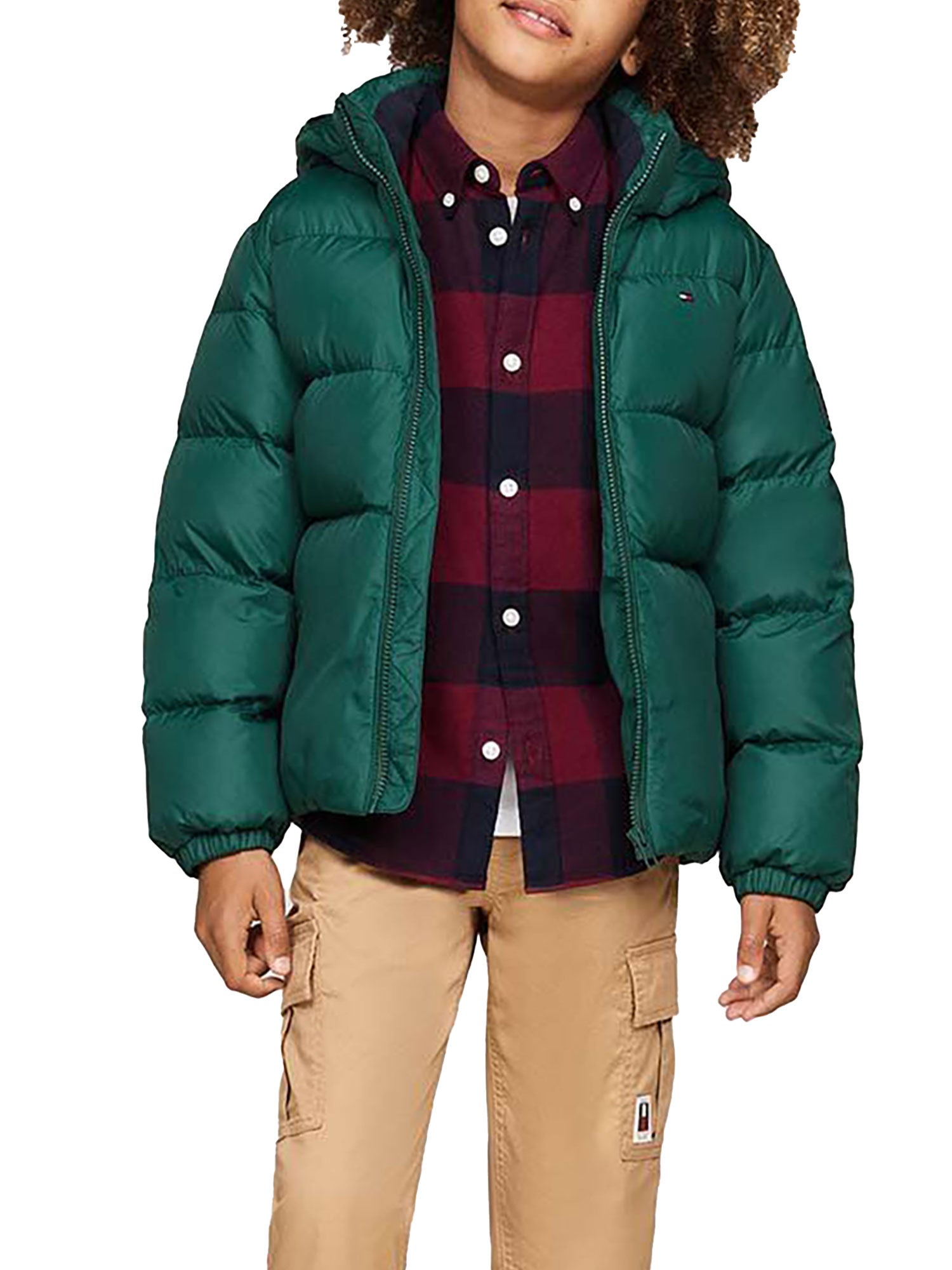 Piumino con zip Tommy Hilfiger , realizzato in materiale a tinta unita isolato. Ideale per giornate fredde, per tenere il tuo bimbo al caldo.