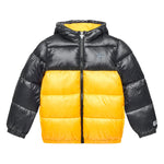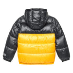 Piumino zip con cappuccio color block nero/giallo