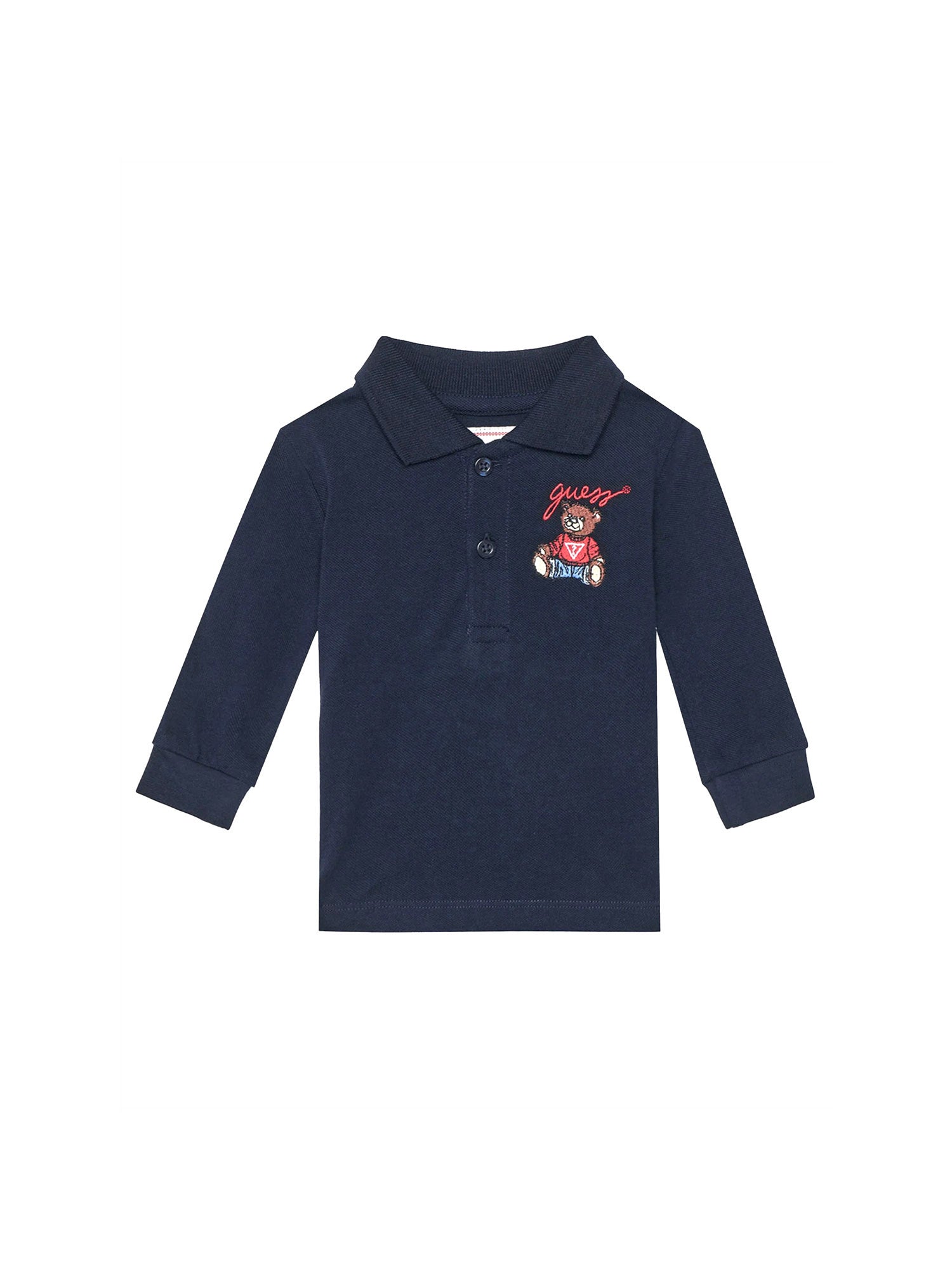 Polo manica lunga Guess neonato ricamo teddy blu