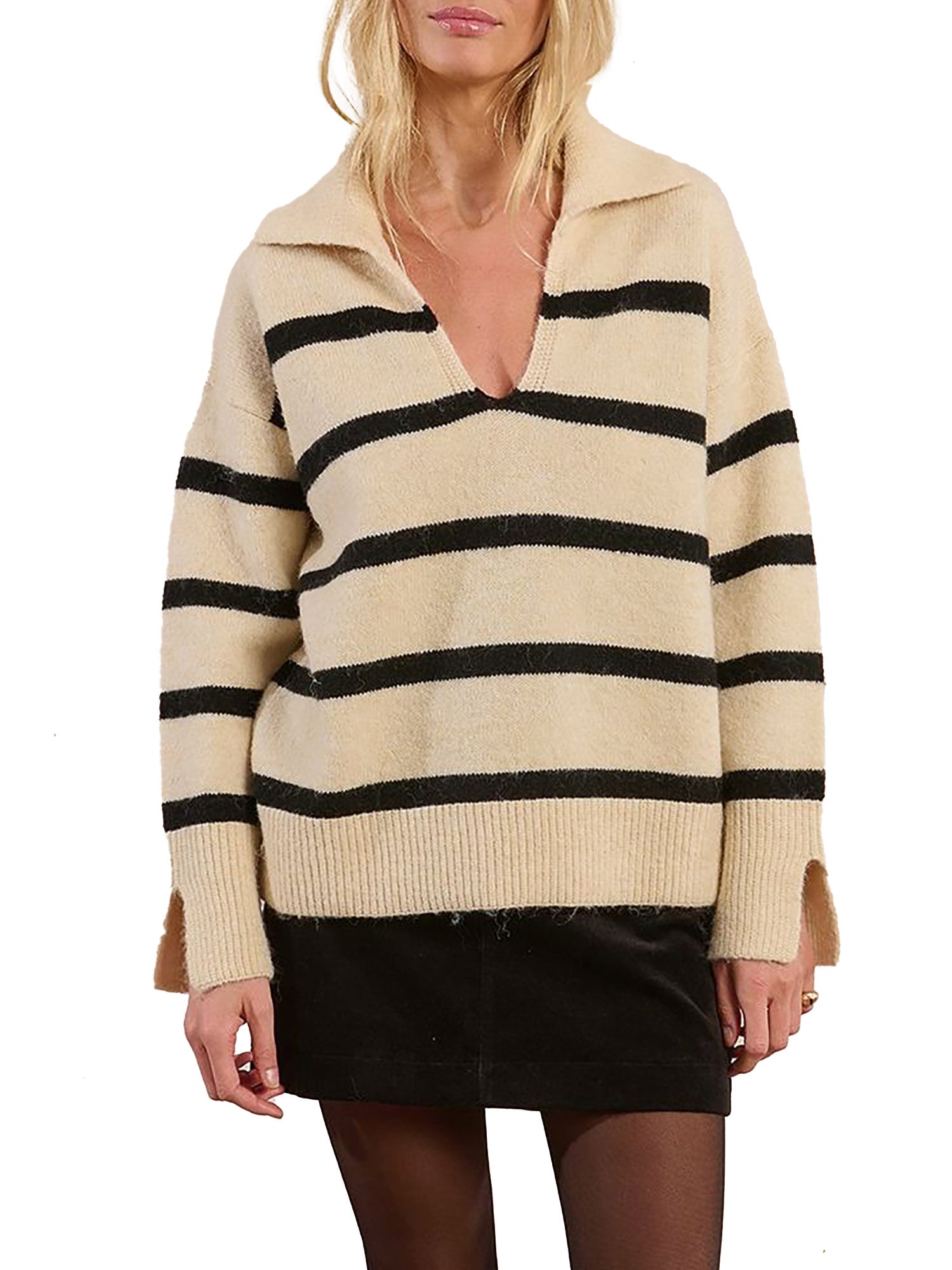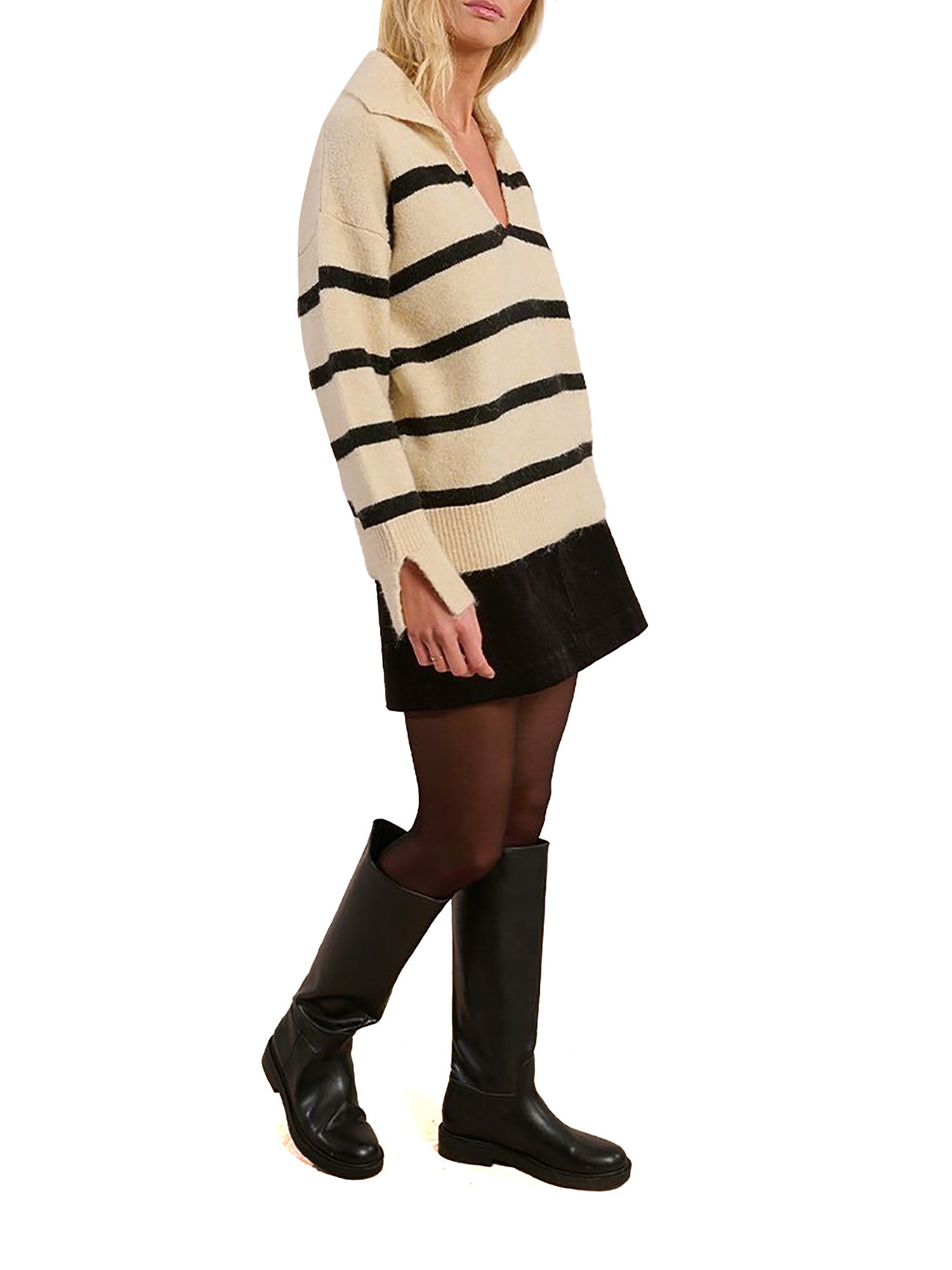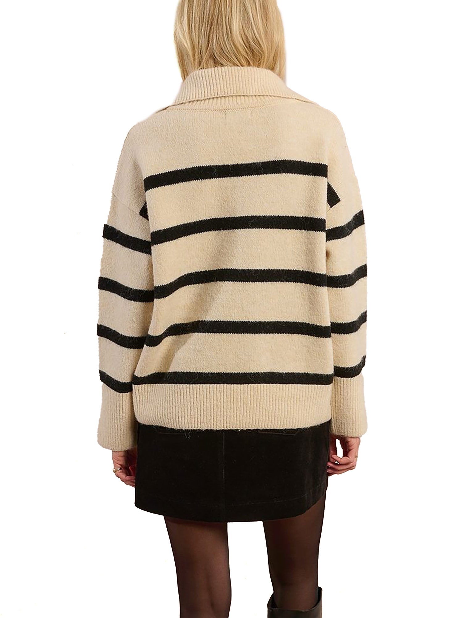 Polo Molly Bracken donna manica lunga a righe maglia bianco/nero