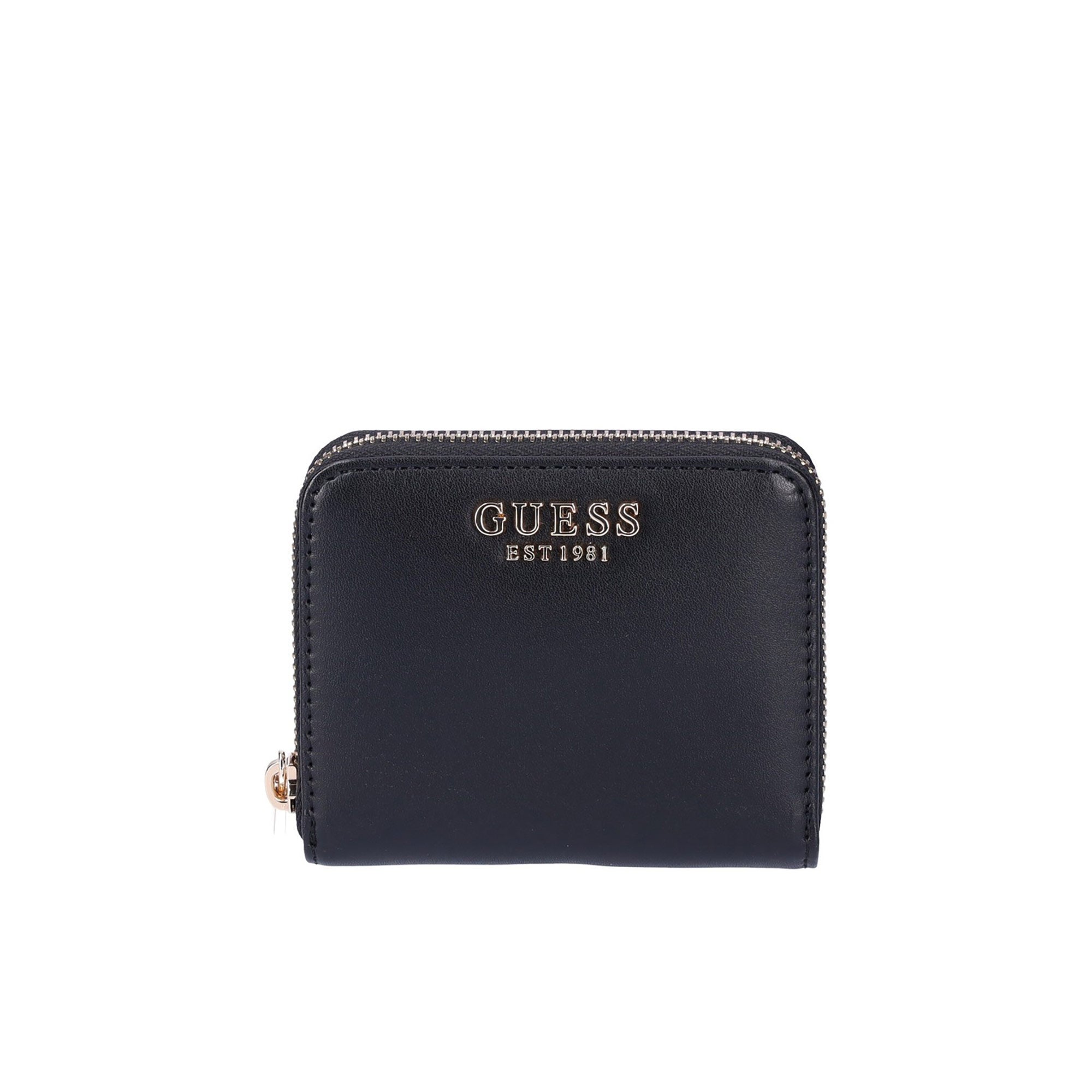 Portafogli S Guess, modello Laurel , realizzato in ecopelle con logo frontale in metallo dorato . Perfetto per un utilizzo quotidiano o come accessorio per eventi casual.