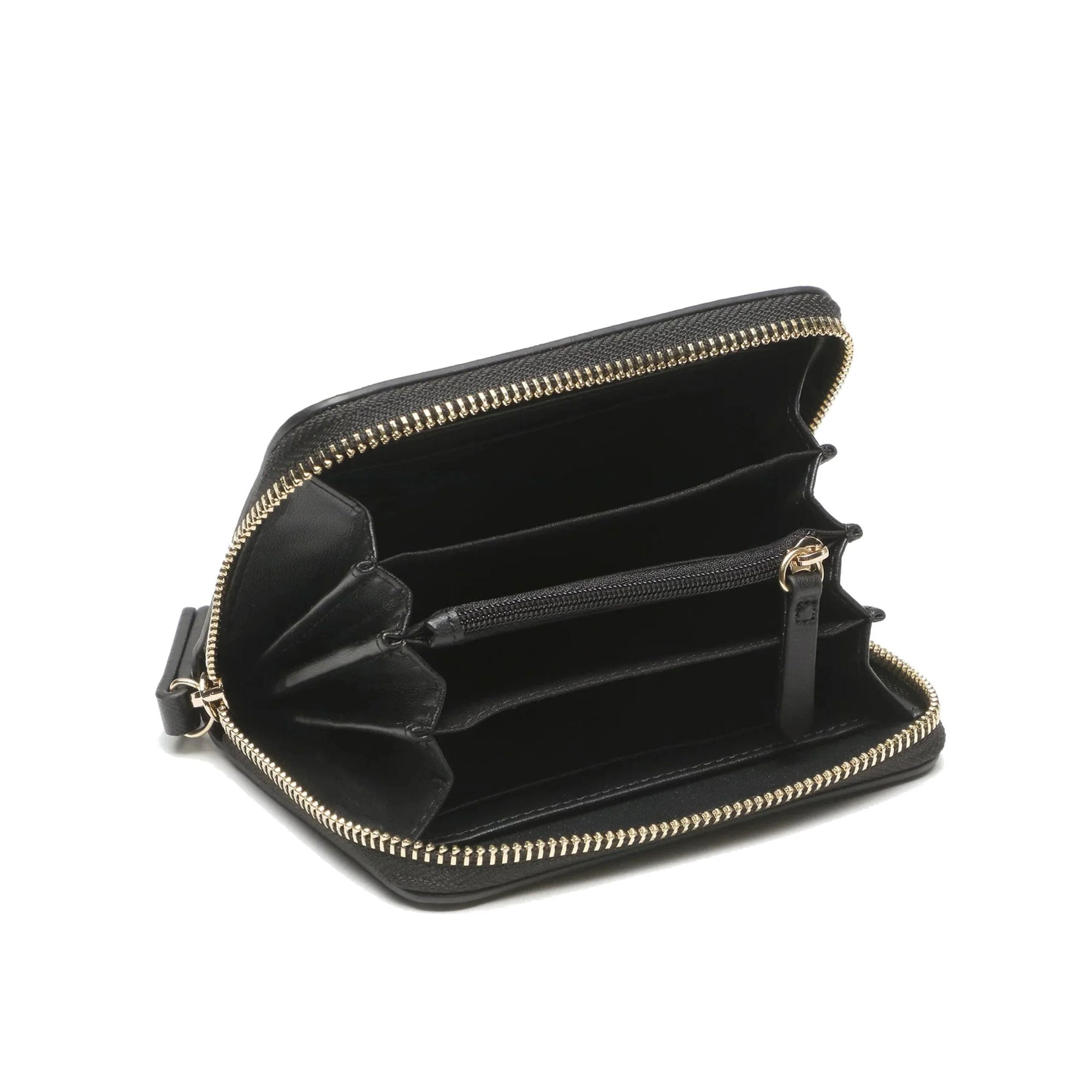 - Interno suddiviso in scomparti per carte, banconote e monete