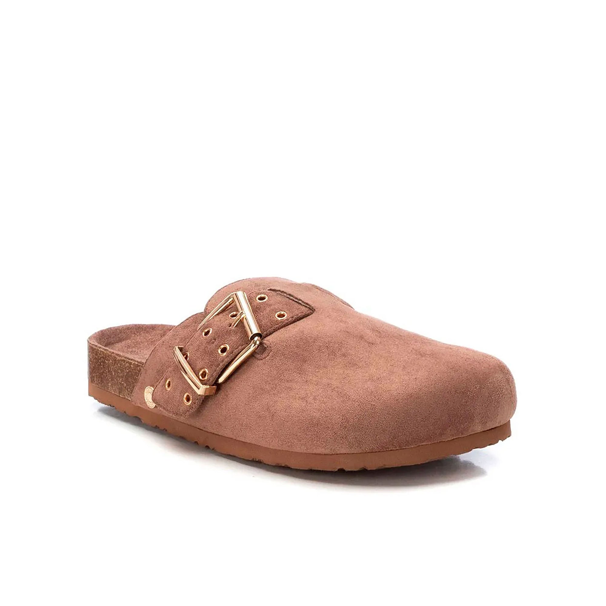 - Sabot chiuso in pelle scamosciata taupe, dal finish morbido e naturale