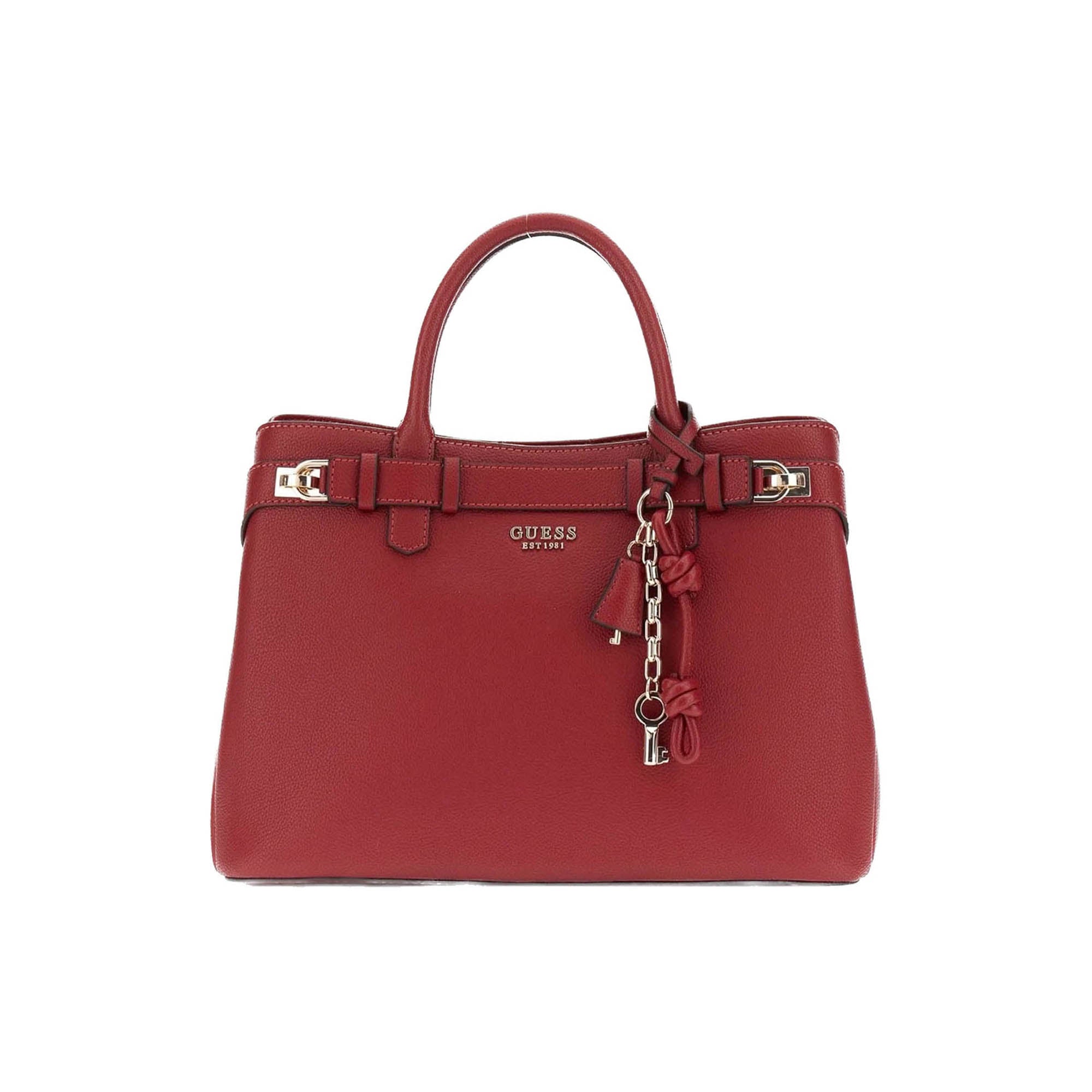 Borsa Guess donna in ecopelle, dal design strutturato e raffinato, perfetta per aggiungere un tocco di eleganza ai look quotidiani. Caratterizzata da dettagli dorati e dal charm con chiave, emblema iconico del brand.