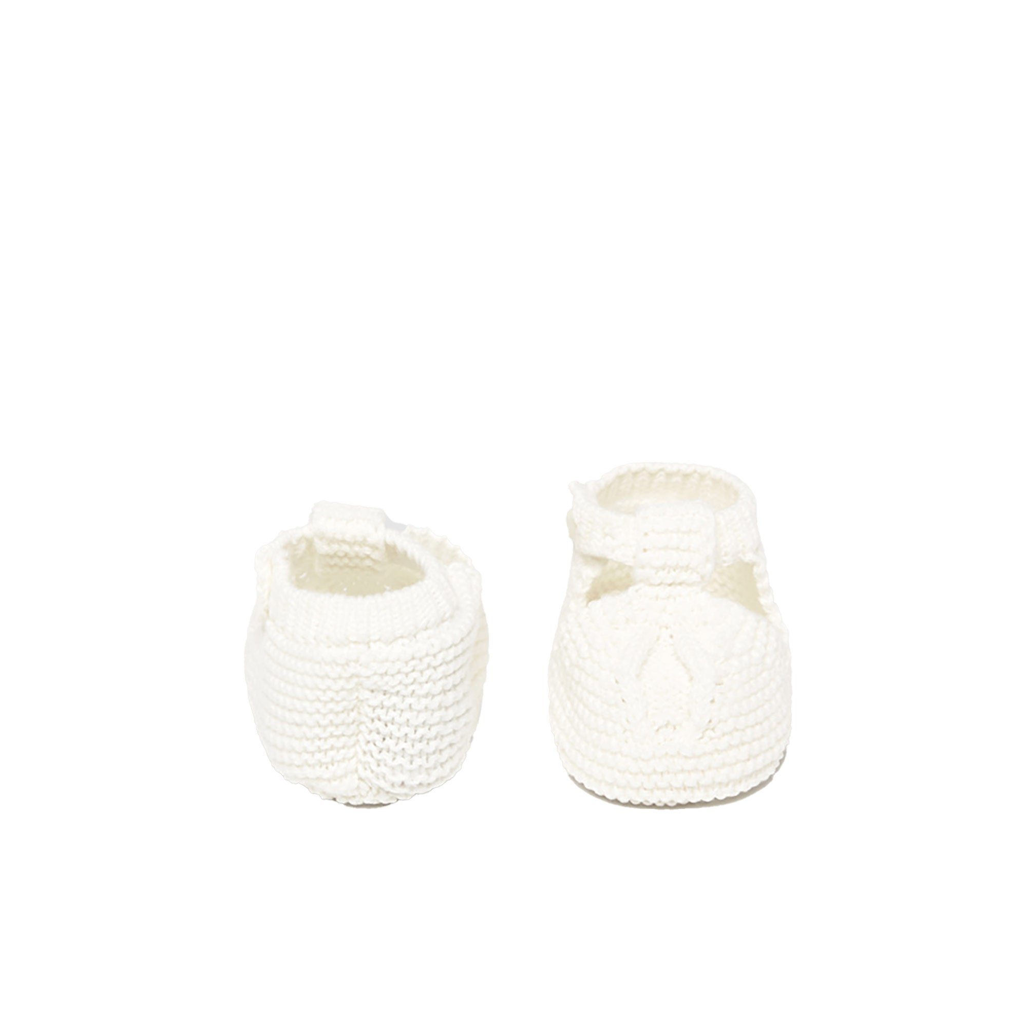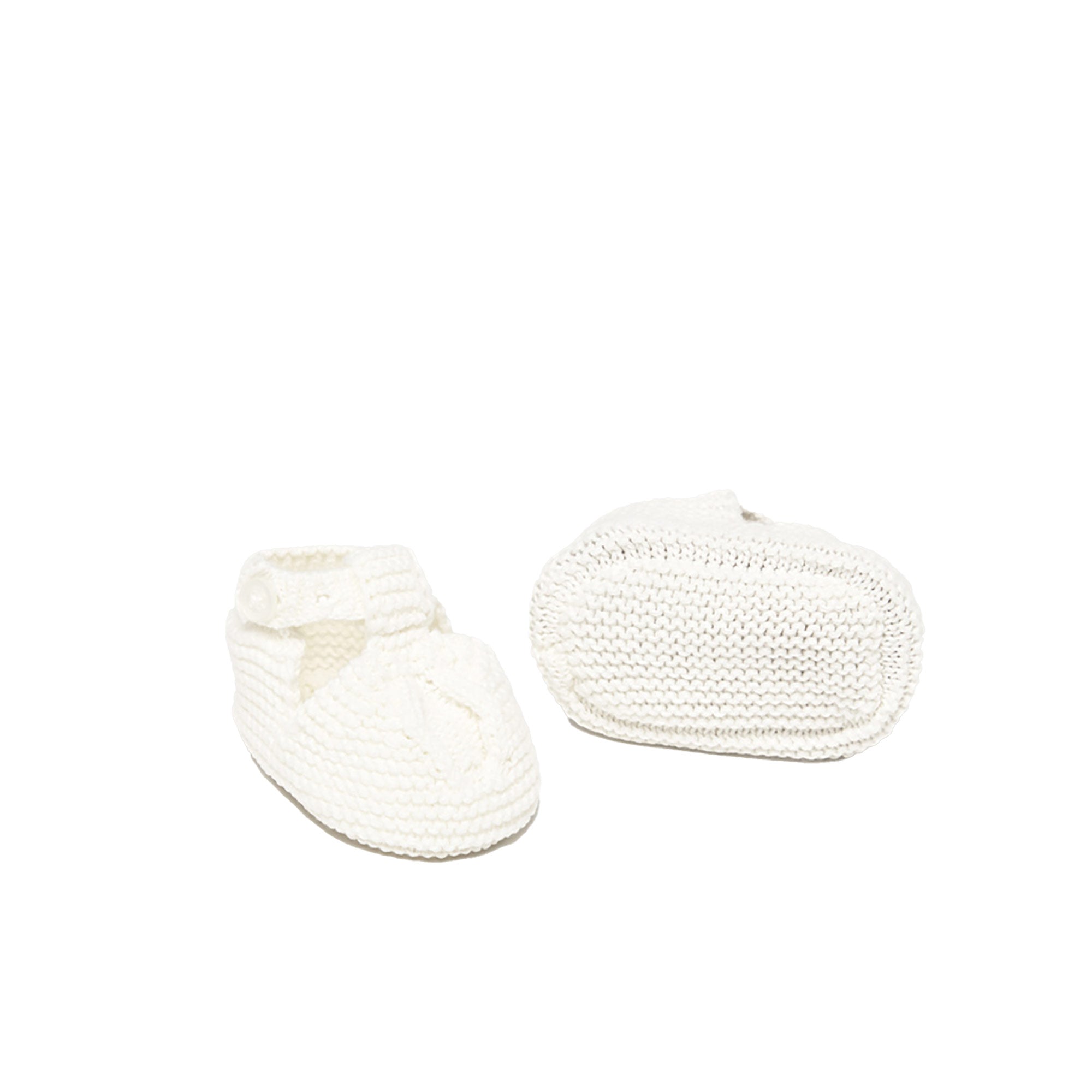 Calde, morbide e fatte con amore. Queste scarpine lavorate a maglia bianca sono perfette per coccolare i piedini nei primi giorni. Un’idea regalo dolce e senza tempo.