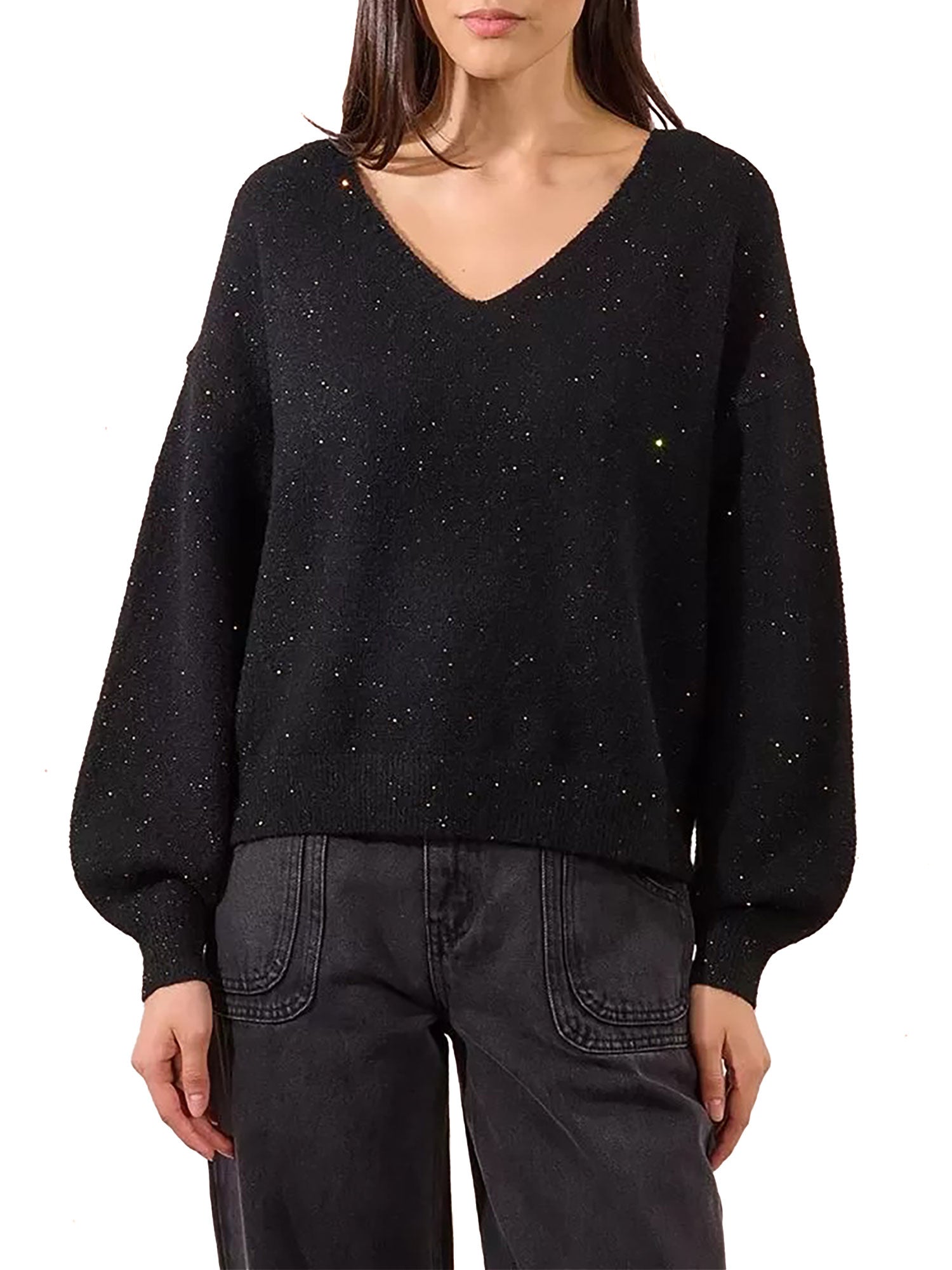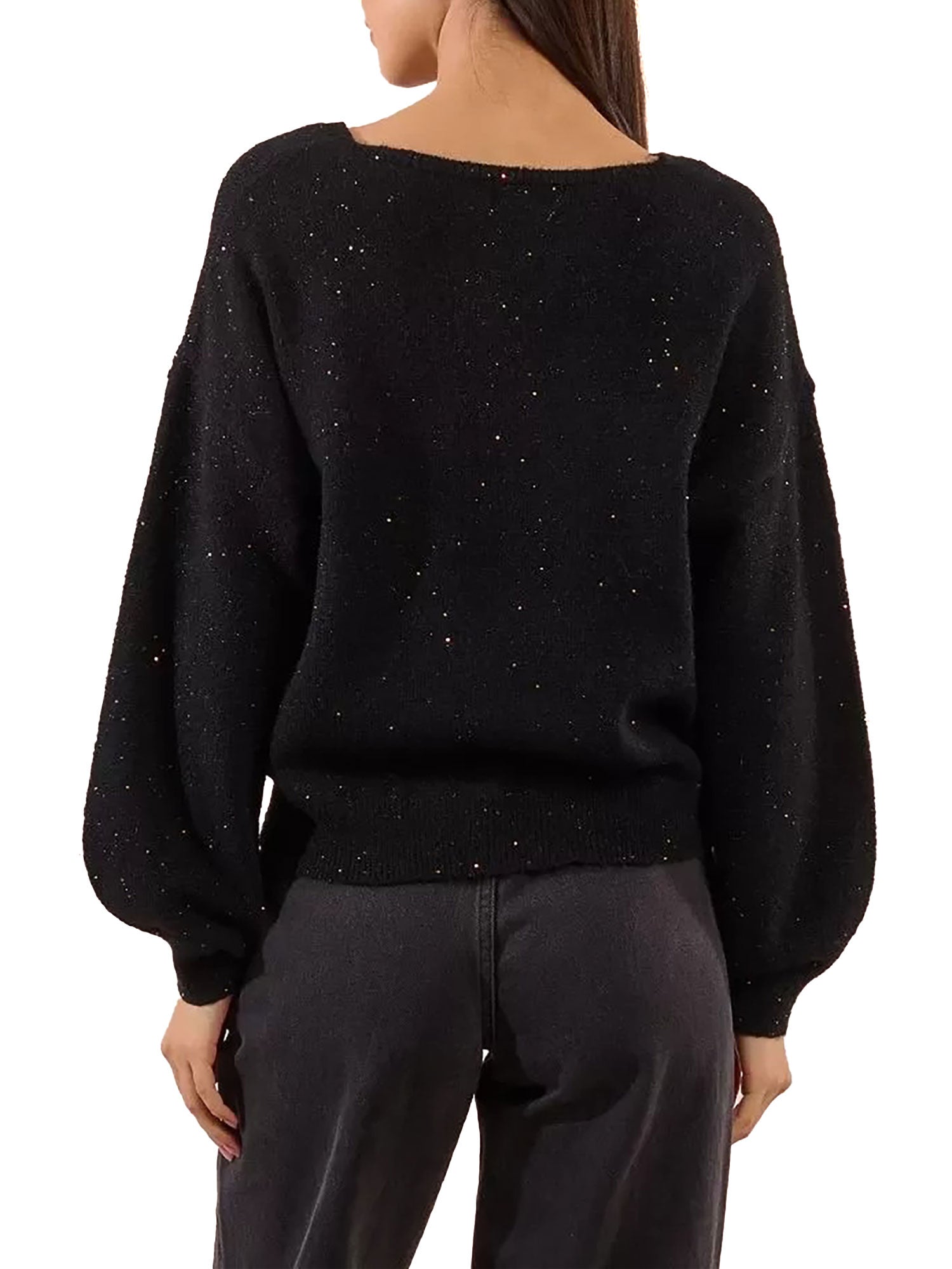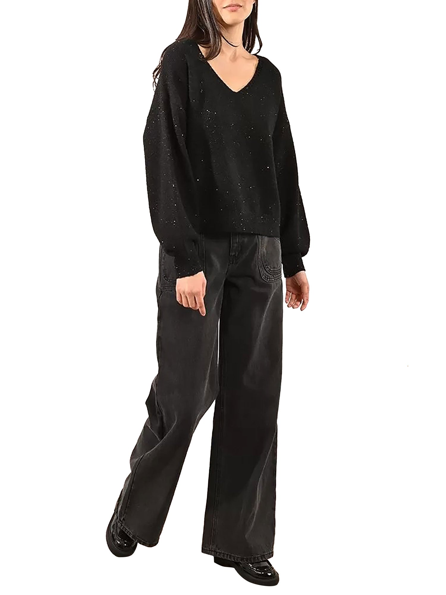 Maglia Molly Bracken donna scollo a v manica lunga paillettes nero