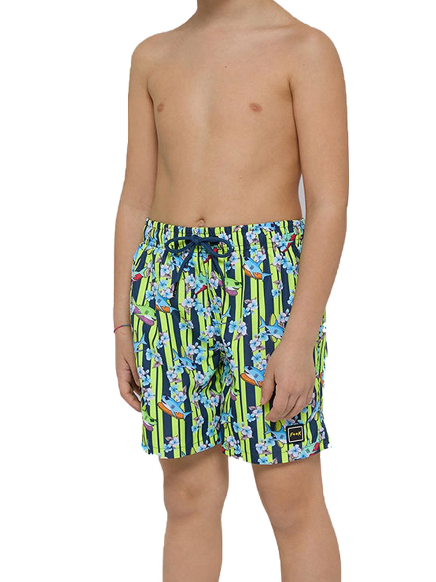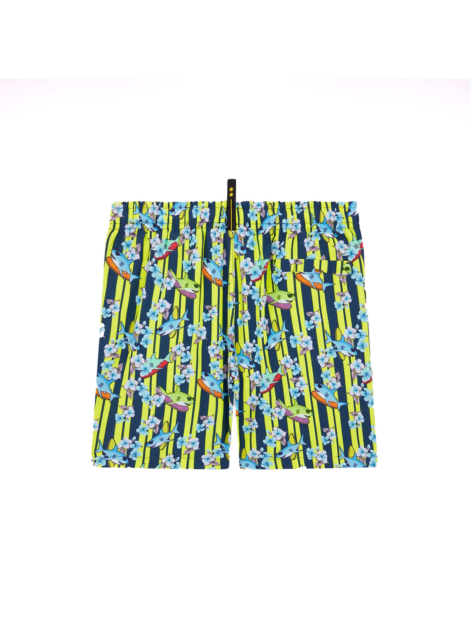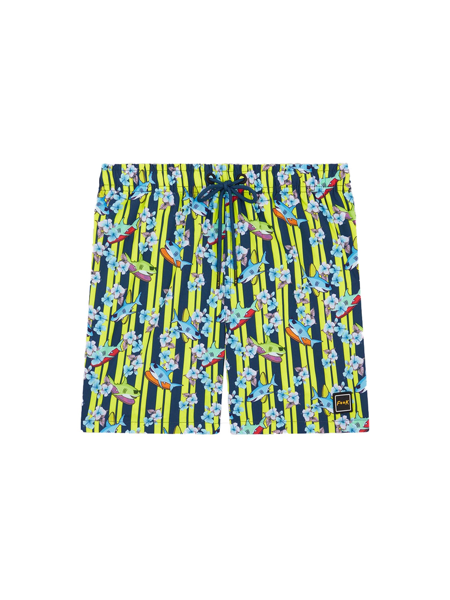 Short mare F**k bambino, con chiusura in feltro e fantasia squali all over.