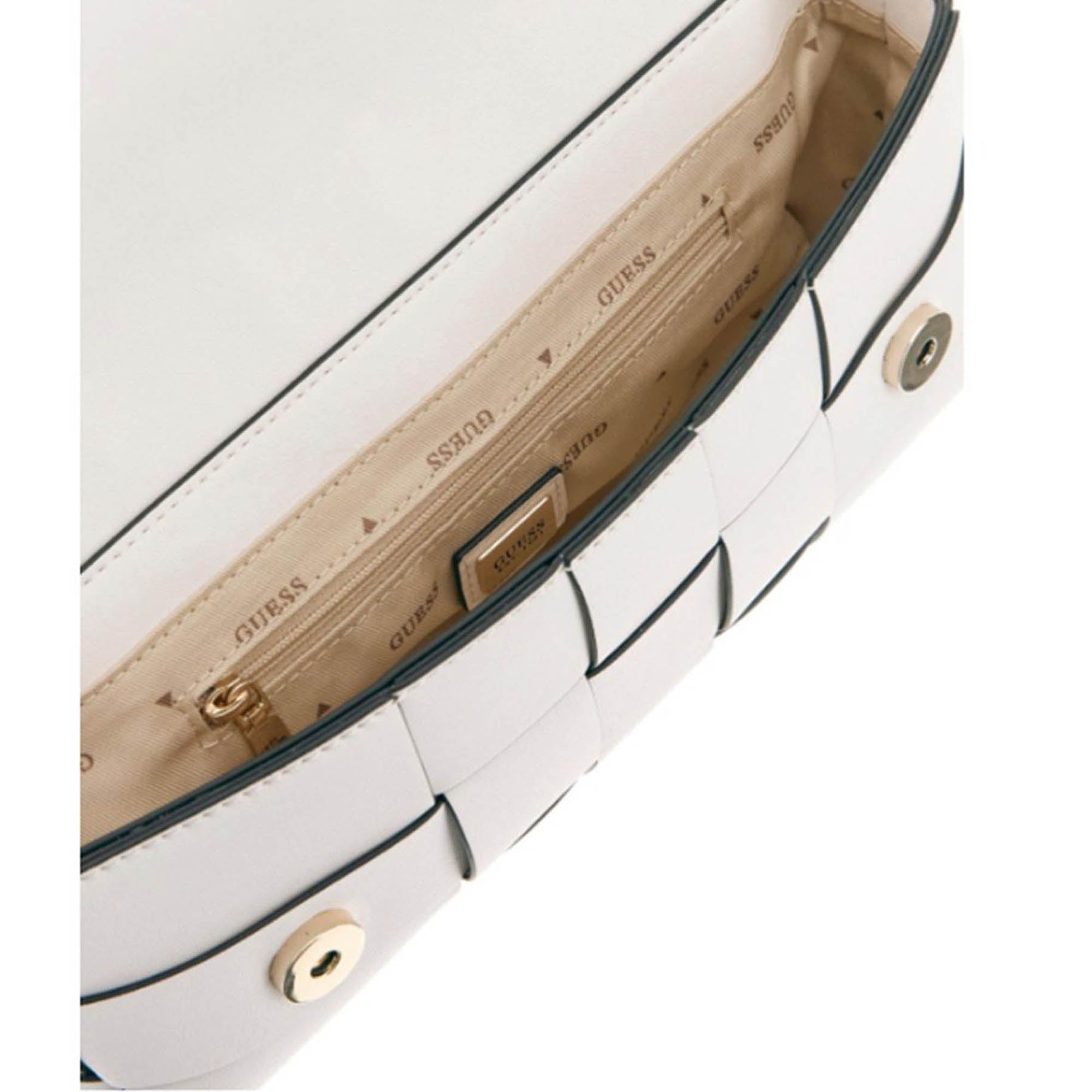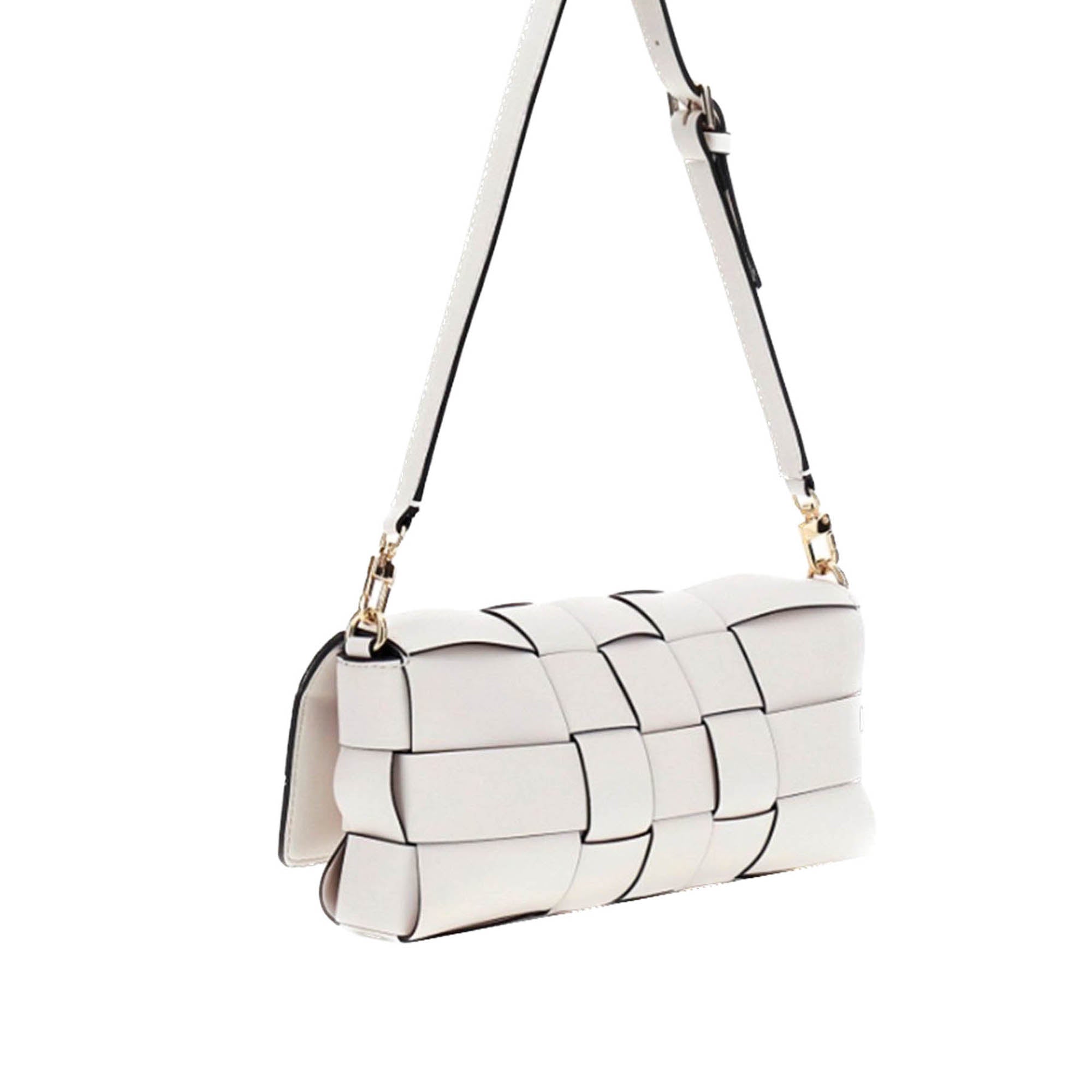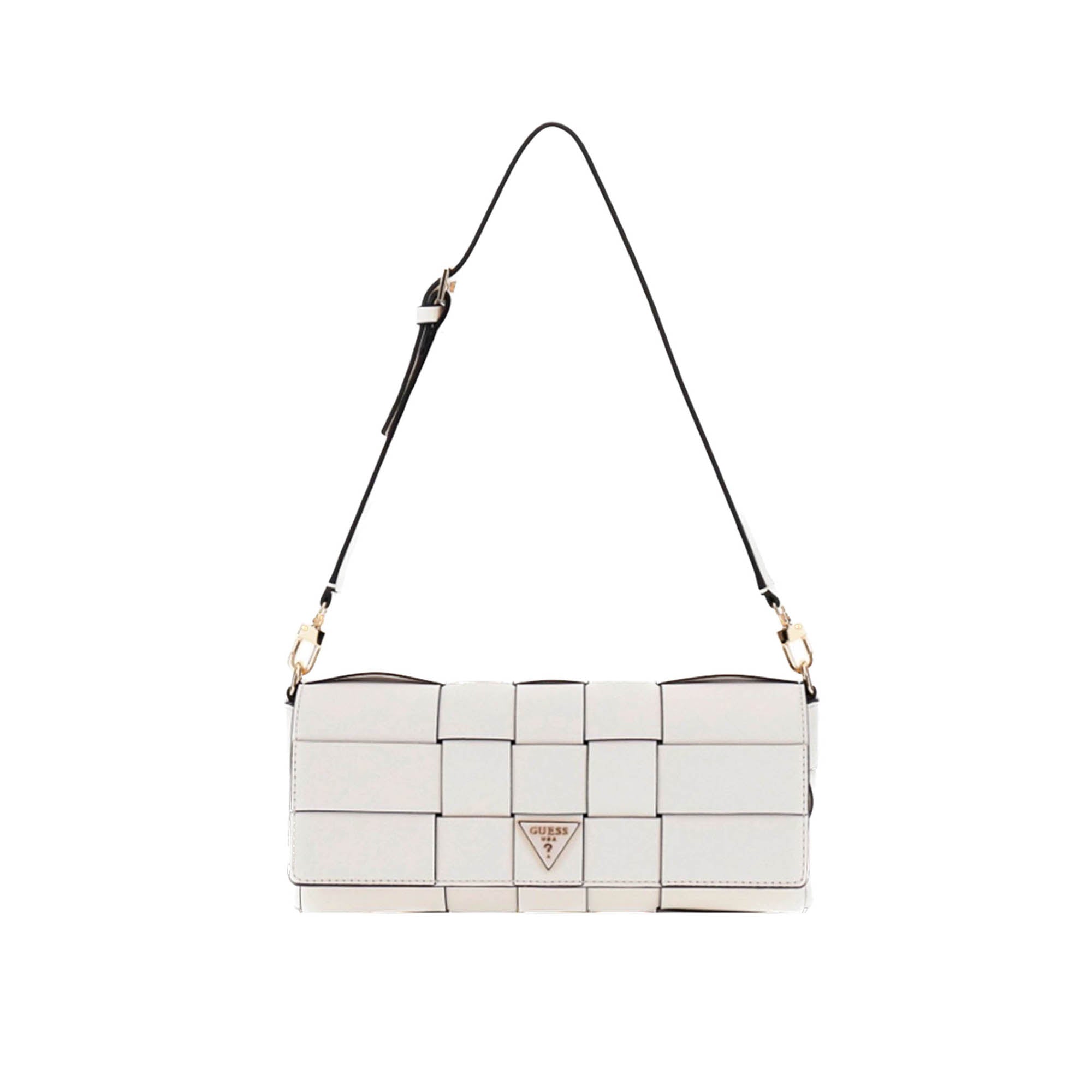 Borsa Guess donna in similpelle intrecciata dal design moderno e raffinato. La lavorazione a fasce intrecciate dona un effetto elegante, mentre la tracolla regolabile garantisce praticità e comfort in ogni occasione.