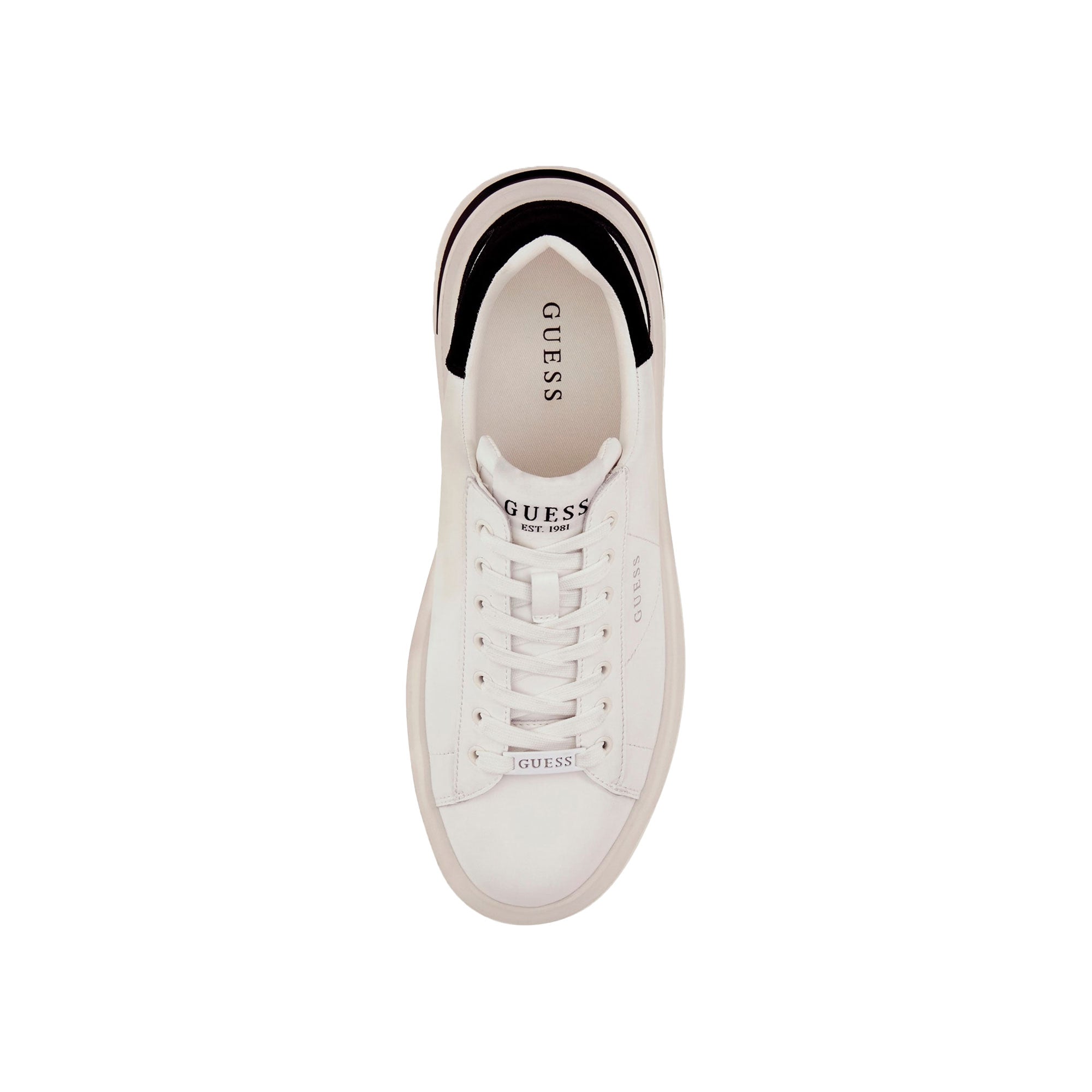 - Tomaia in pelle liscia bianca con inserti a contrasto sul tallone in nero