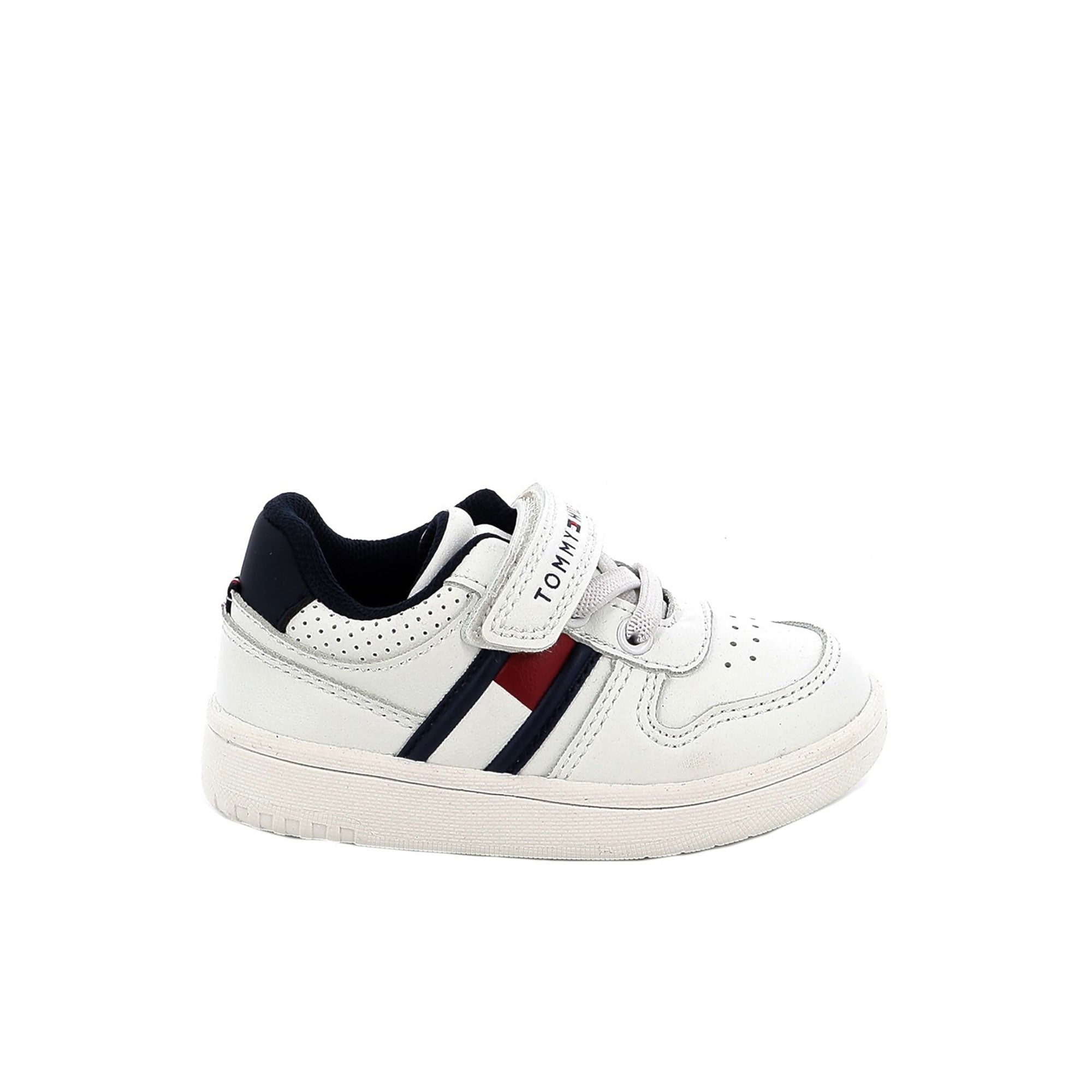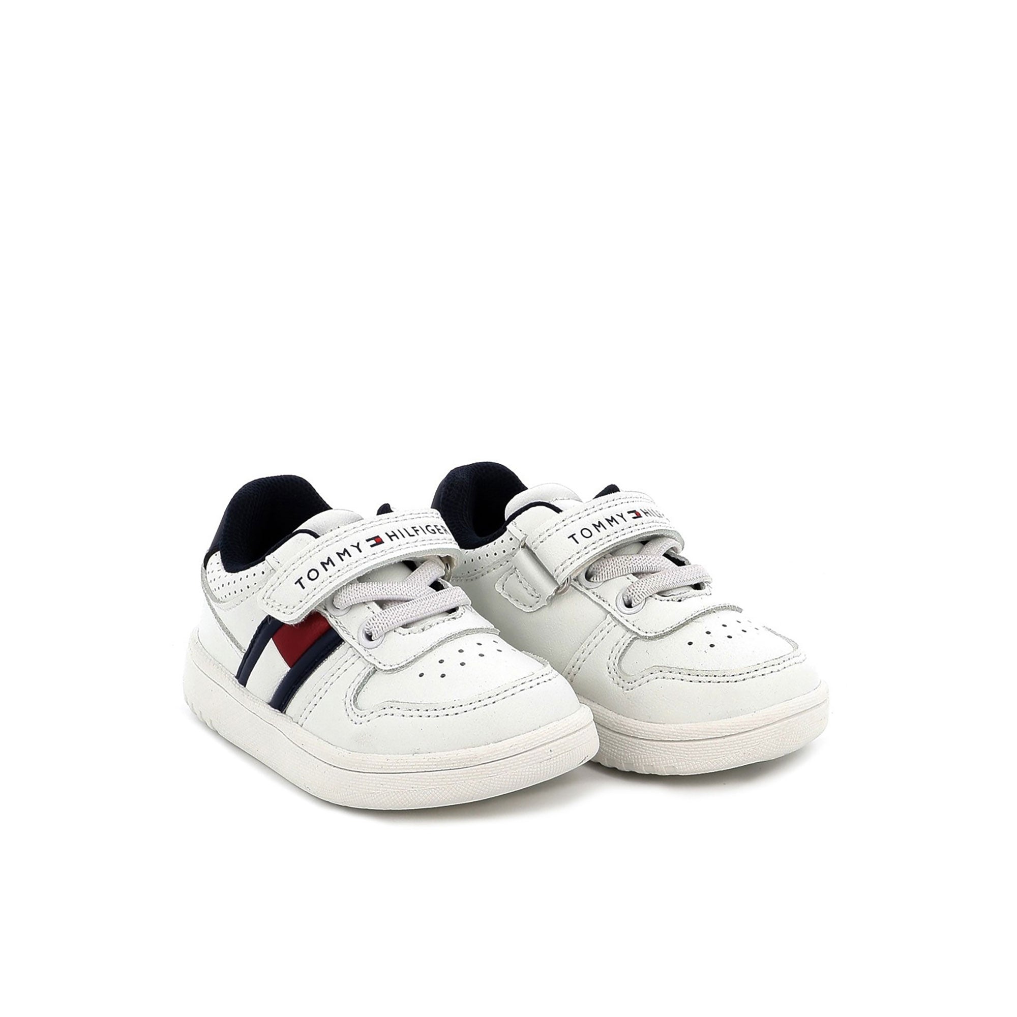 Sneakers con lacci e velcro Tommy Hilfiger neonato bandierina laterale bianco/blu