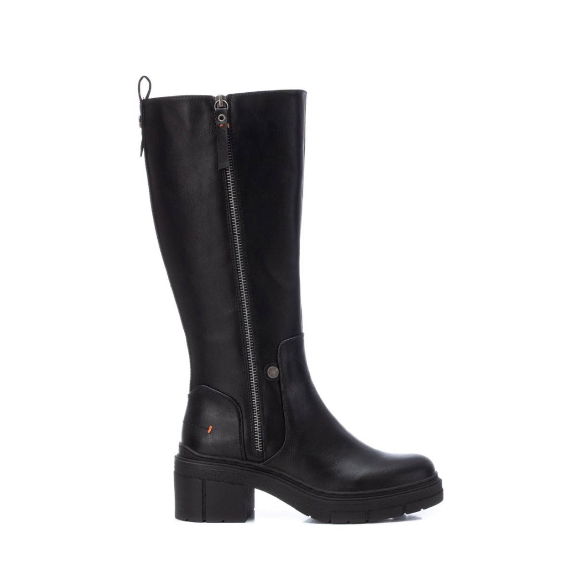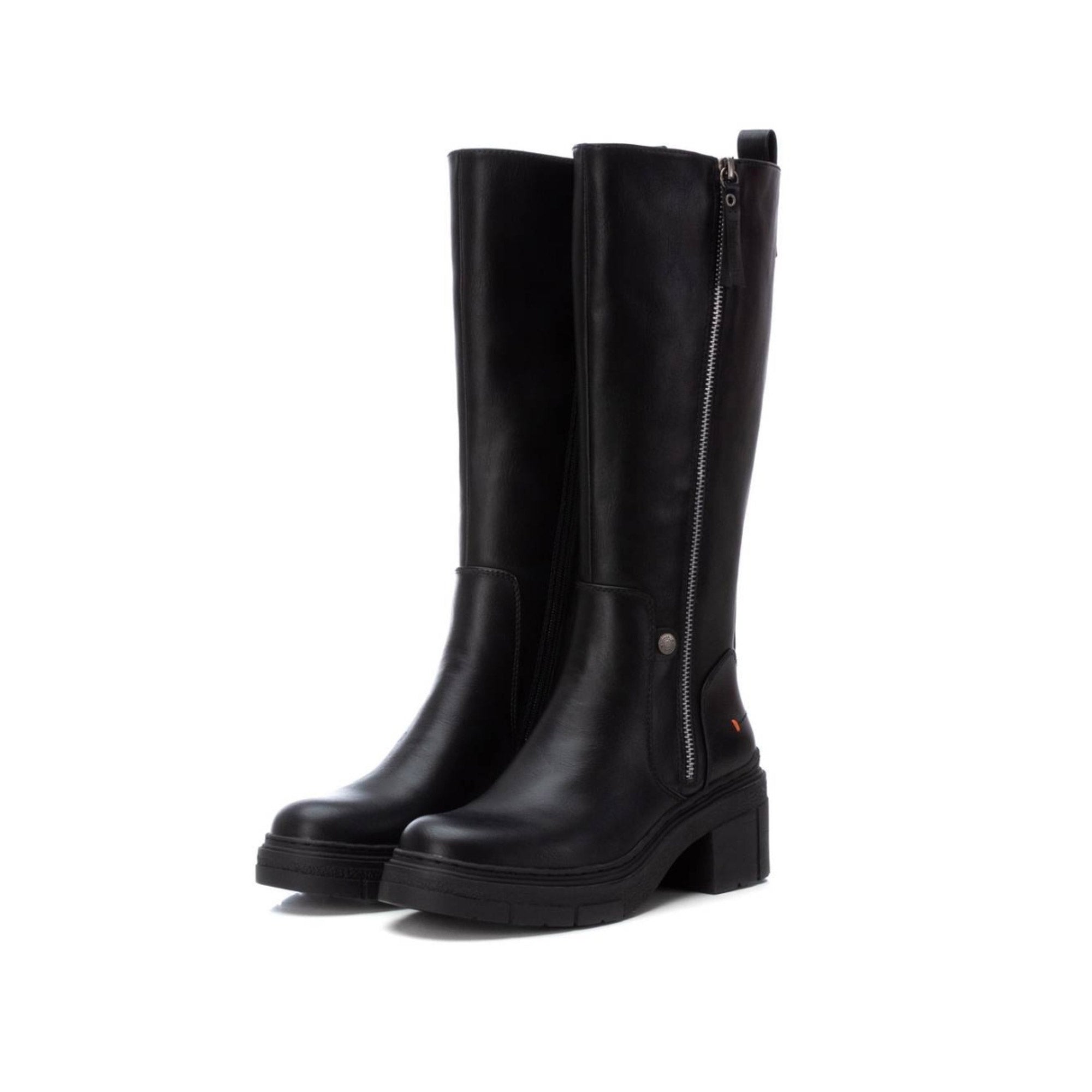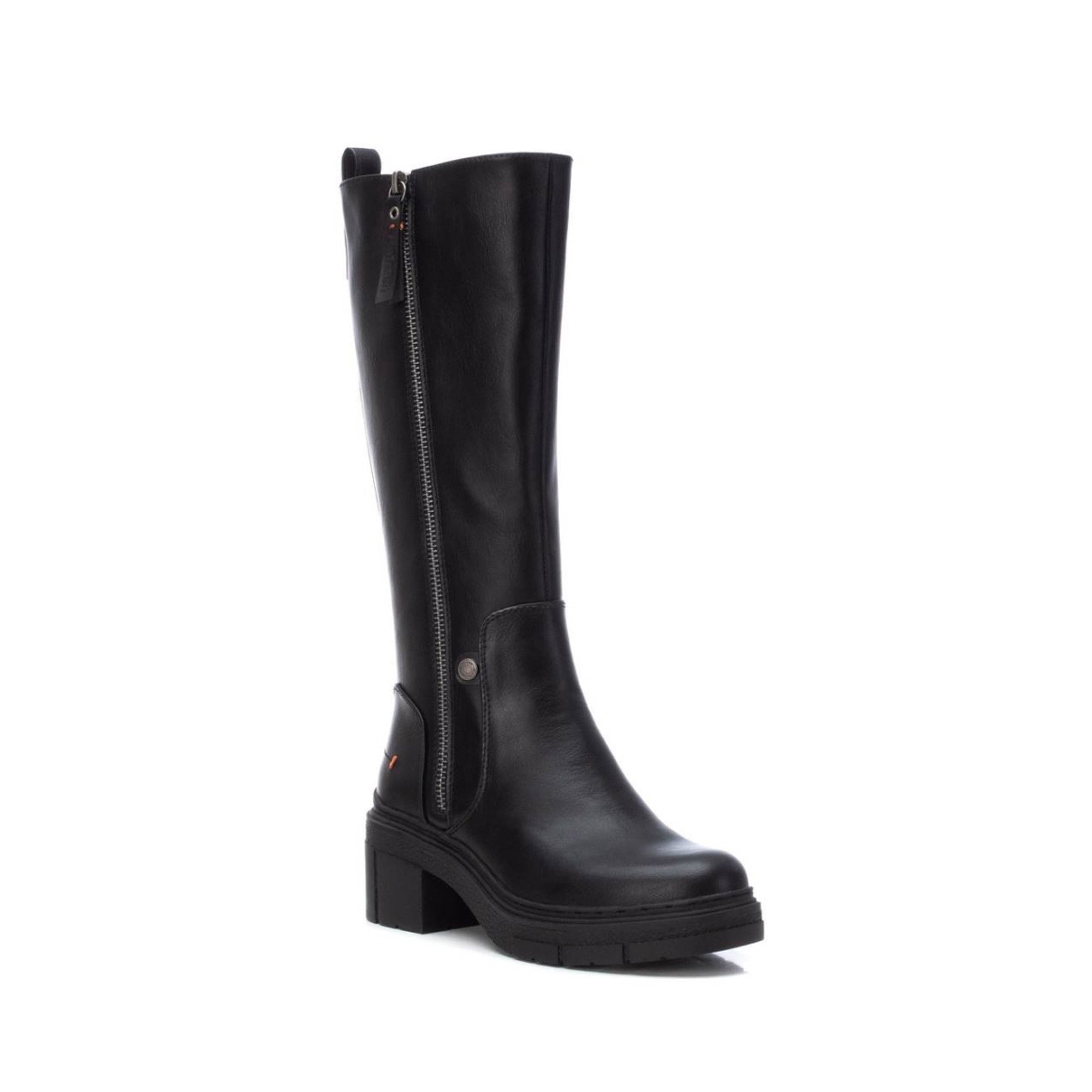 Stivali Refresh, modello con tomaia in pelle liscia e zip laterale a contrasto, tacco medio e squadrato e suola carrarmata per una maggiore stabilità. La silhouette alta fino al ginocchio conferisce eleganza e protezione, mentre i dettagli minimalisti e la struttura robusta rendono questi stivali perfetti per abbinamenti sia casual che formali, mantenendo comfort e stile.