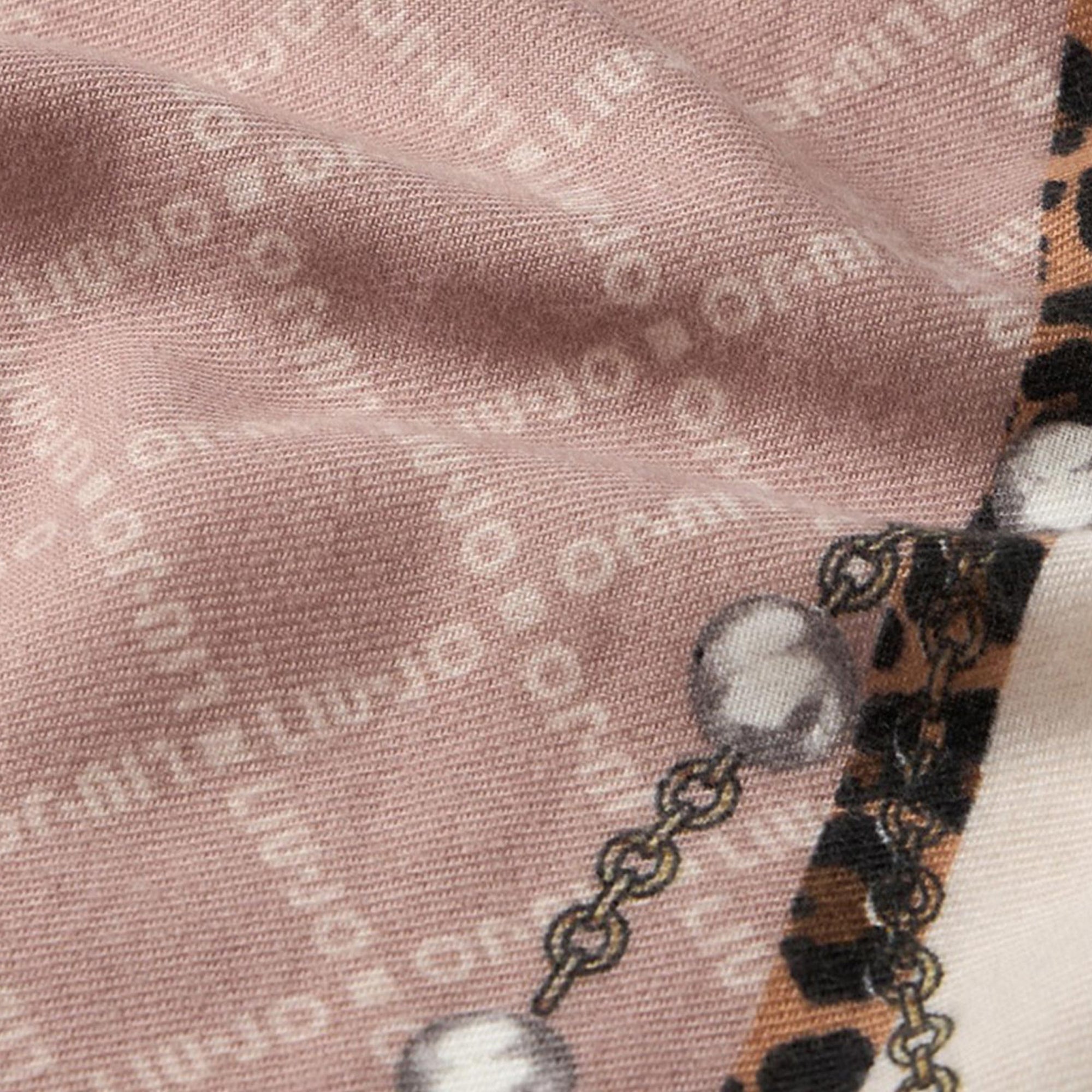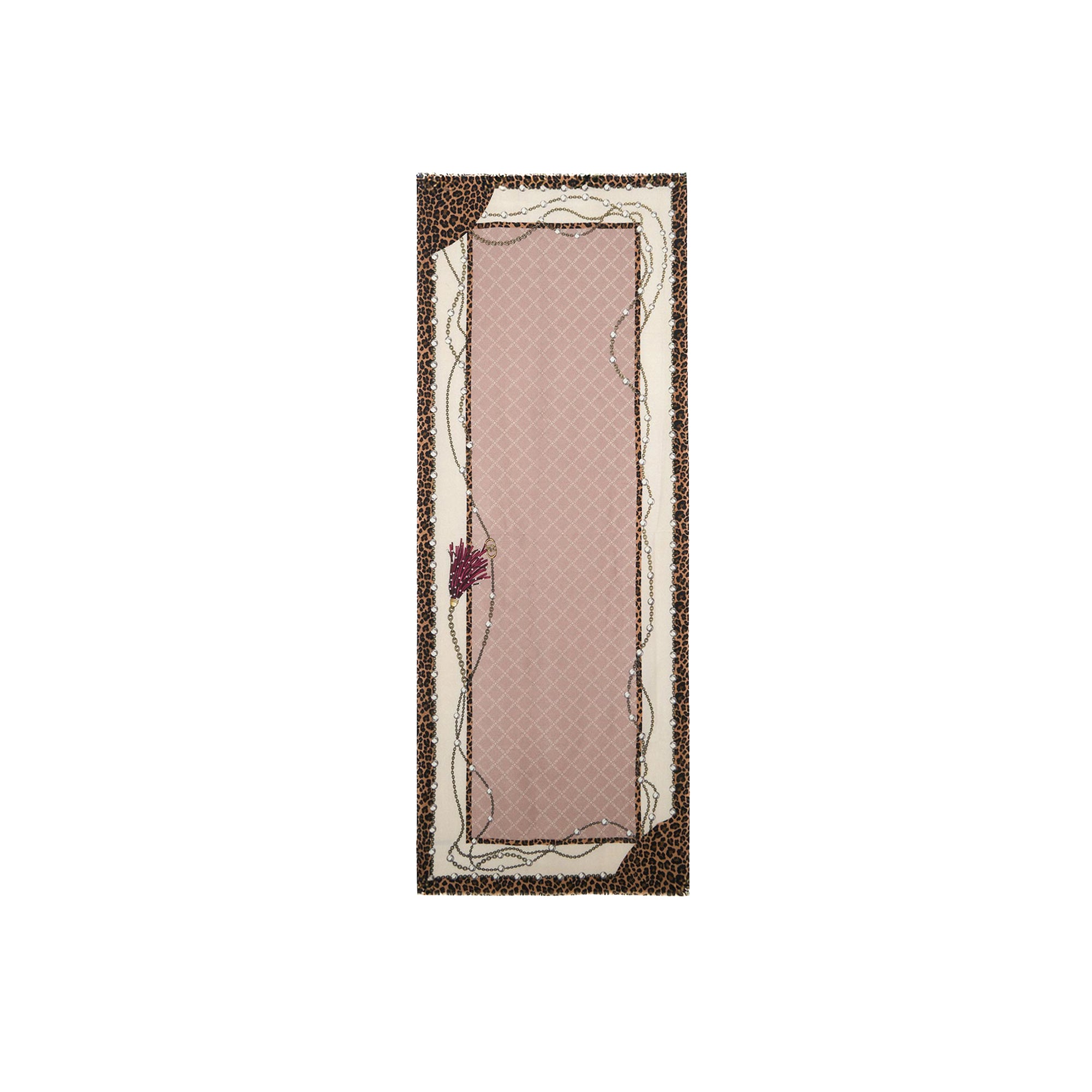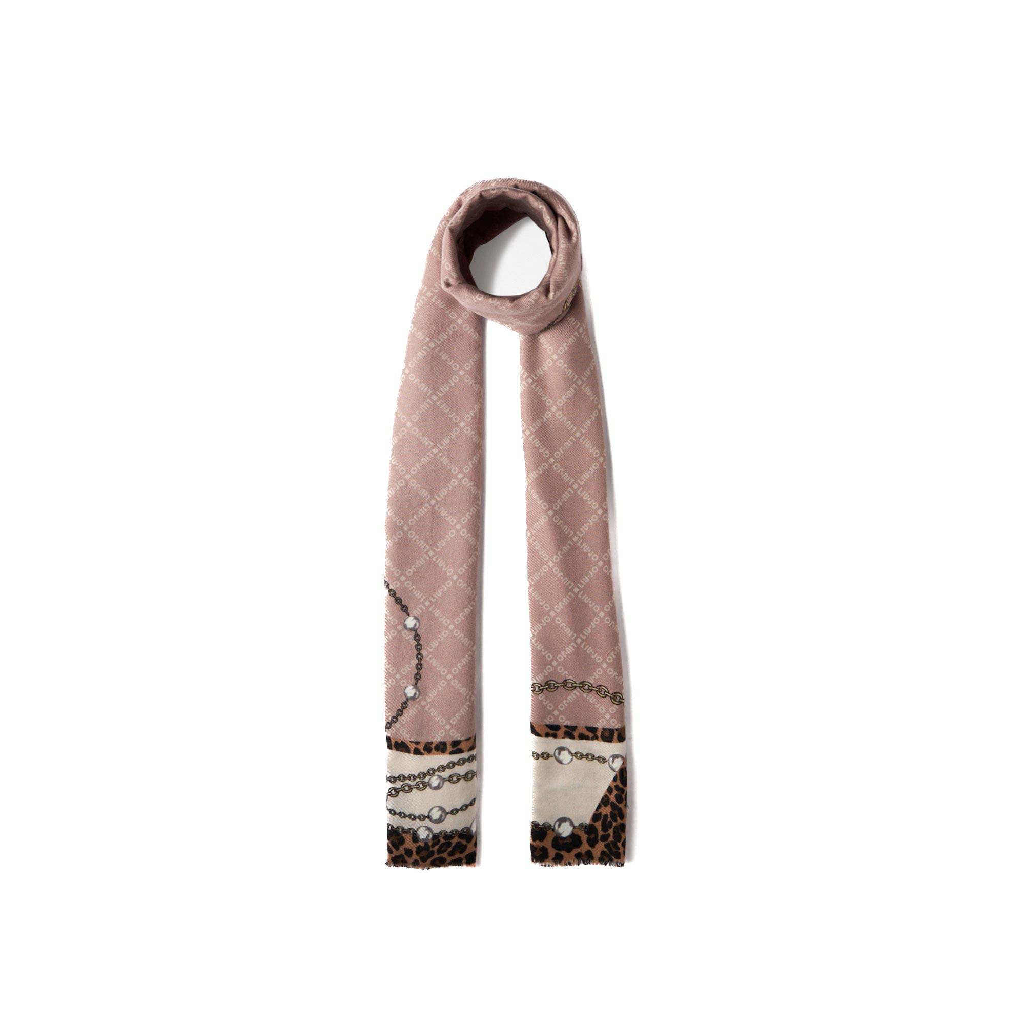 Aggiungi un tocco di eleganza e audacia al tuo look con questo foulard LiuJo. Realizzato in morbido tessuto, presenta una base delicata impreziosita da un raffinato monogramma ripetuto e dettagli in stampa leopardo. Le catene con perle aggiungono un accento sofisticato, creando un perfetto equilibrio tra classicità e modernità.