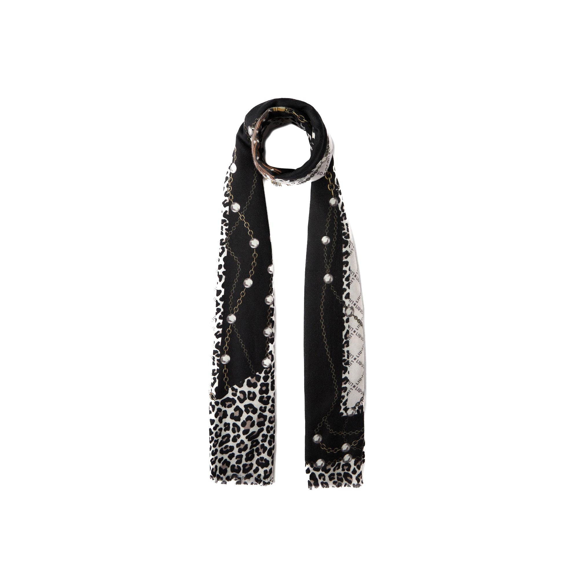 Un mix audace di eleganza e carattere. Questa sciarpa firmata Liu Jo unisce la raffinatezza delle catene gioiello stampate all’energia del motivo animalier, per dare un tocco distintivo a ogni outfit.