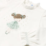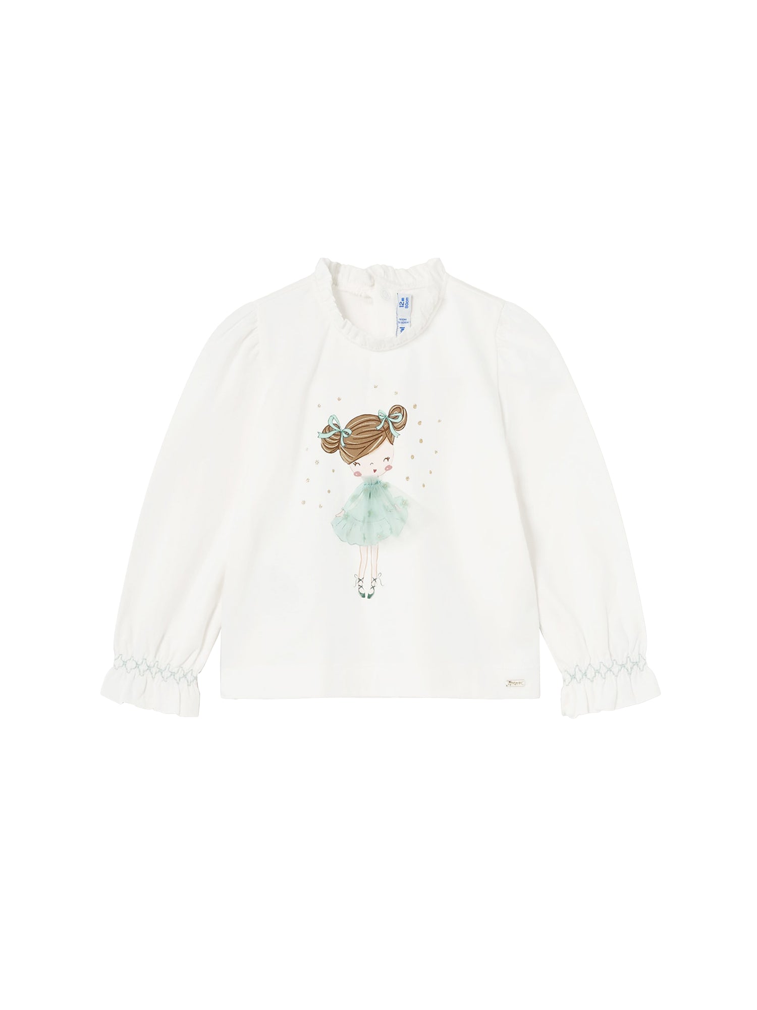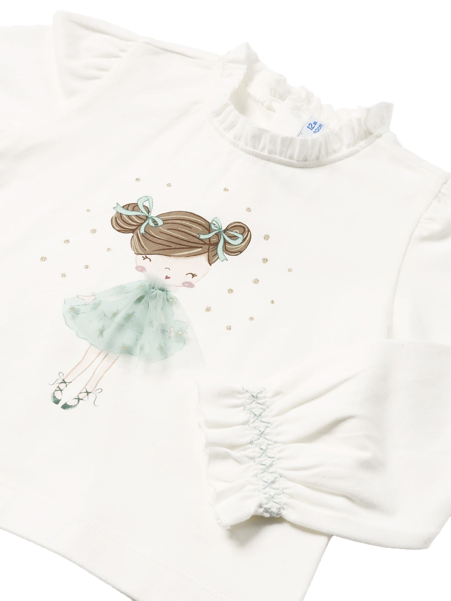 Maglietta Mayoral da neonata con un delicato colore bianco e un'incantevole stampa decorativa di una bambolina, che aggiunge un tocco dolce e sognante al look. La maglietta è ideale per creare outfit casual ma curati, perfetti per il tempo libero e le occasioni speciali.